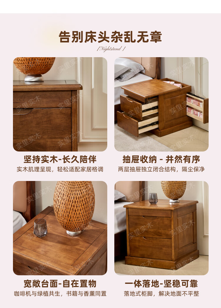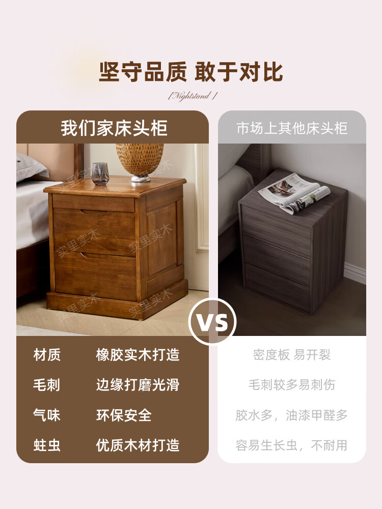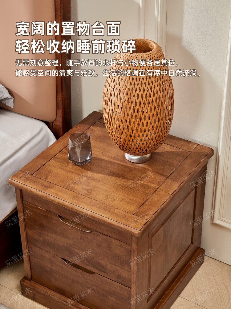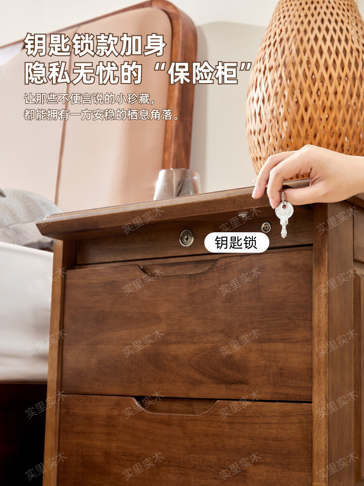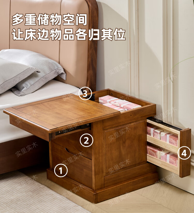 暗格床头柜全实木隐藏暗层抽屉床边保险收纳柜中柜卧室智能多功能 原木色(钥匙锁)