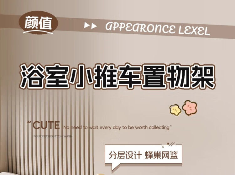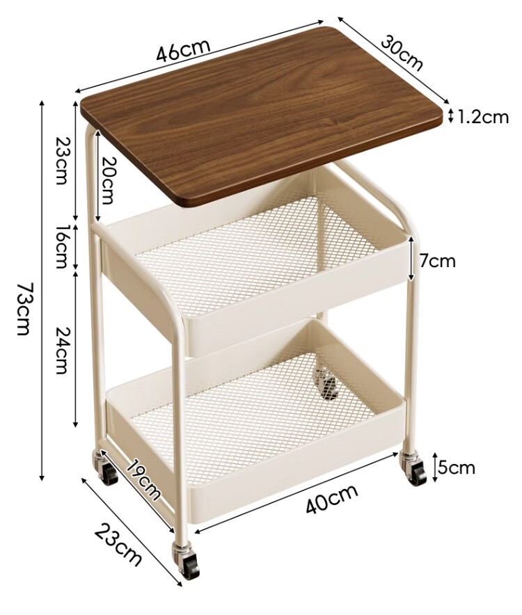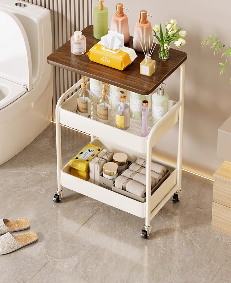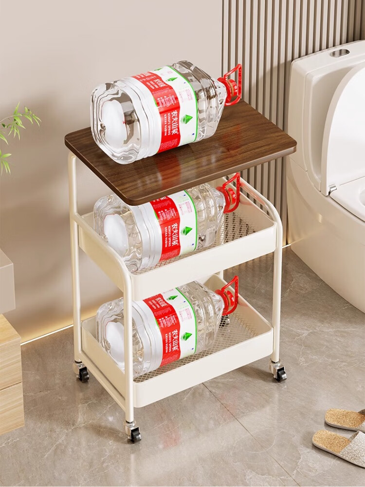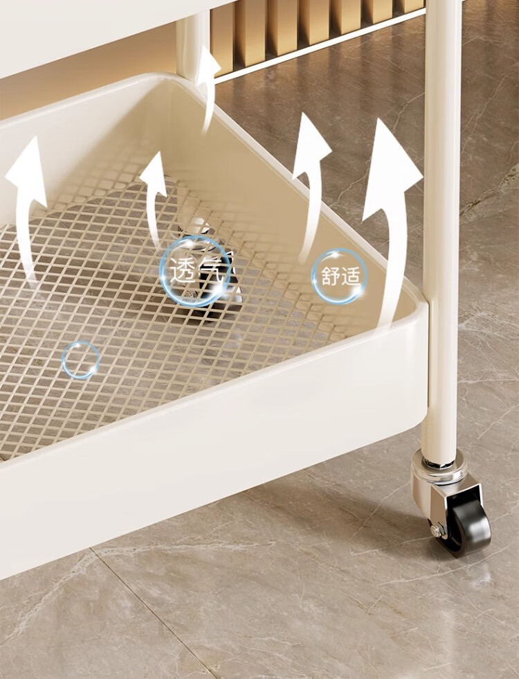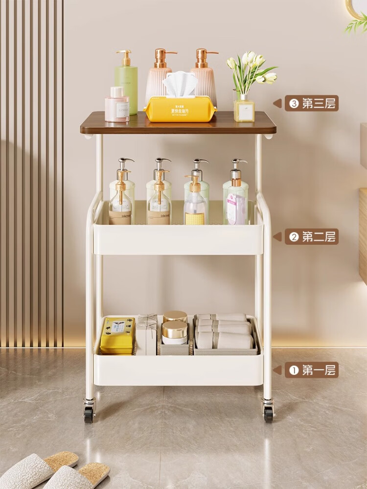 尔思家浴室置物架多层收纳小推车落地零食架子客厅收纳架厨房储物架层架 白色-三层