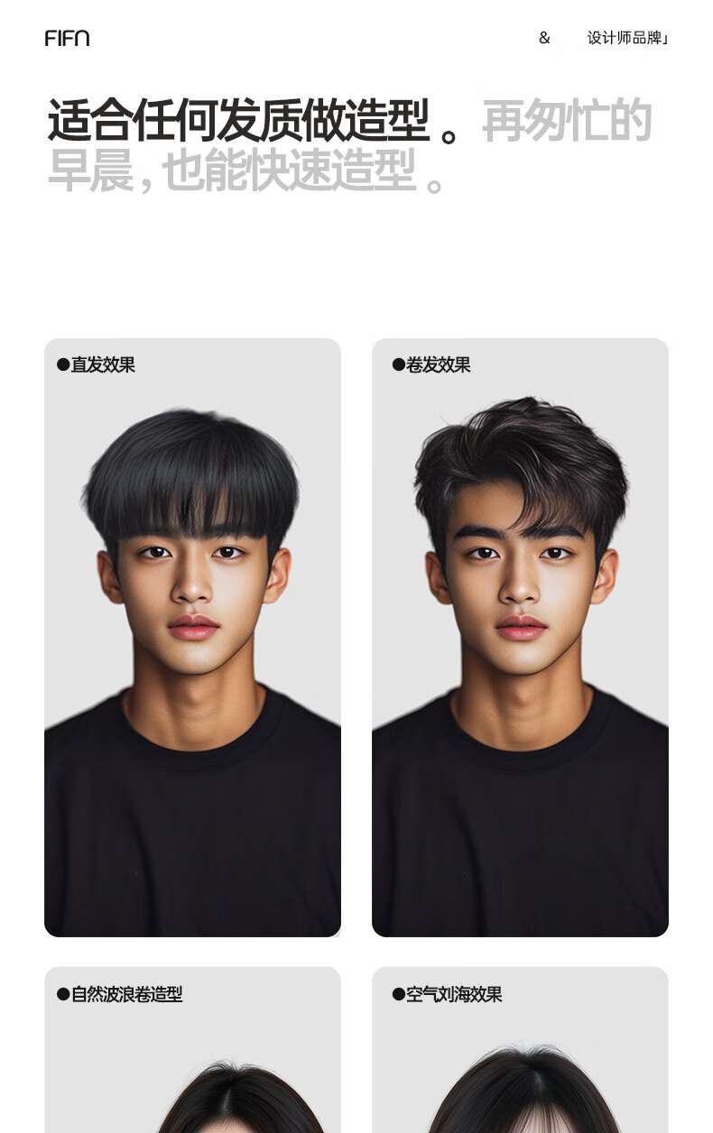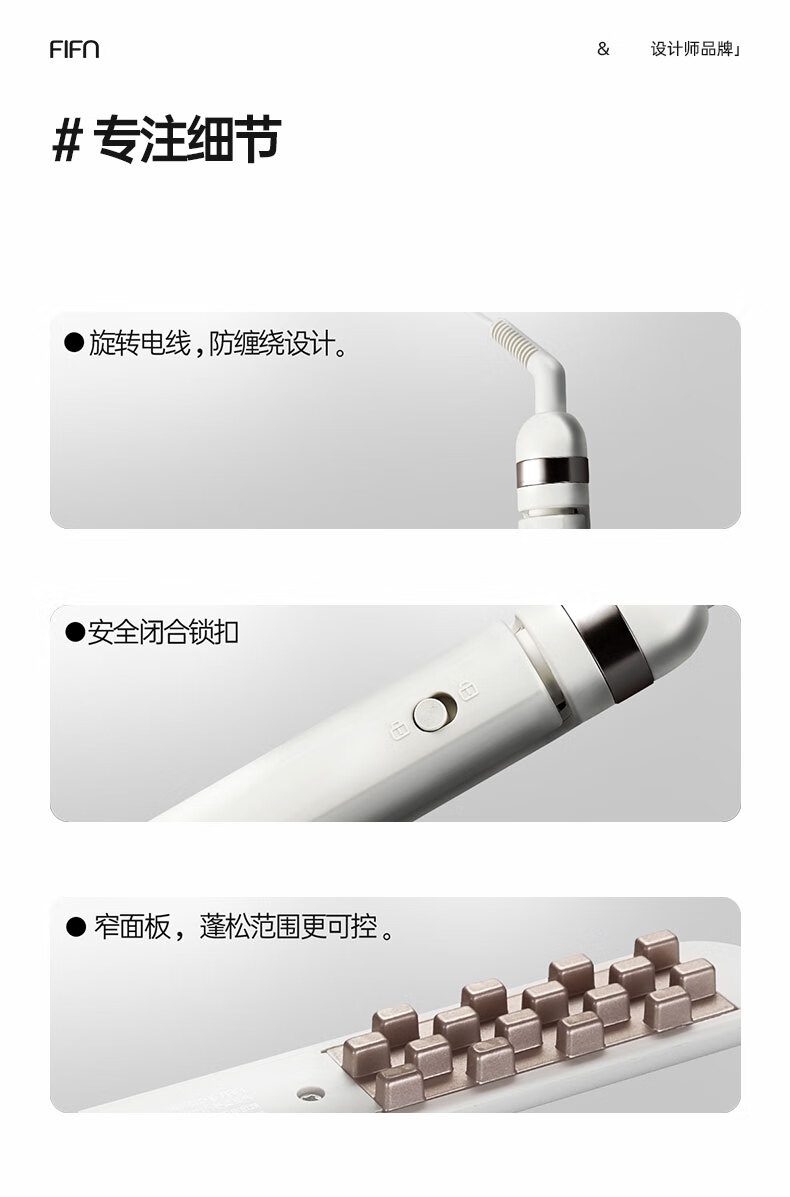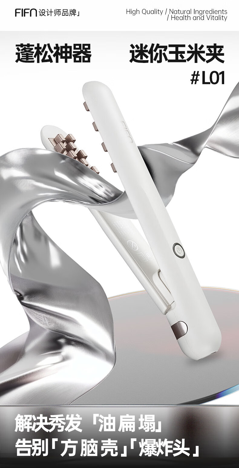 FIFN玉米夹蓬松夹板男士垫发根精油涂层不伤发高颅顶小型便携宿舍可用烫发直板夹 米白色