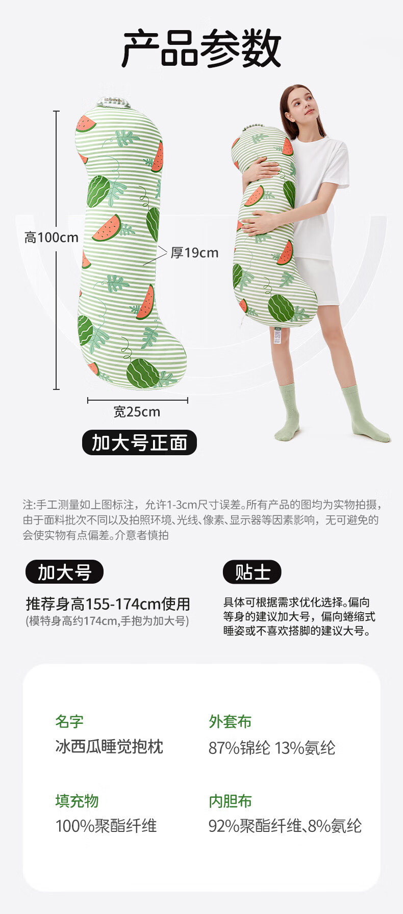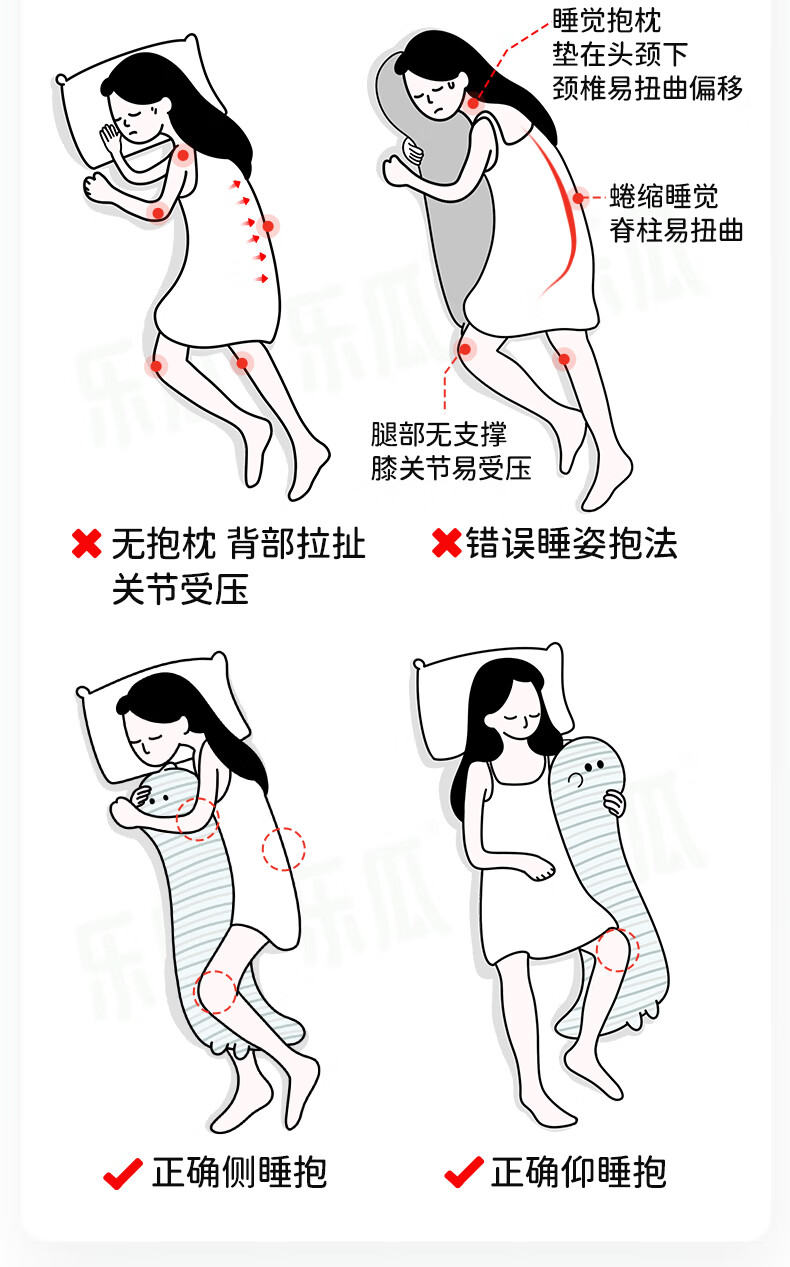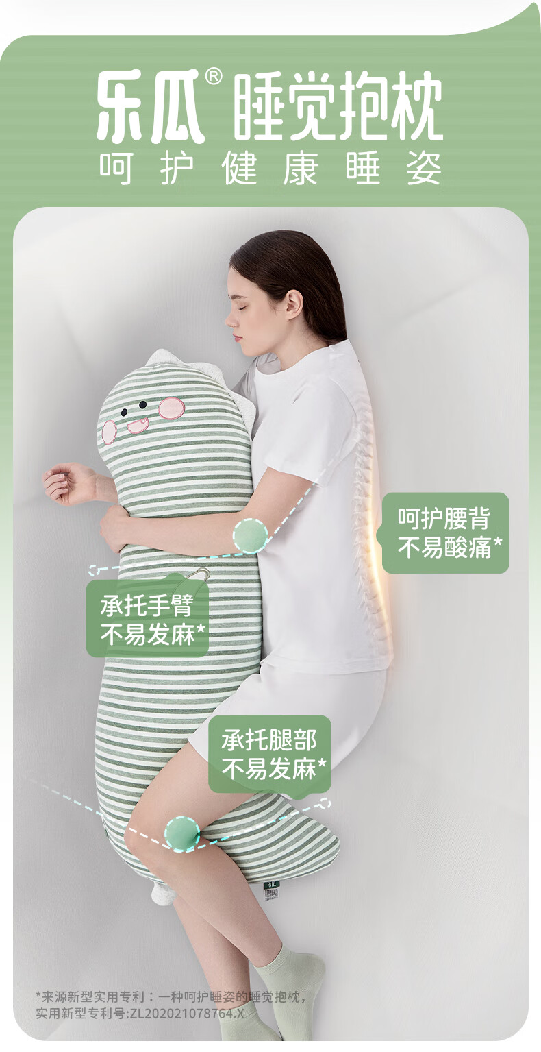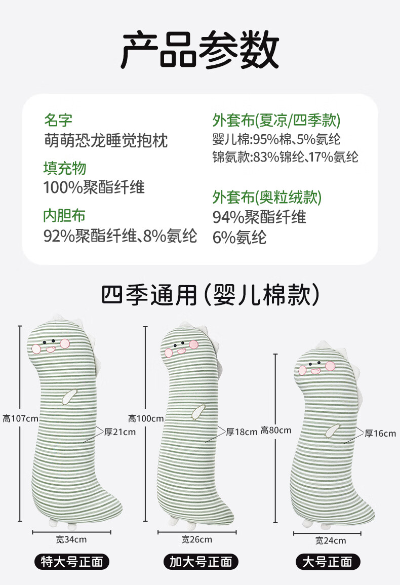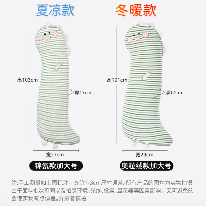 乐瓜睡觉抱枕玩偶女生夹腿抱枕长条靠枕床上靠垫等身靠背垫可拆洗 加大恐龙舒适型100*26*18cm
