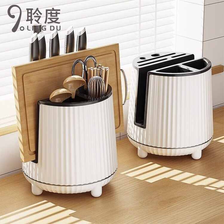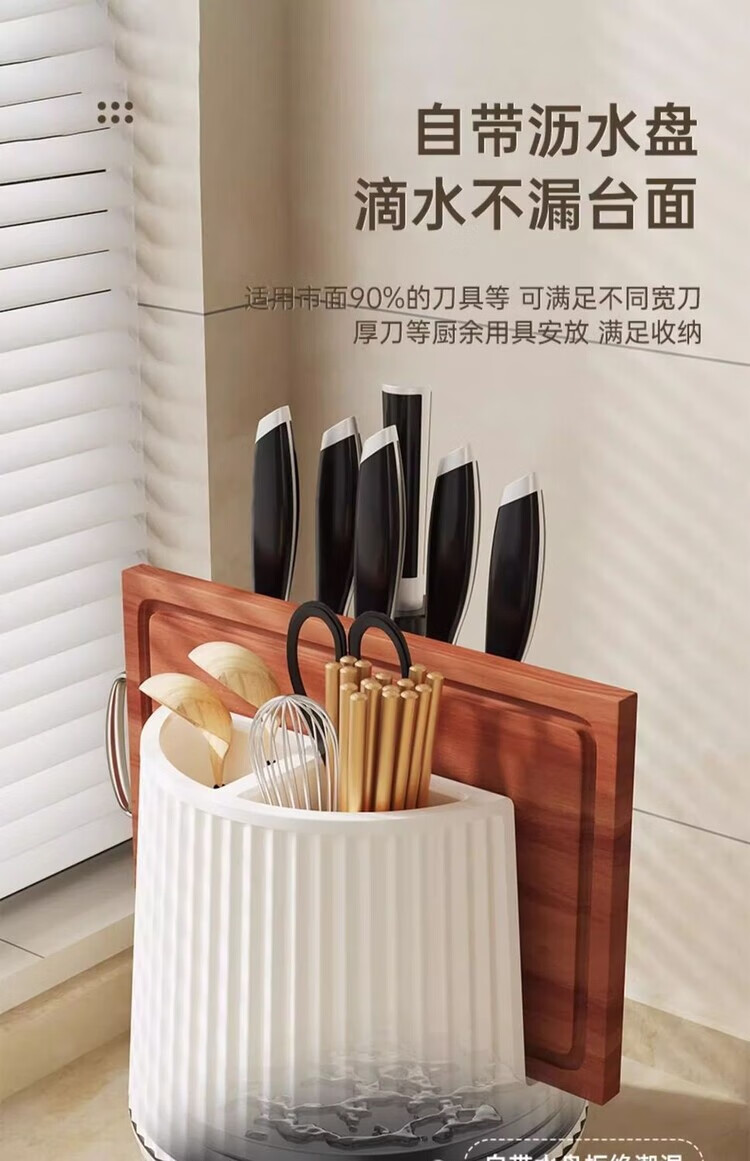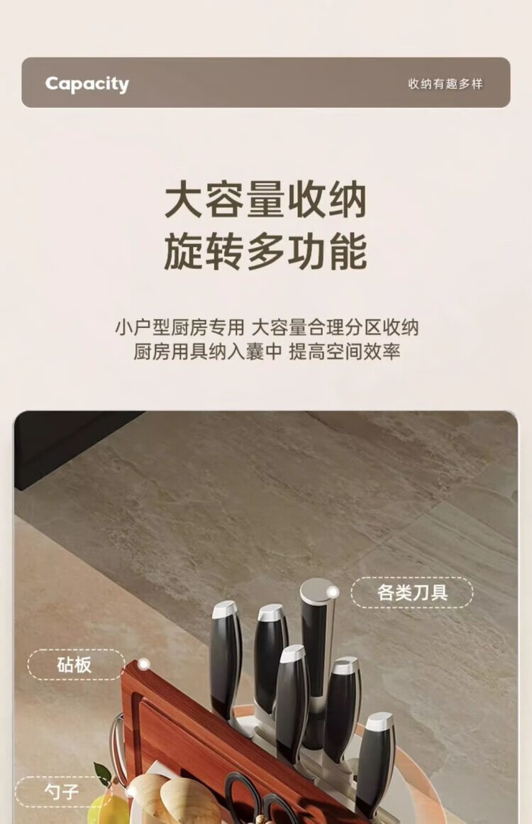 花沐禧可旋转刀架厨房置物架多功能台面家用菜板刀具筷子笼一体收纳 可旋转厨房置物架 加厚墨绿-带菜板架【21X19.8】