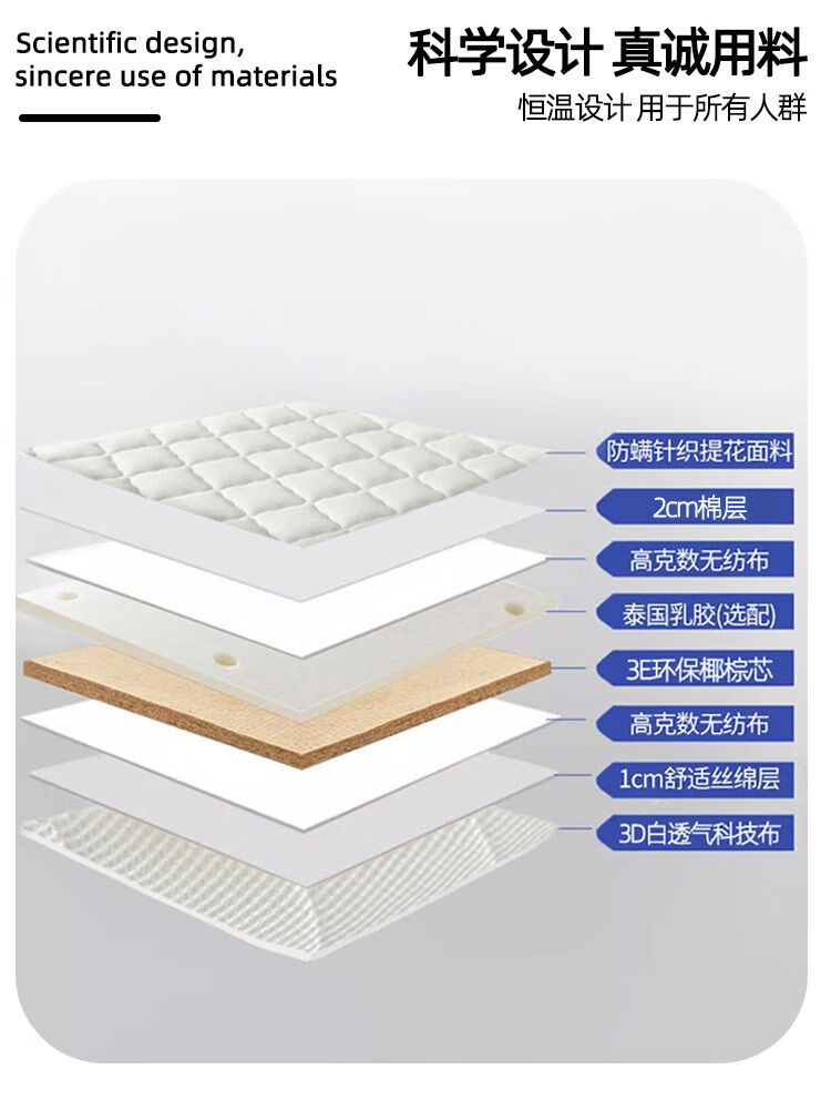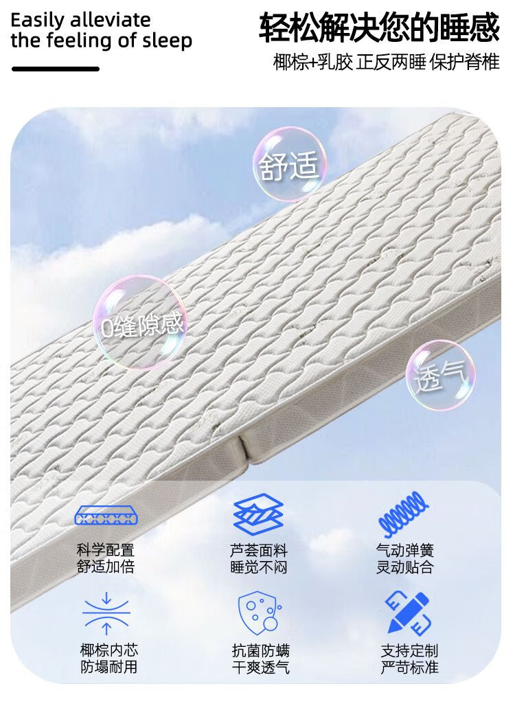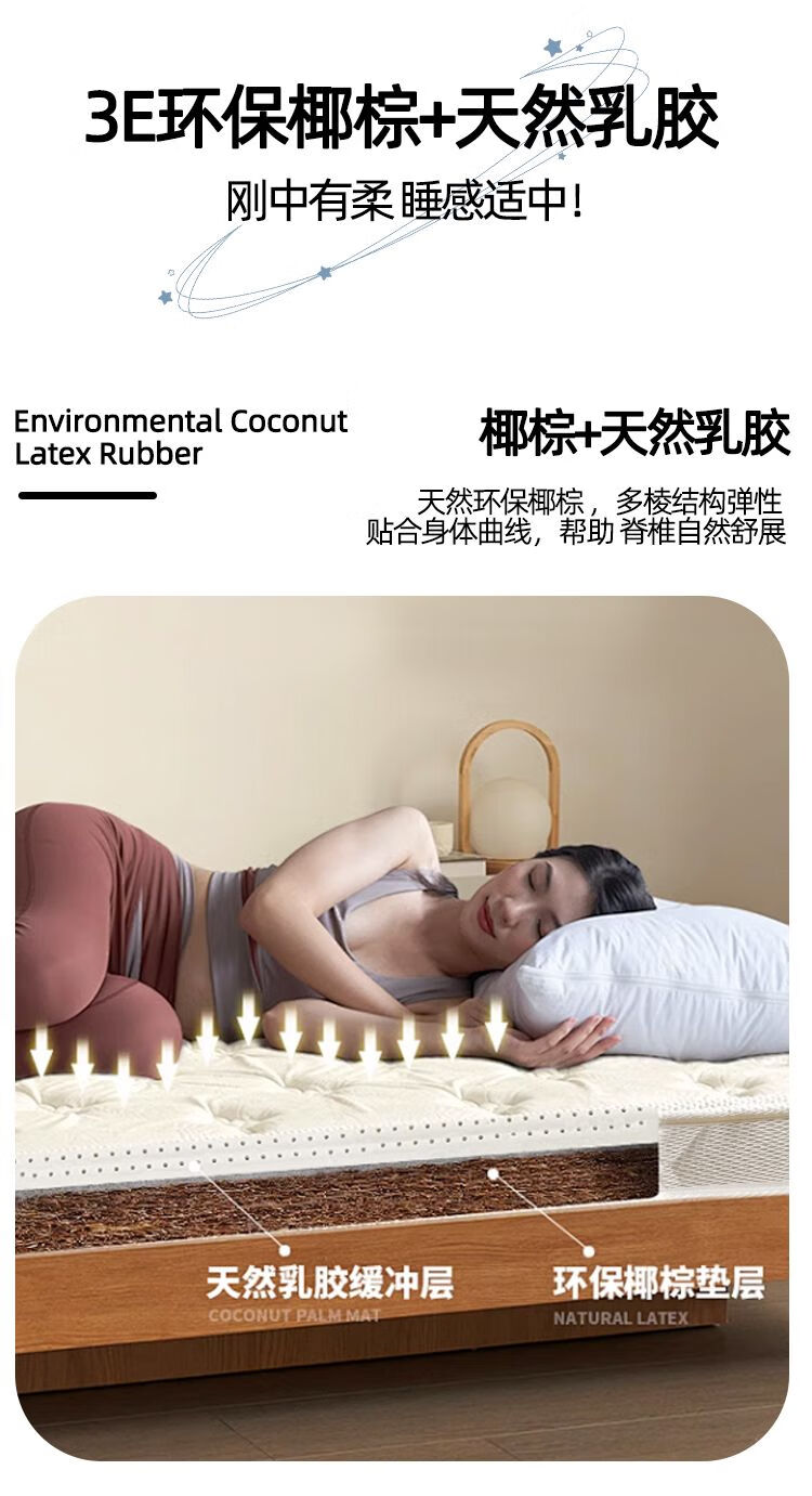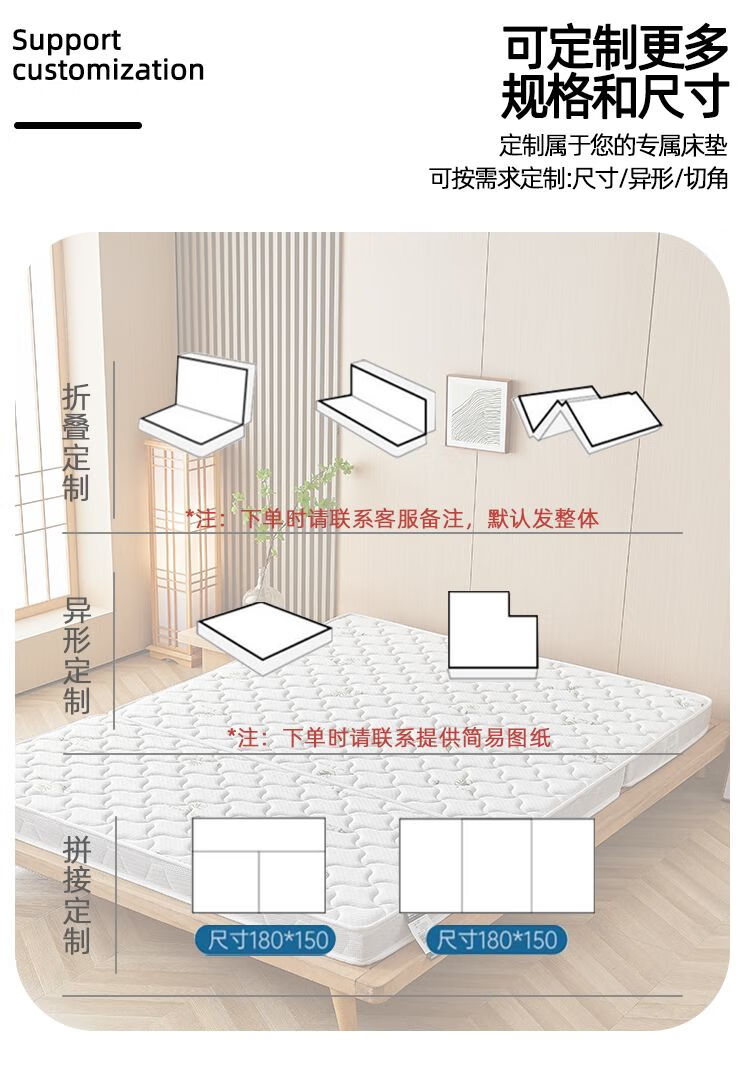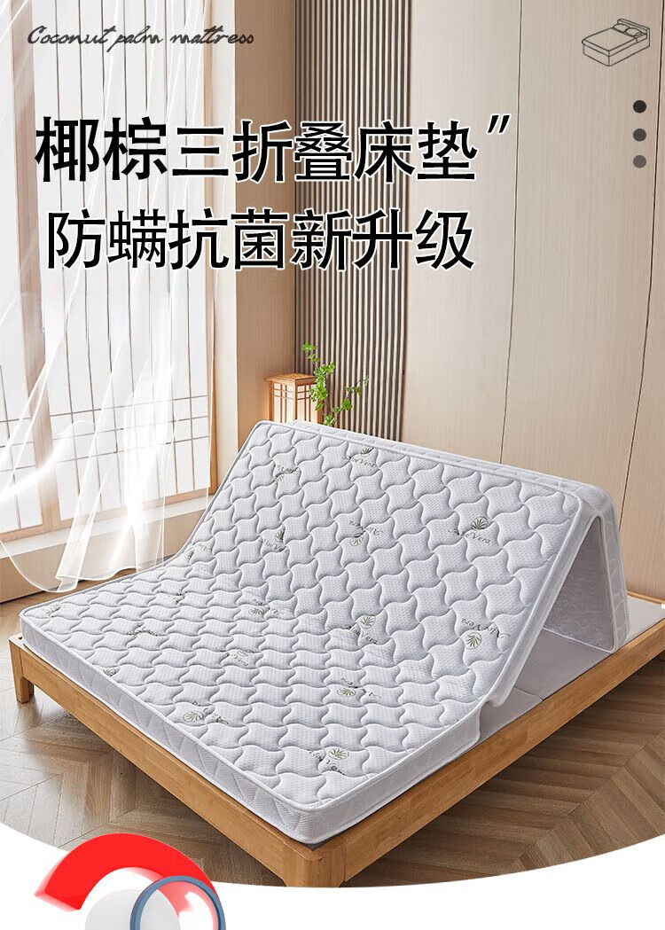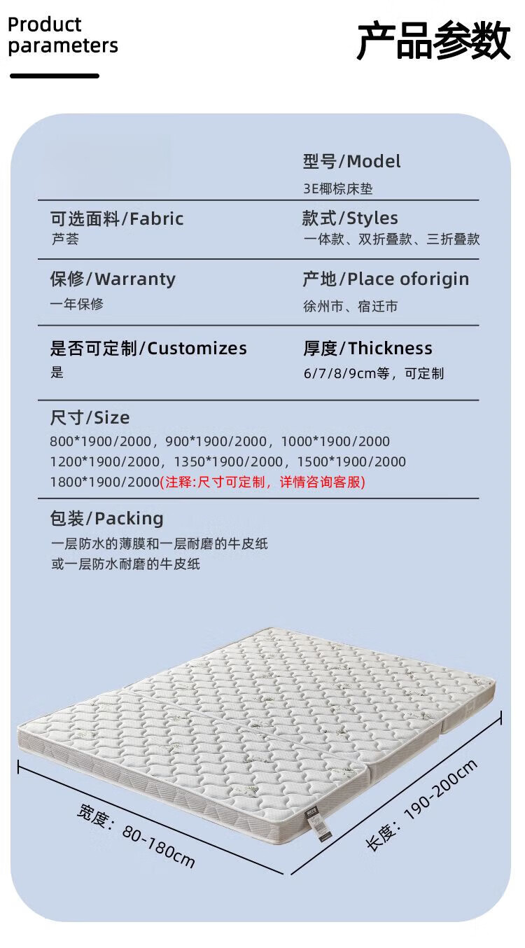 迈途森天然环保椰棕床垫卧室加硬双人乳胶床垫可定制学生儿童榻榻米床垫 【芦荟】8CM/2cm乳胶/三折 1200mm*2000mm