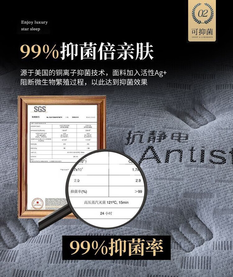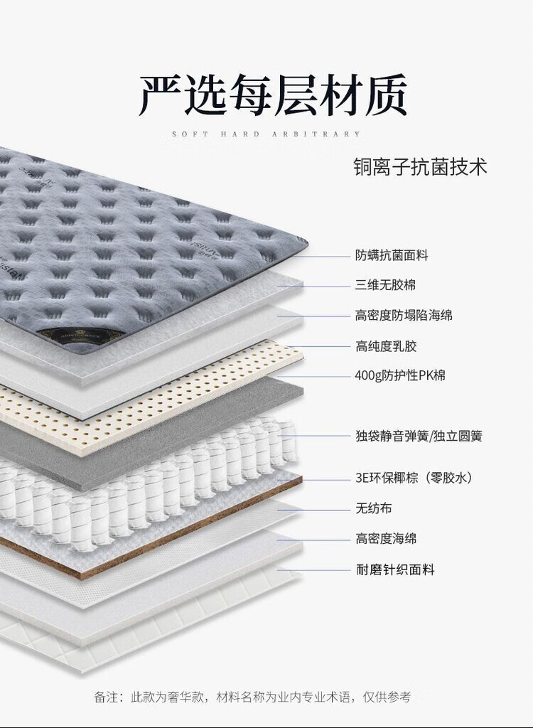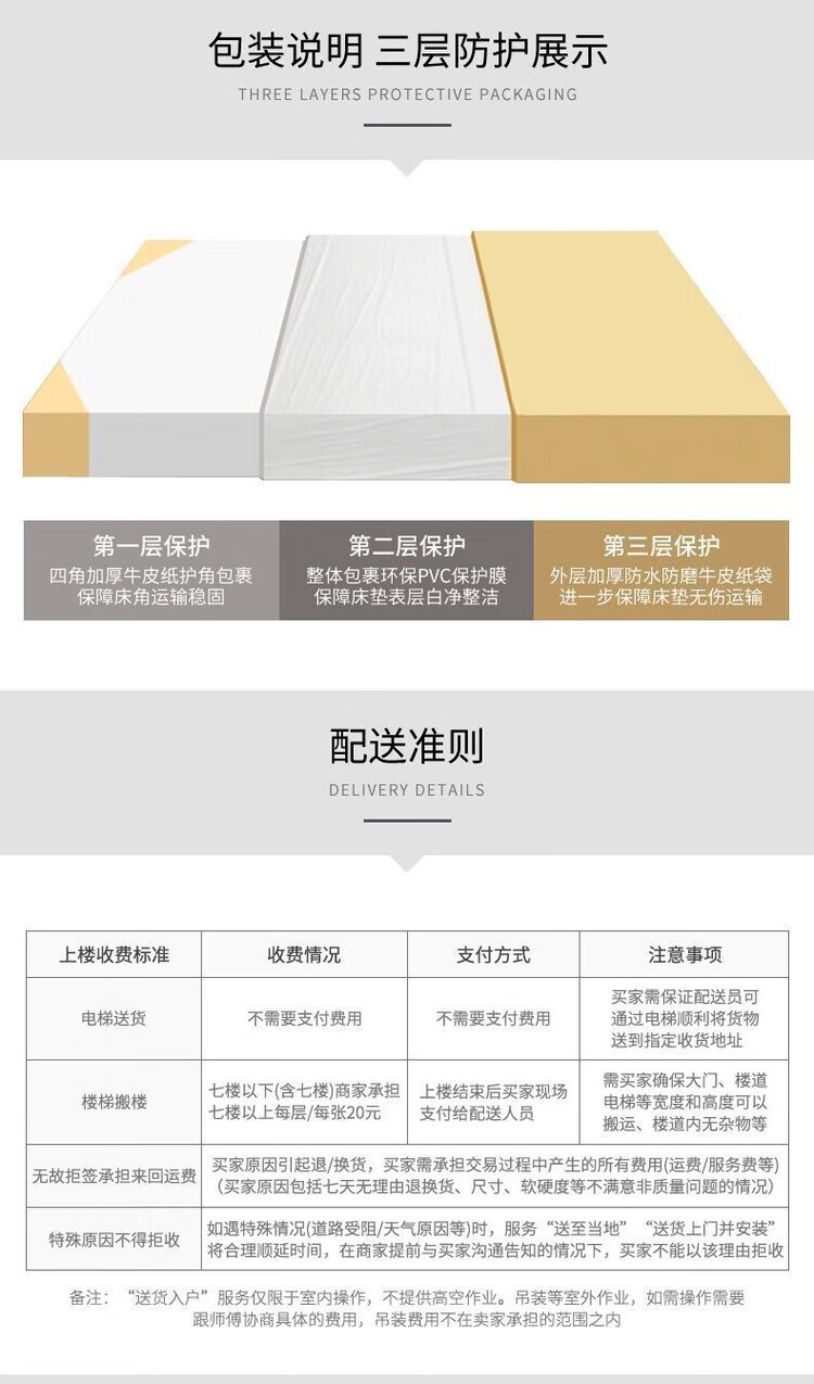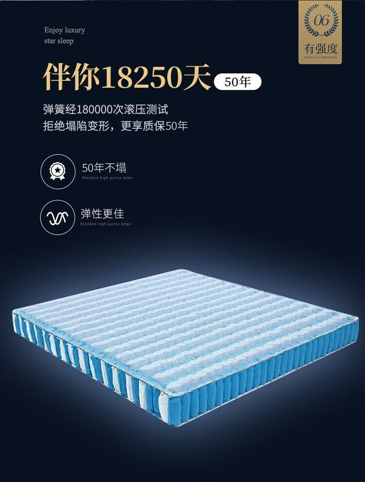 海诗圣堡袋装弹簧床垫1.8米双人家用乳胶弹簧垫酒店专用可定制20cm厚 独立圆簧+环保棕21cm厚 900mm*1900mm