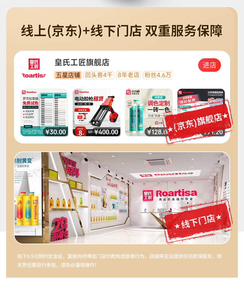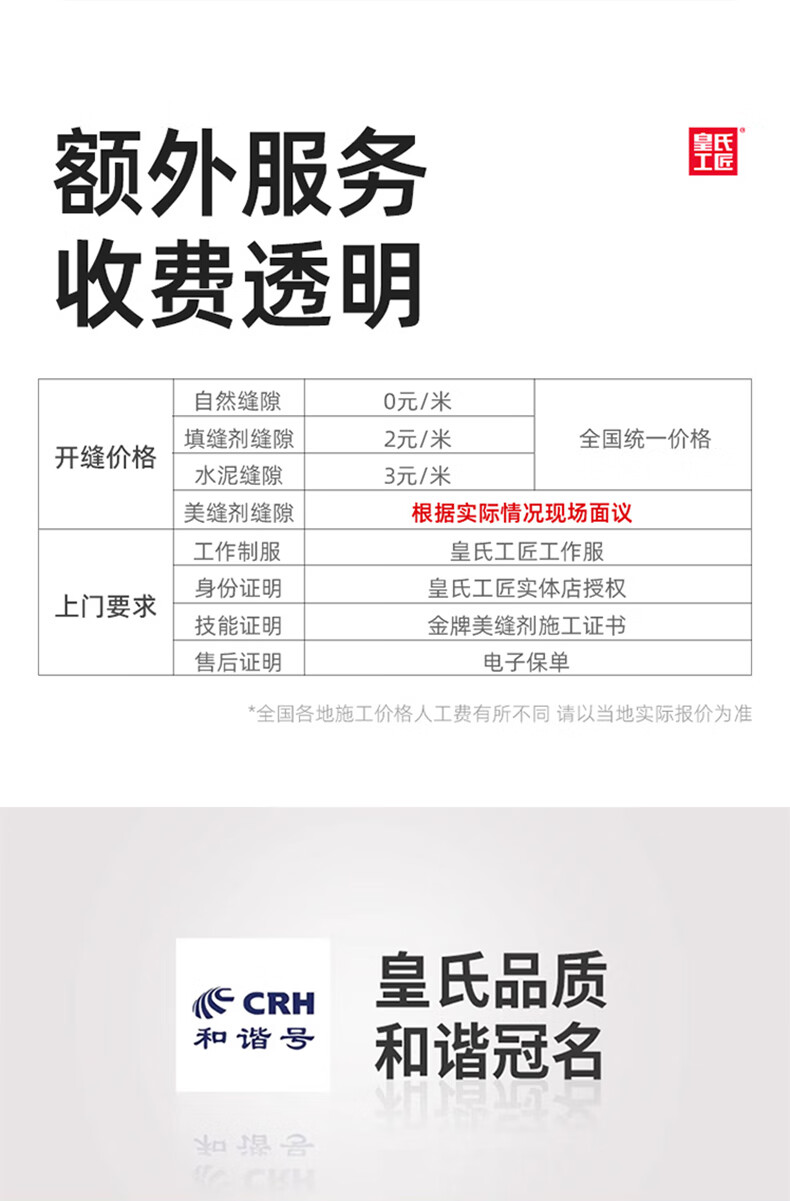 皇氏工匠全国美缝剂施工纯聚脲匠选生物基氢化美缝剂免费上门测量配色订金 【预约定金】预约上门配色测量
