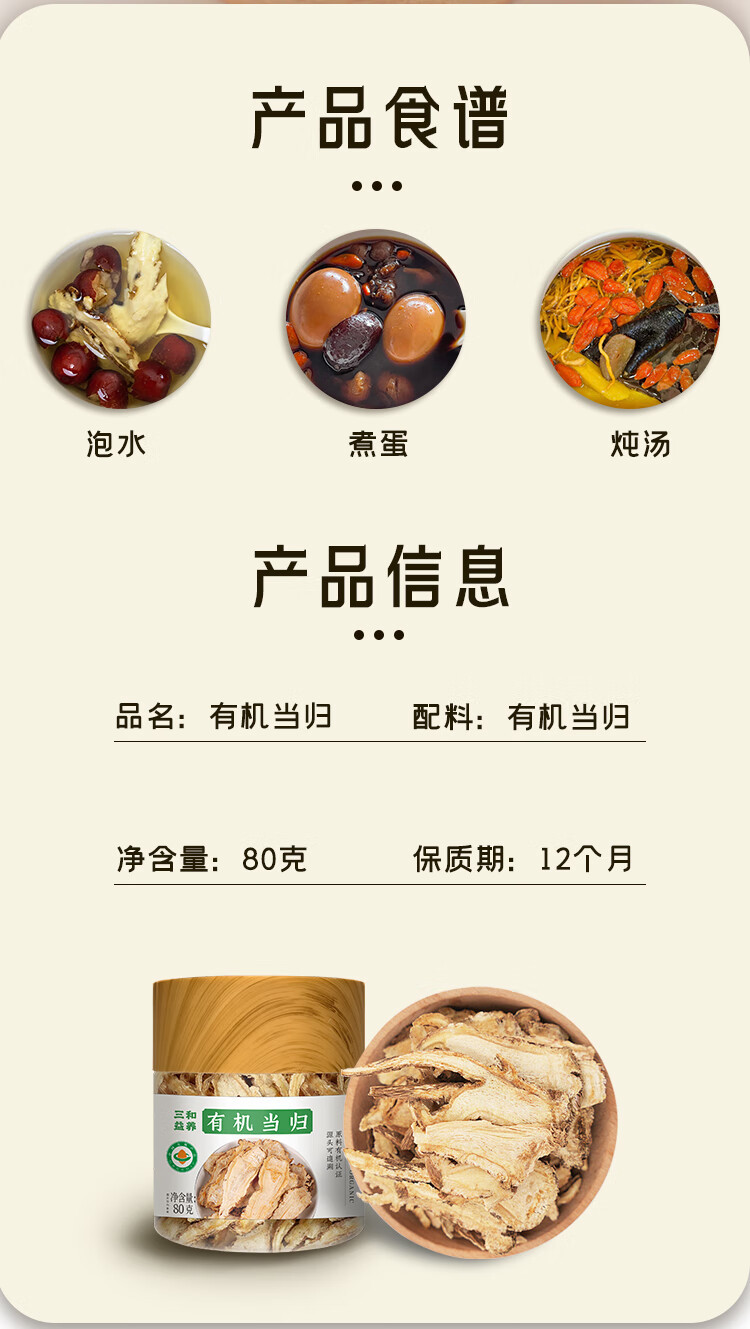 三和益养有机当归正品新货药食同源汤料泡水 有机当归80g1瓶