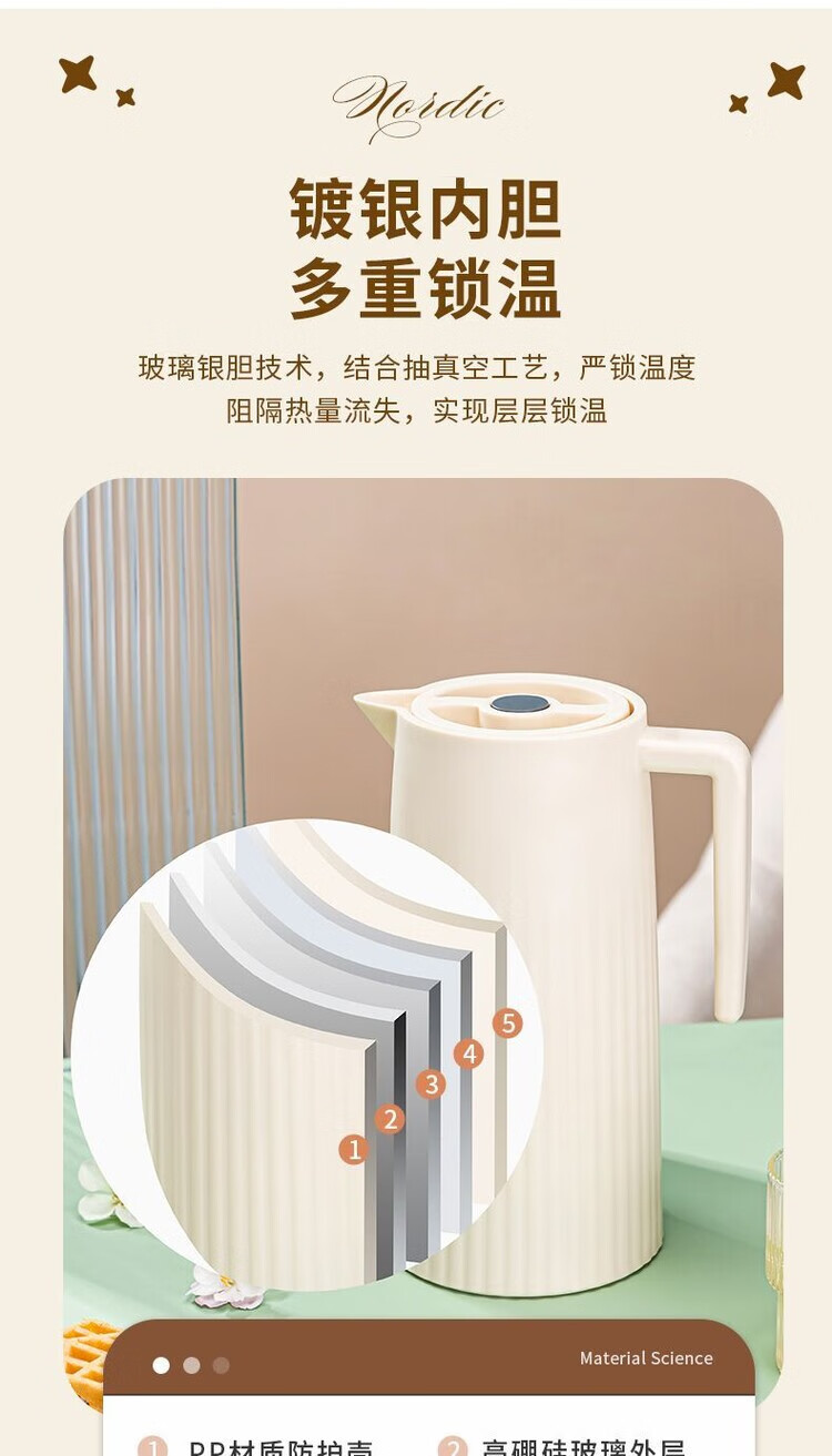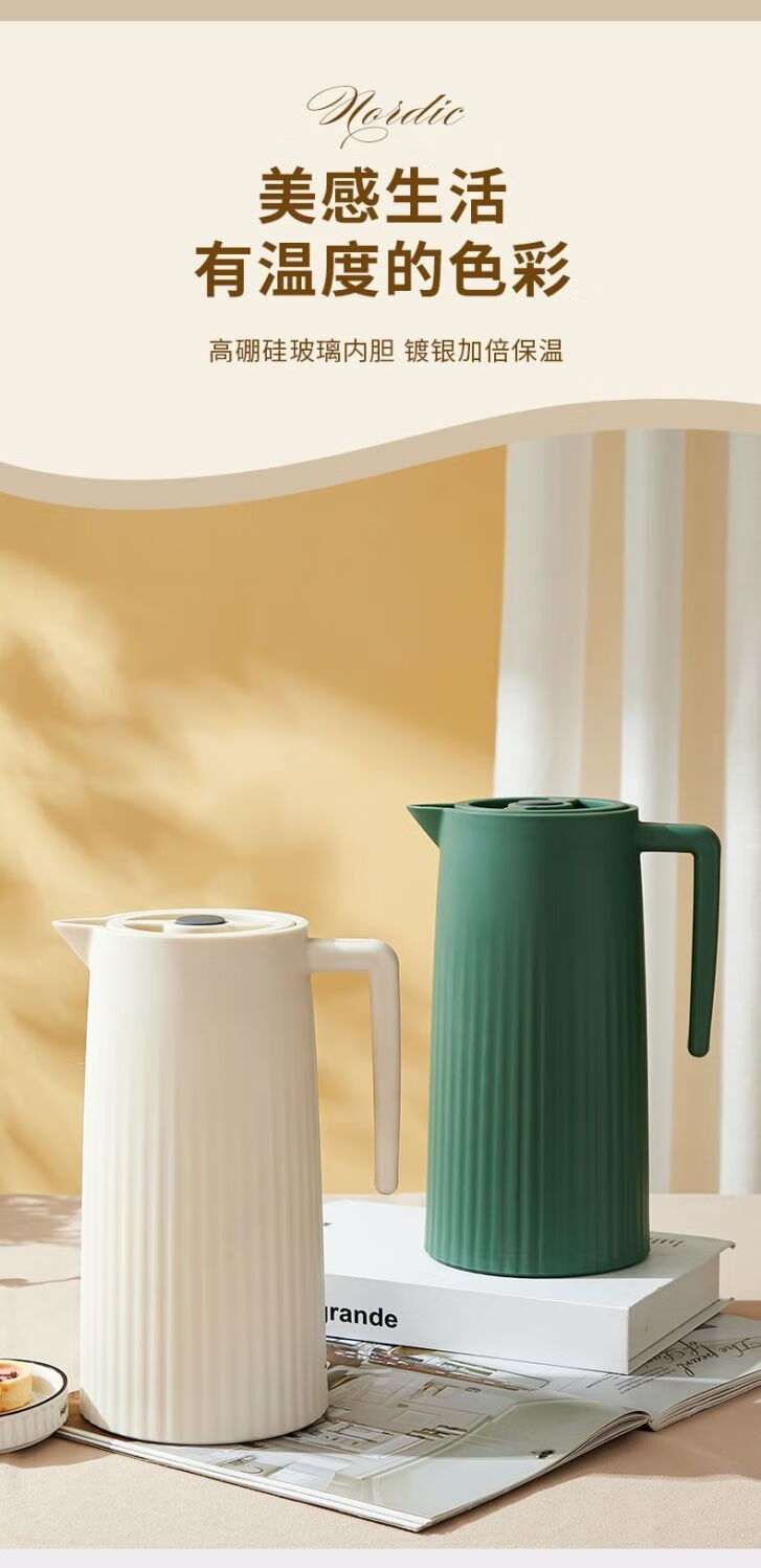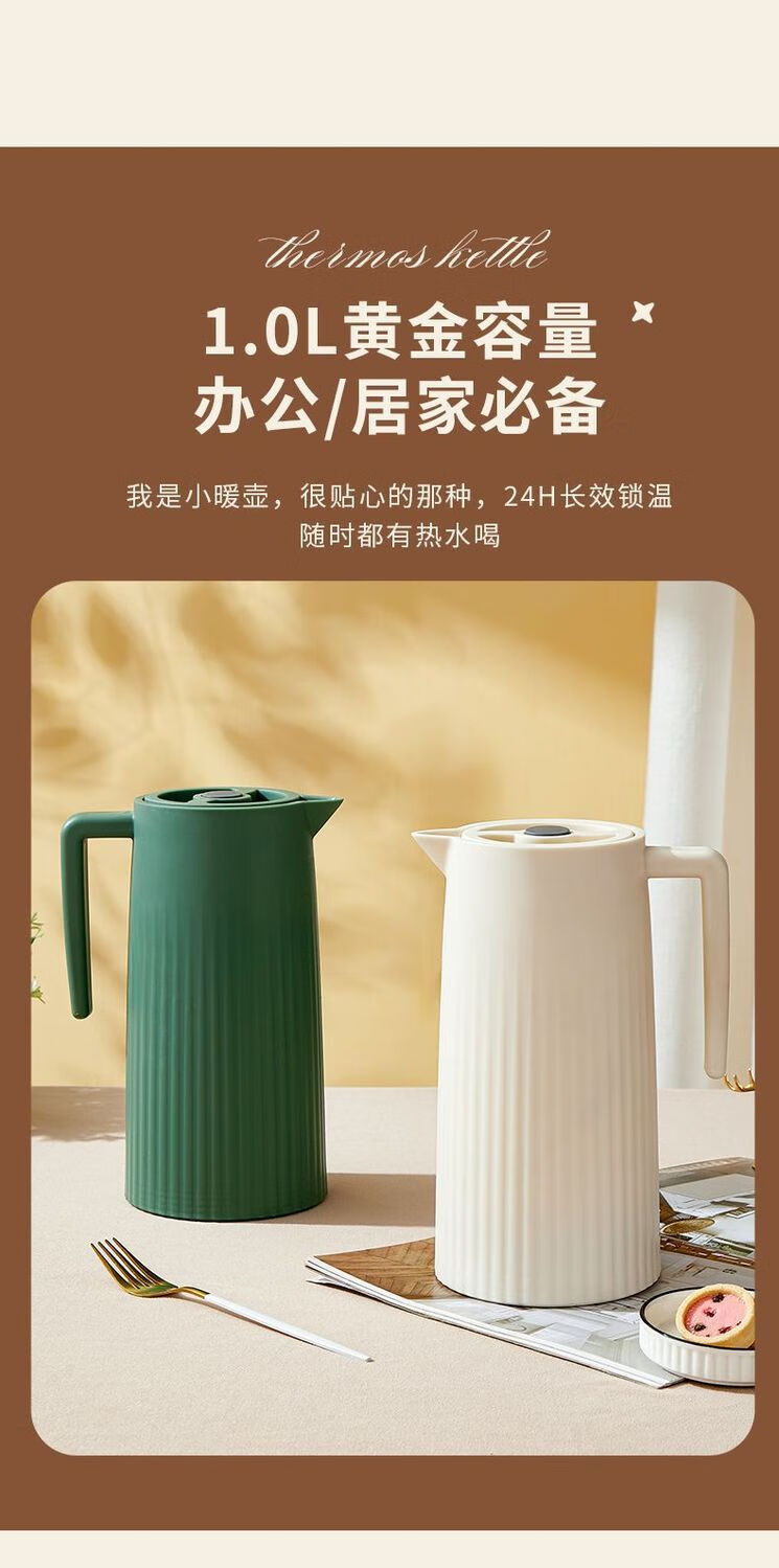 花沐禧长效保温大容量家用车载便携简约热水瓶学生宿舍办公暖壶热水壶 【两只装】透明可叠杯 水壶双层镀银高硼硅玻璃内胆