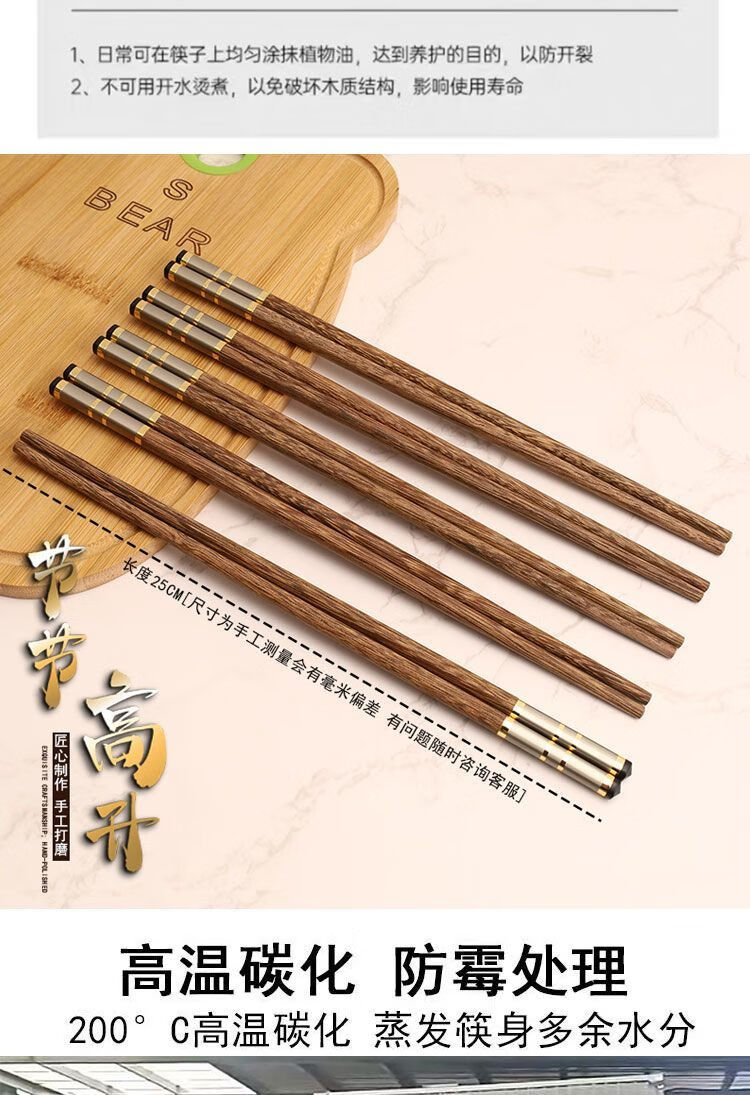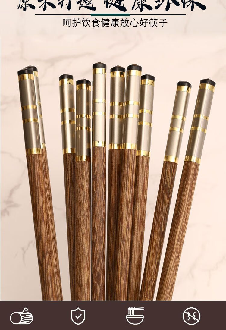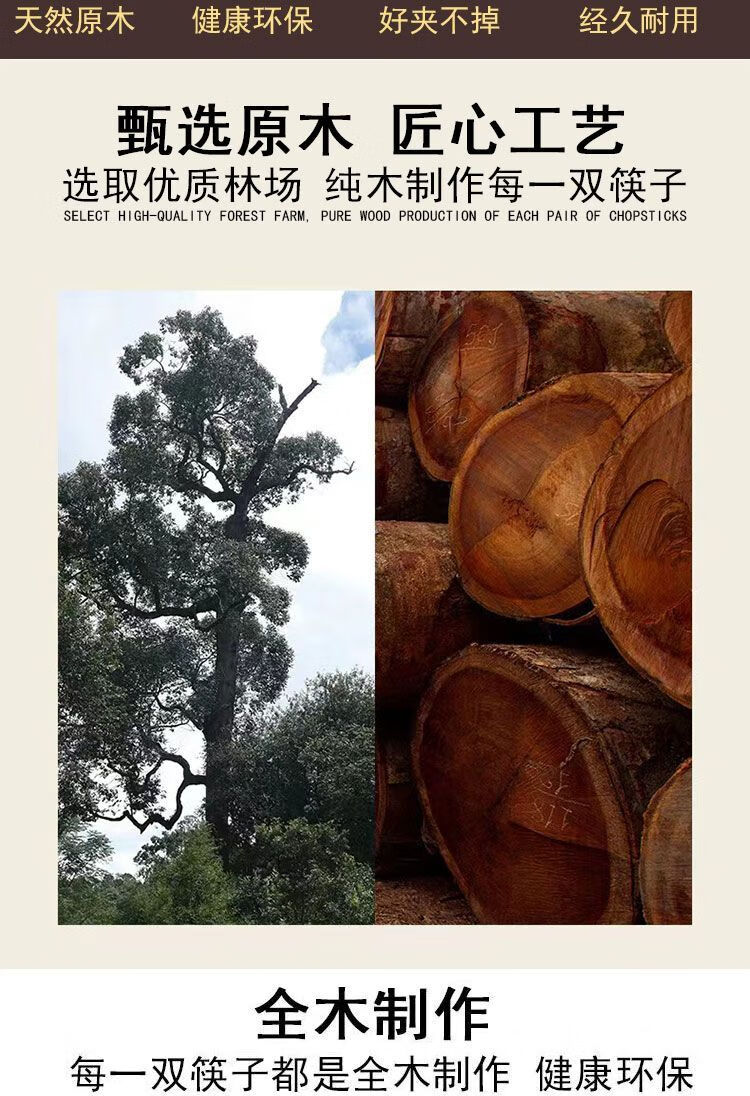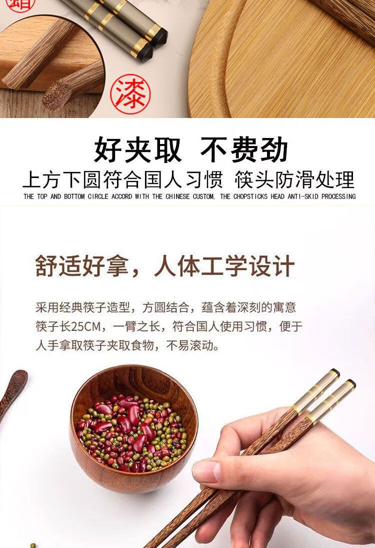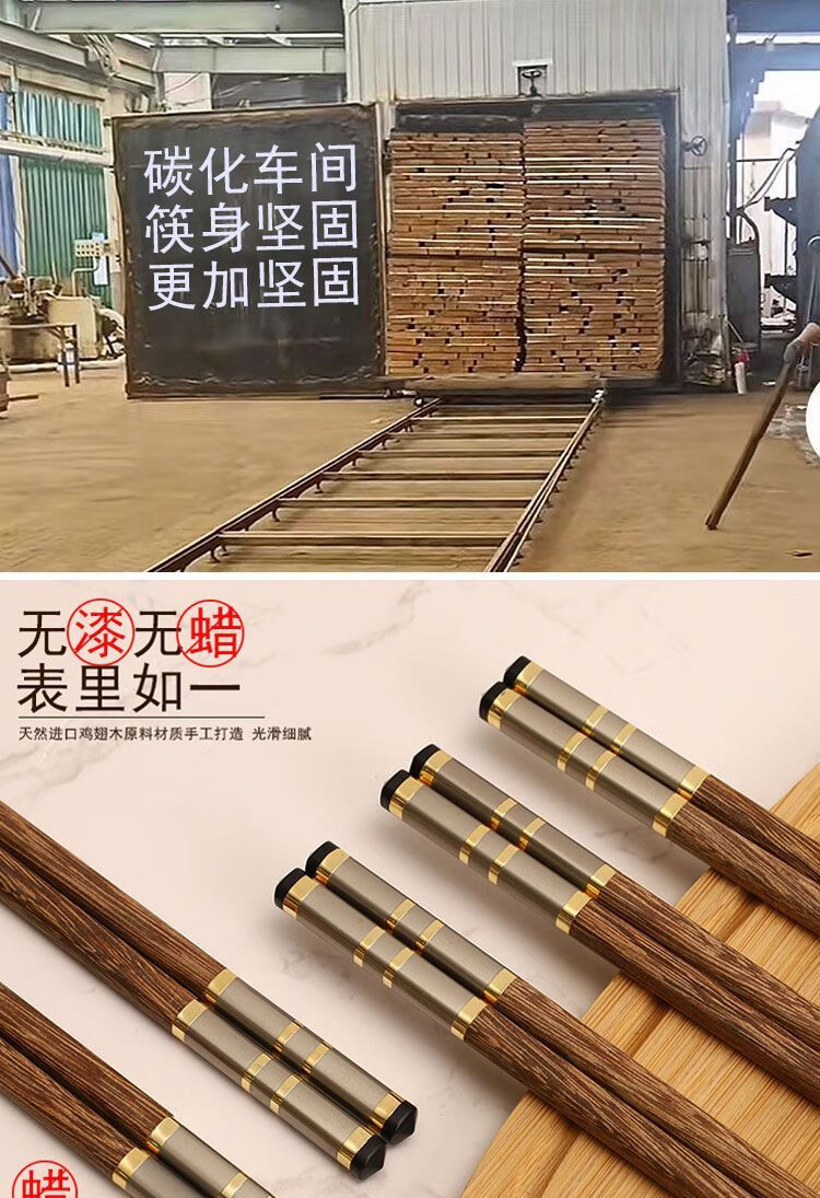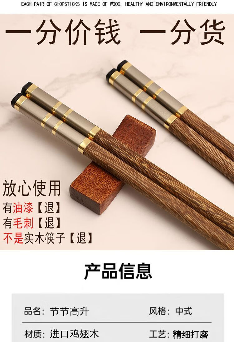花沐禧鸡翅木檀木筷子家用实木高档快子中式防霉防滑无漆无蜡加长装家庭 【加长款25CM】3双装