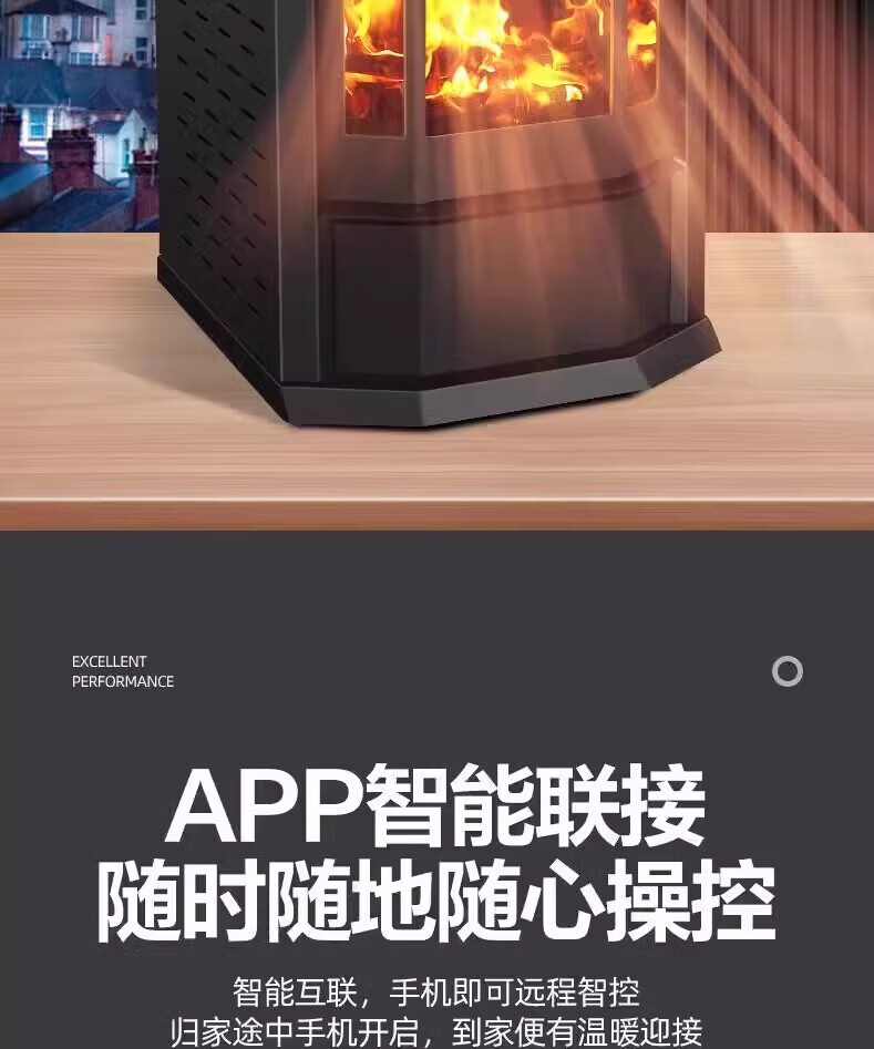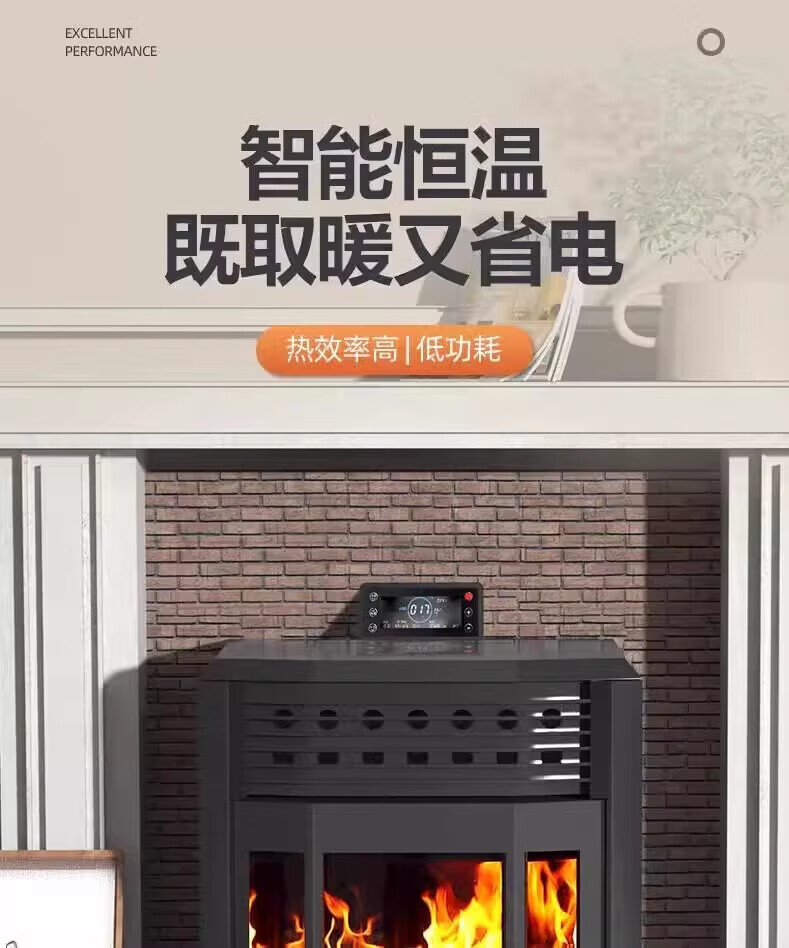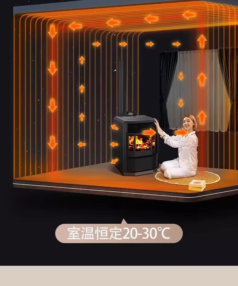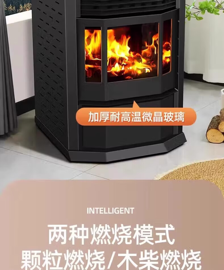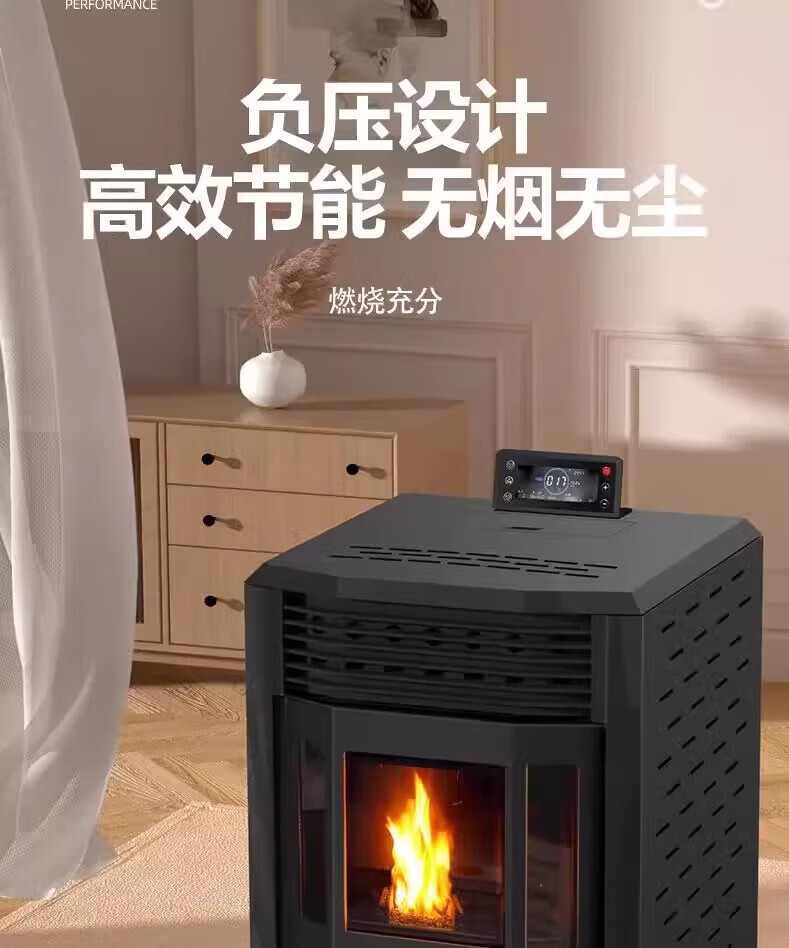 猎钢狼欧式生物智能可遥控定时颗粒商用全自动节能环保燃料取暖炉节能家用室内无烟制热可烧水煮饭取暖炉 【智能遥控定时150款】可烧水做饭