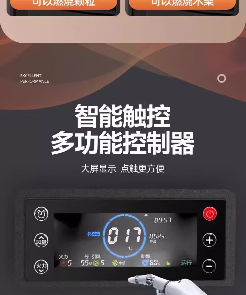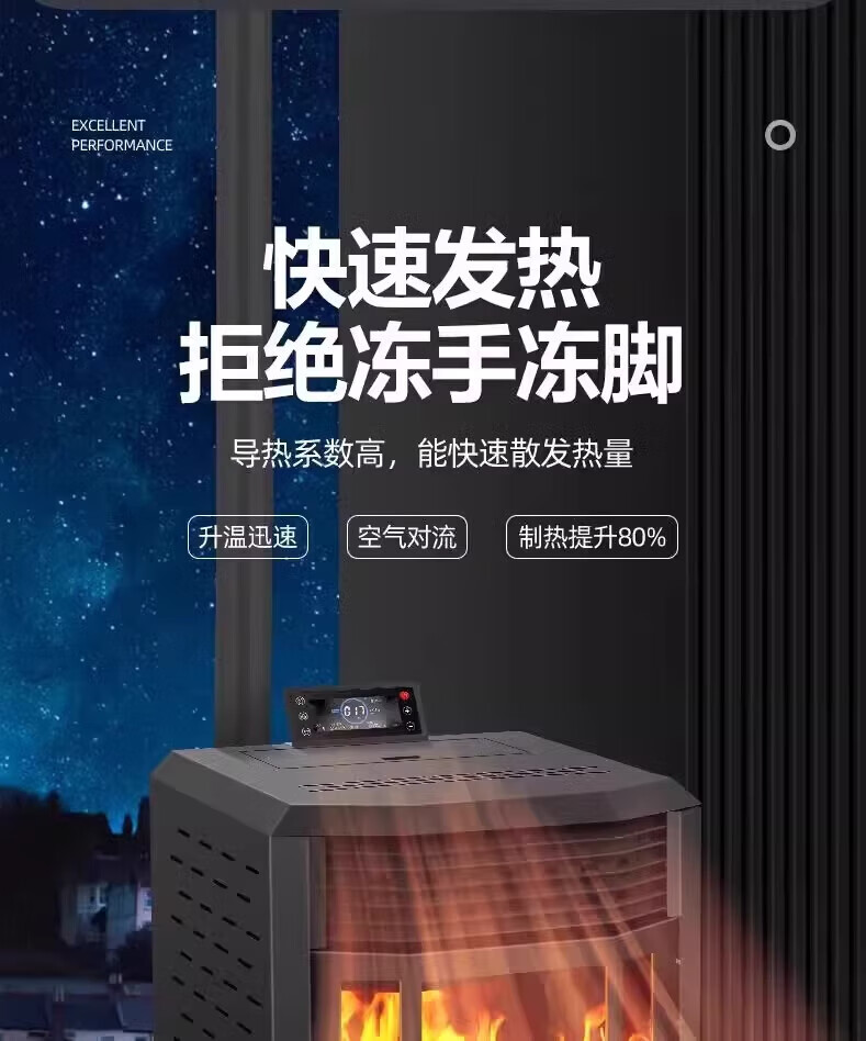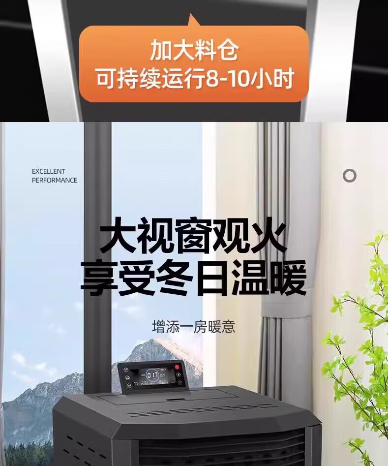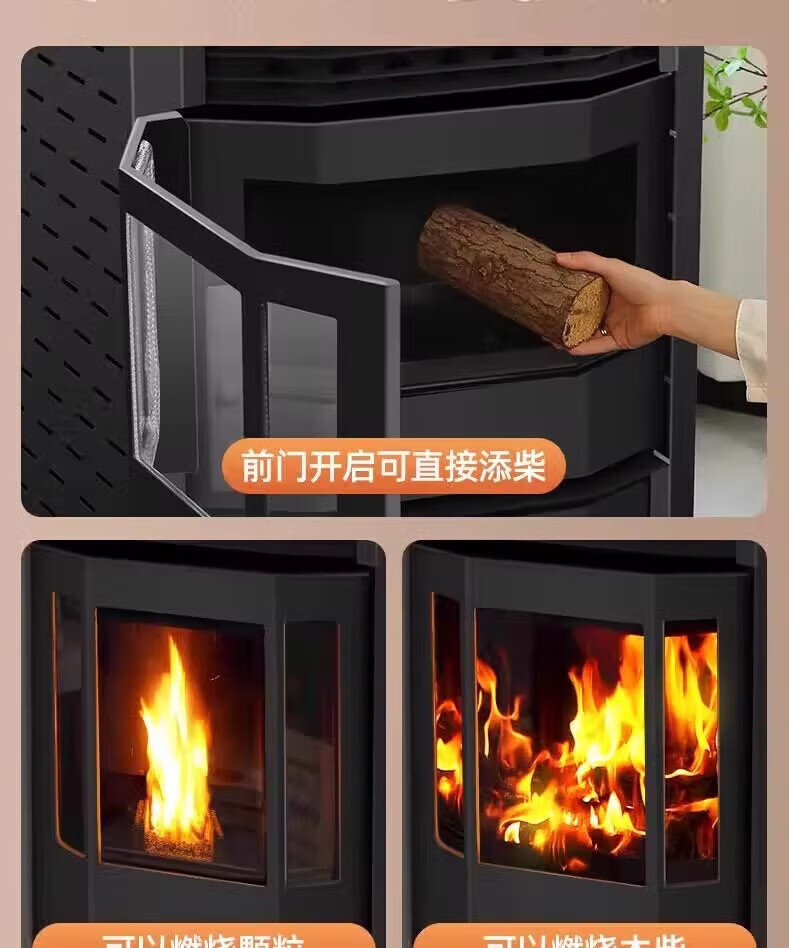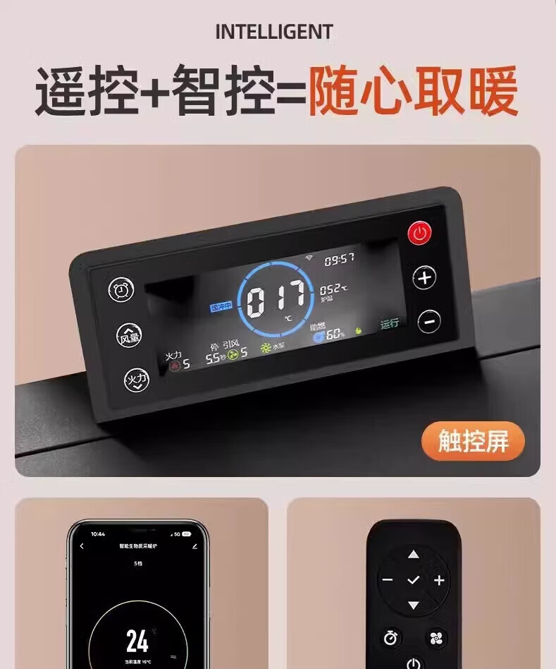 猎钢狼欧式生物智能可遥控定时颗粒商用全自动节能环保燃料取暖炉节能家用室内无烟制热可烧水煮饭取暖炉 【智能遥控定时150款】可烧水做饭