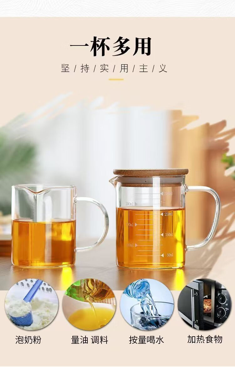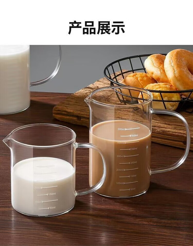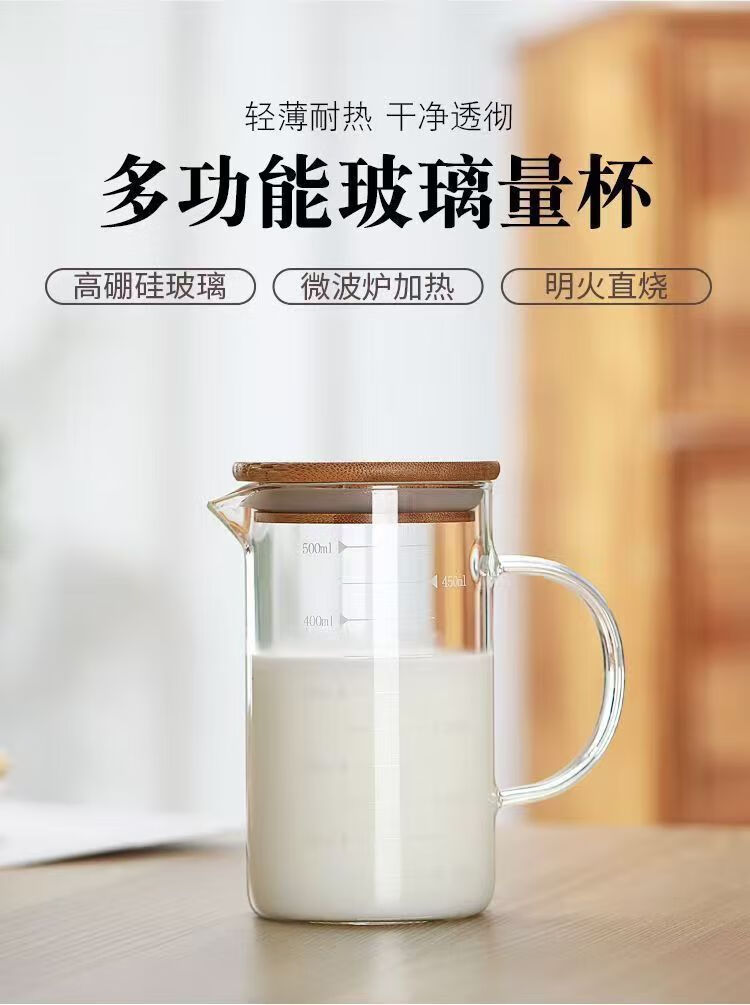 泰禧阁玻璃量杯带刻度杯子微波炉家用厨房烘焙计量杯带盖带把加厚耐高温 500ML刻度量杯【光杯】 可微波/电陶炉