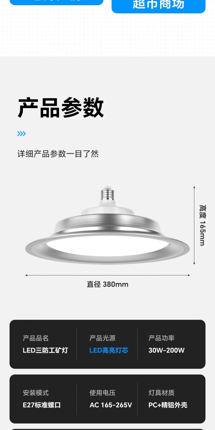 振牛led三防工矿灯飞碟灯e27螺口灯泡超亮厂房工厂车间仓库照明灯吊灯 【螺口款】超亮30W 三防设计+加厚铝材+工程品质