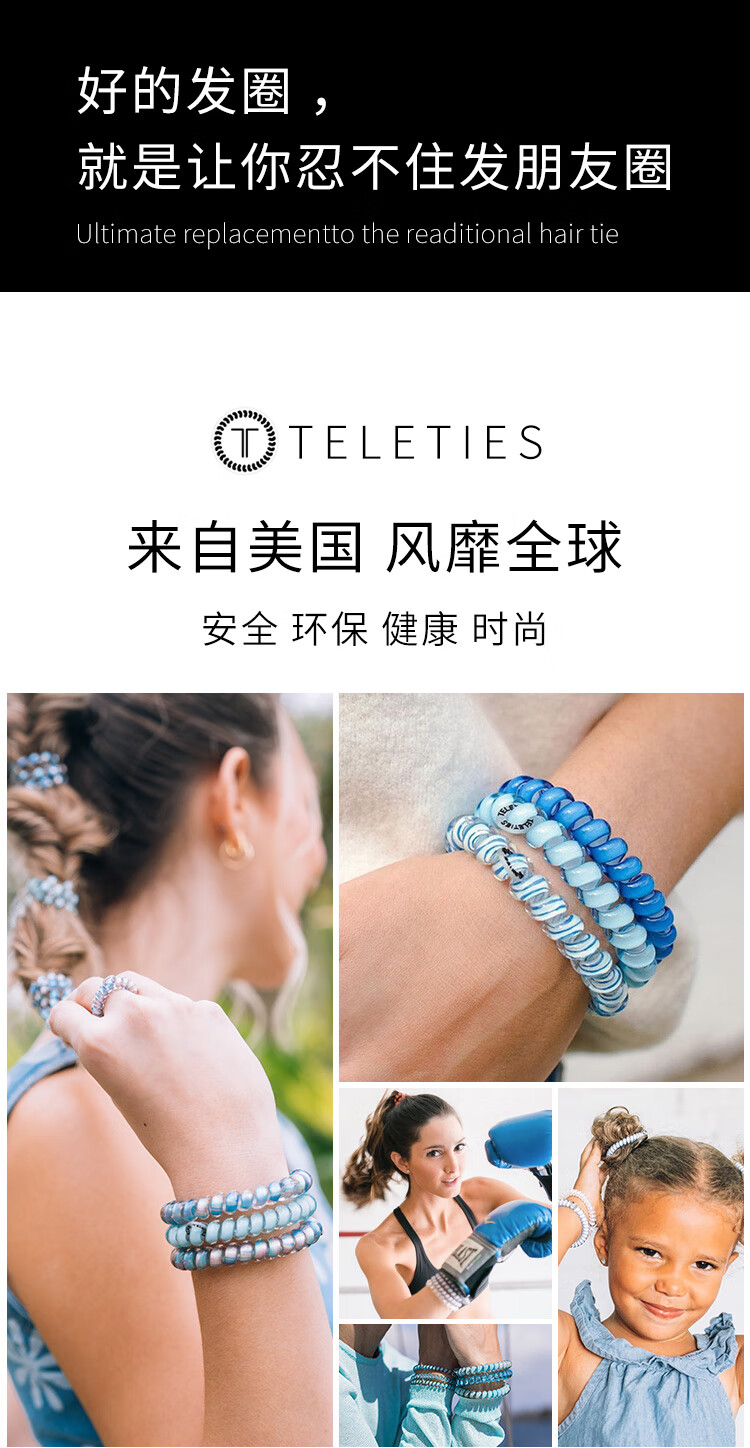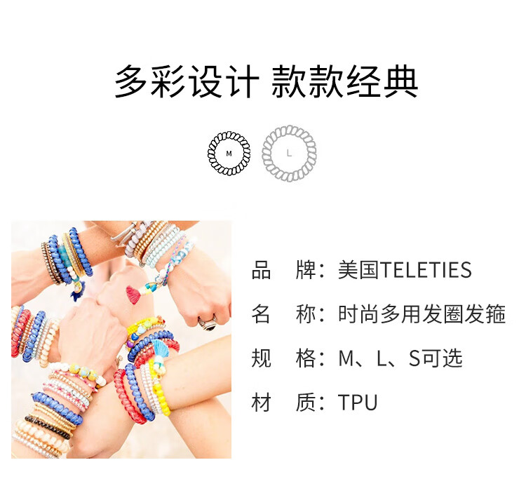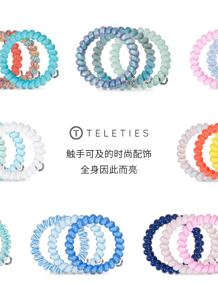 TELETIES美国进口发圈电话线(天色极光M款)发绳头绳泰莉圈两用无痕M-362