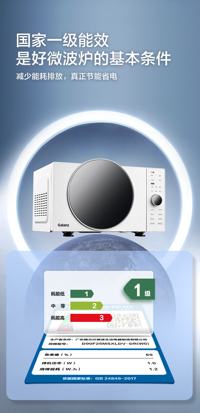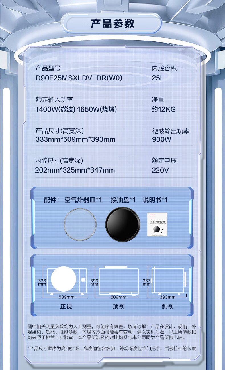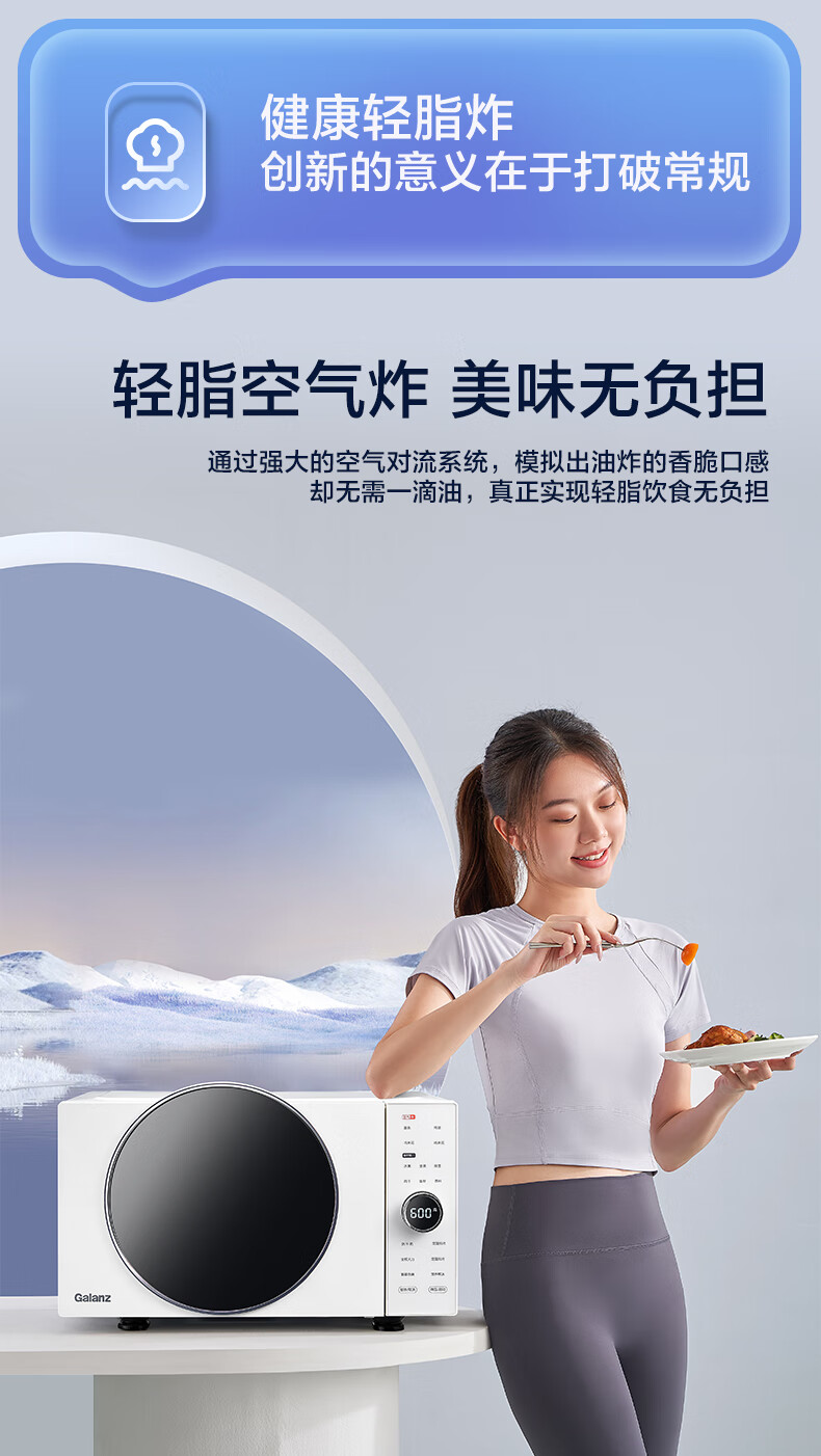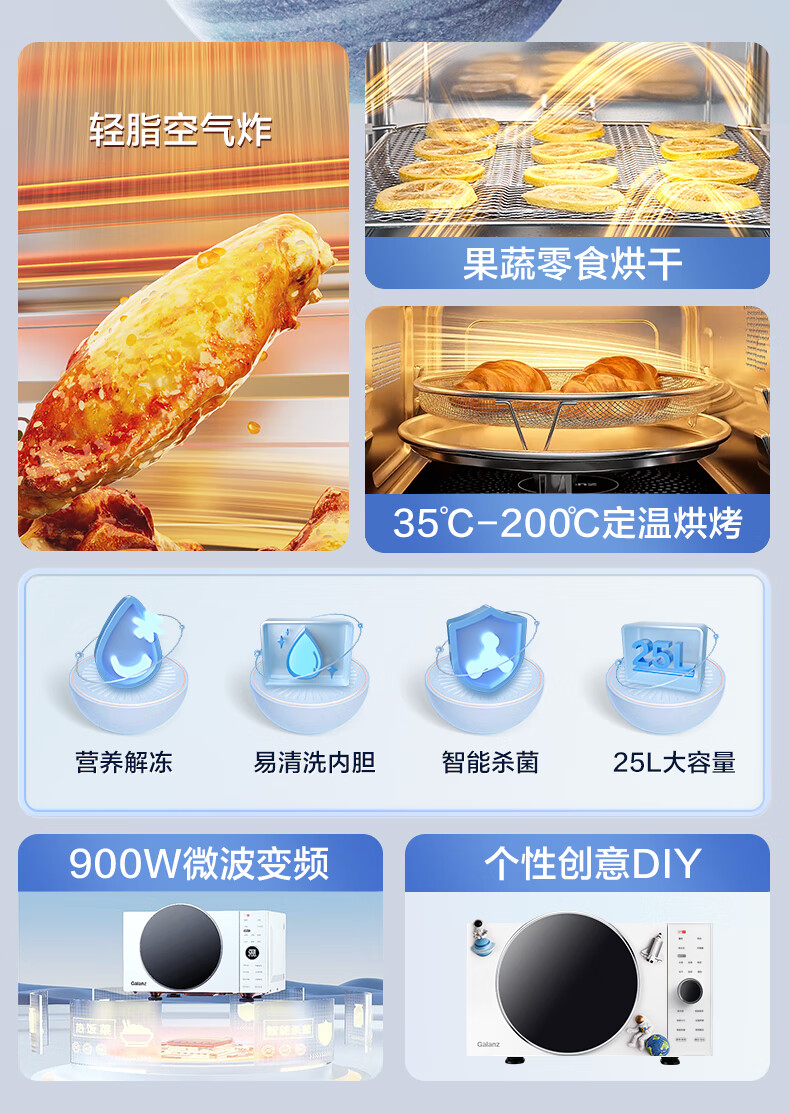 格兰仕(Galanz)微波炉25升900W变频空气炸烤箱一体机0涂层不锈钢内胆一级能效微烤炸一体机 DR