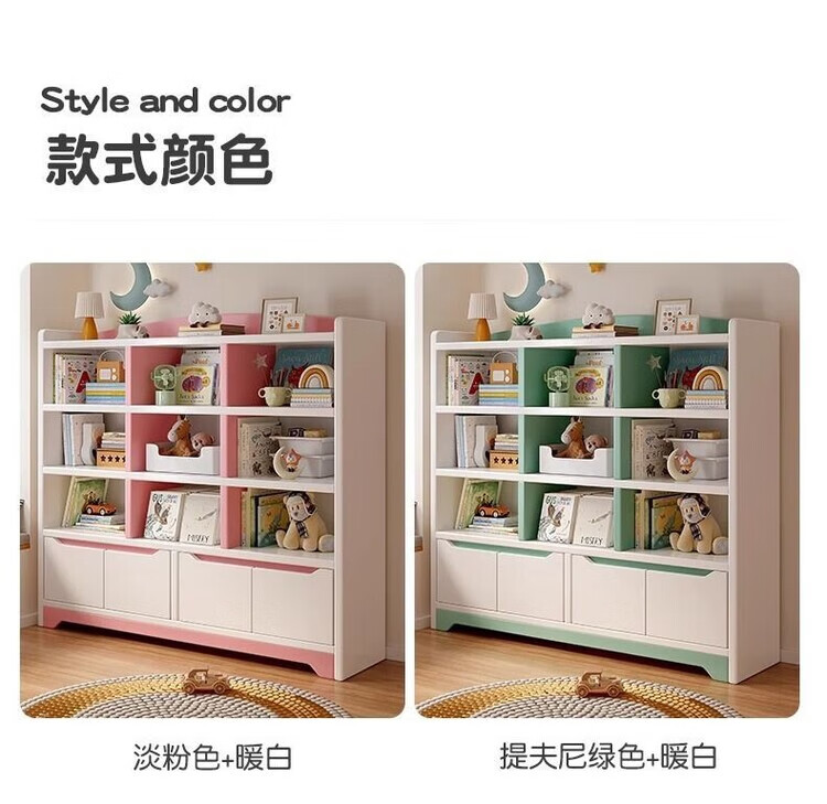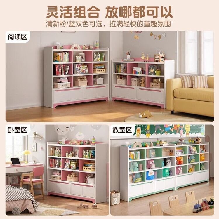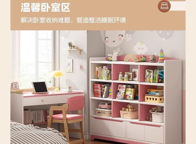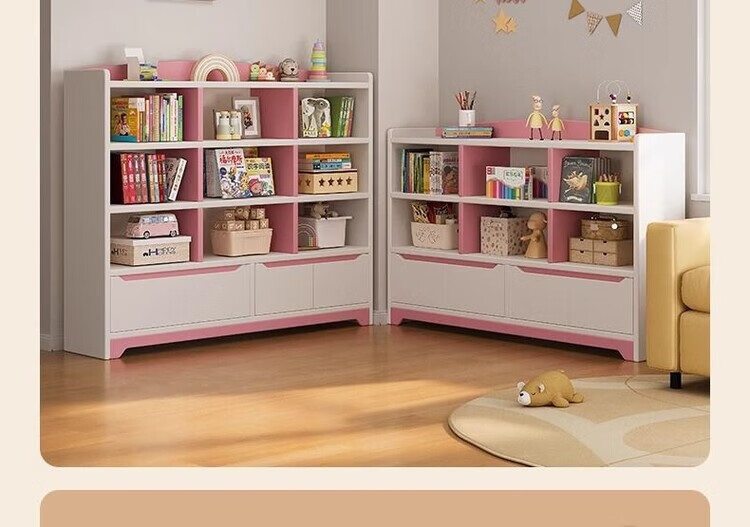 弘星隆学生书柜儿童家用书架置物架阅读储物收纳环保板玩具教室班级柜子 粉色常规【80.24.113】三层