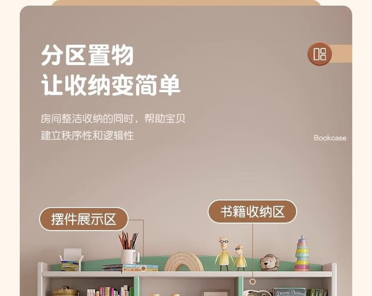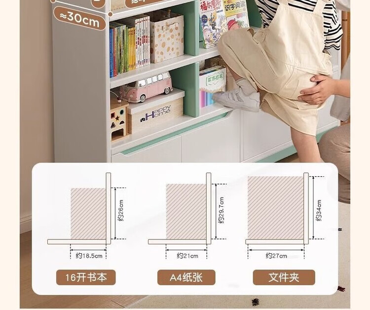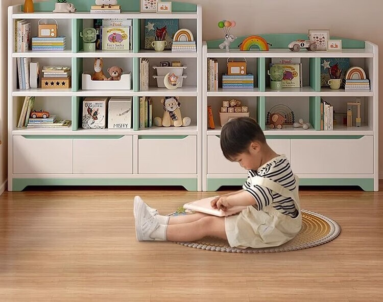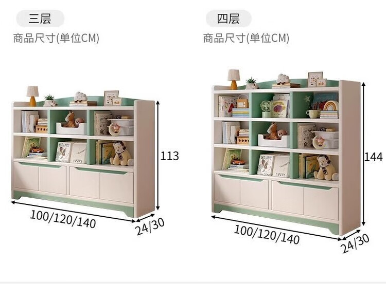 倘然之家简易书柜书架落地多层置物架儿童玩具储物柜飘窗收纳柜客厅隔断架 3层长60带柜子