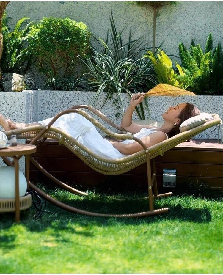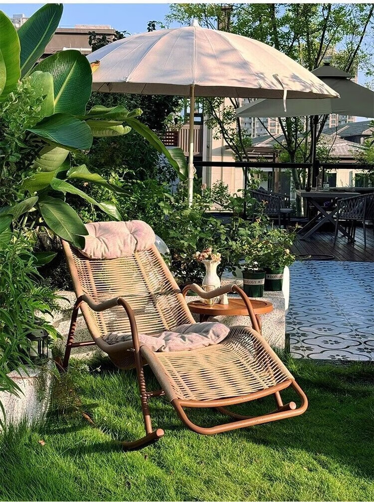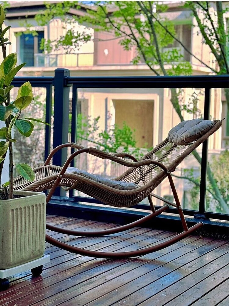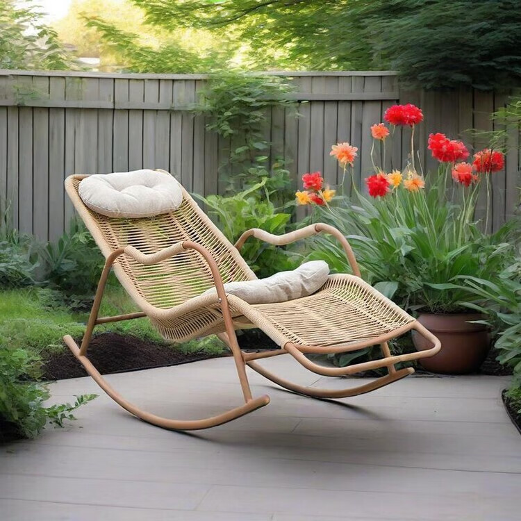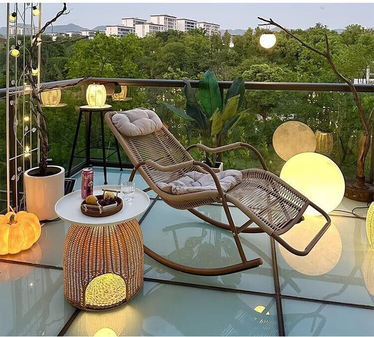 迈途森月牙藤编椅客厅阳台午休躺椅家用户外庭院休闲摇摇椅老人逍遥椅子 月牙摇椅单椅