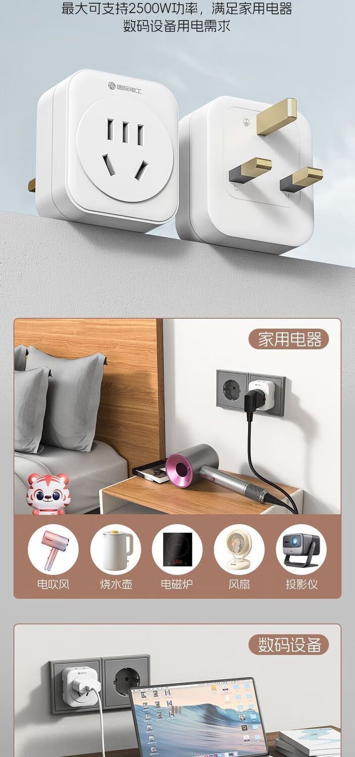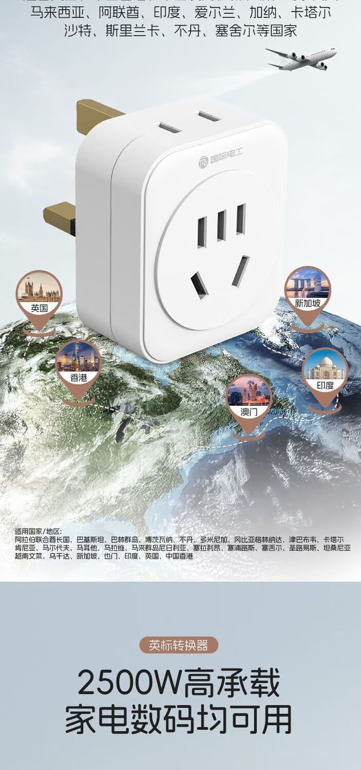 国际电工俄罗斯韩国欧洲多国旅行专用转换插头转换器欧标英标德标日本插座 国标一转三插头