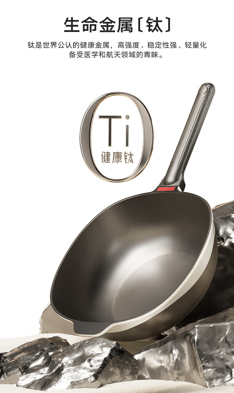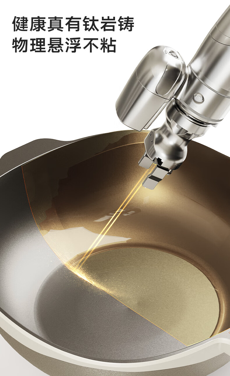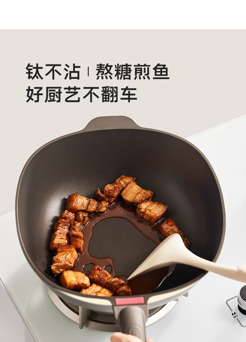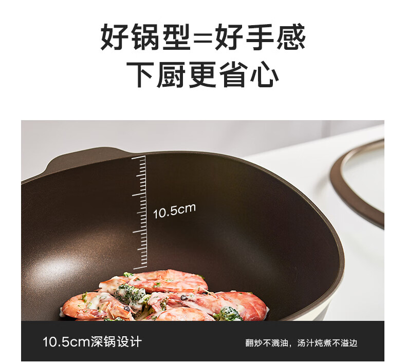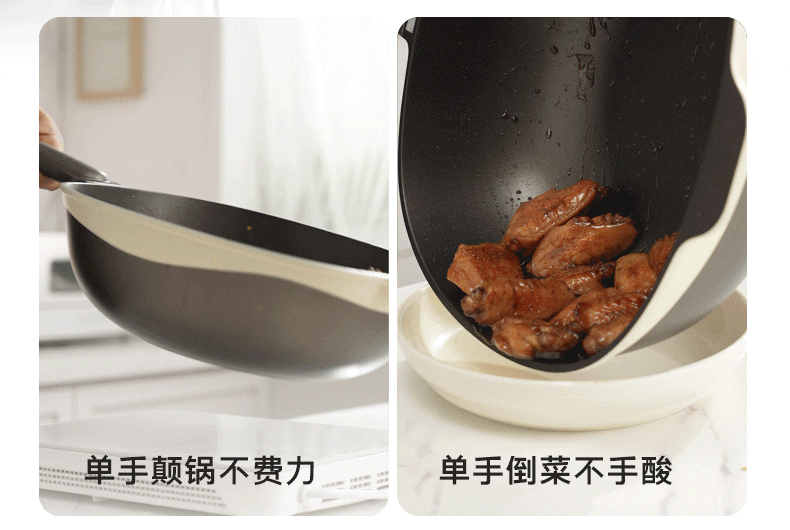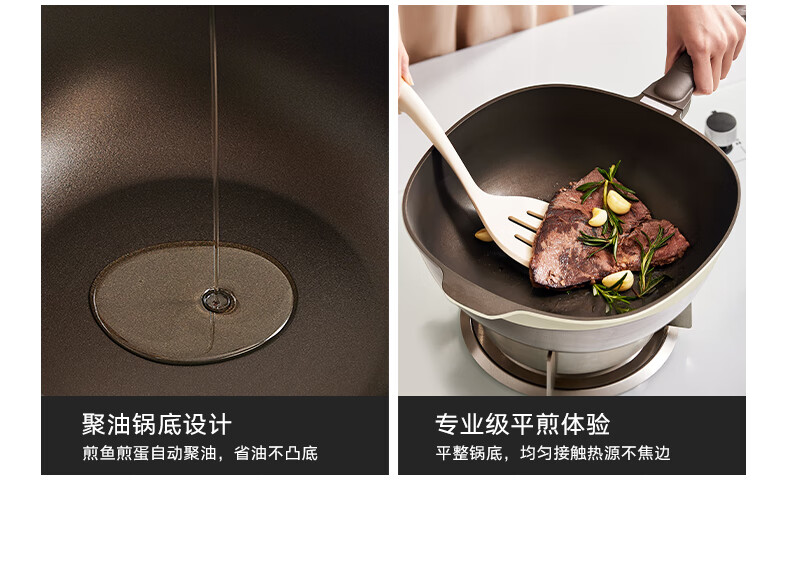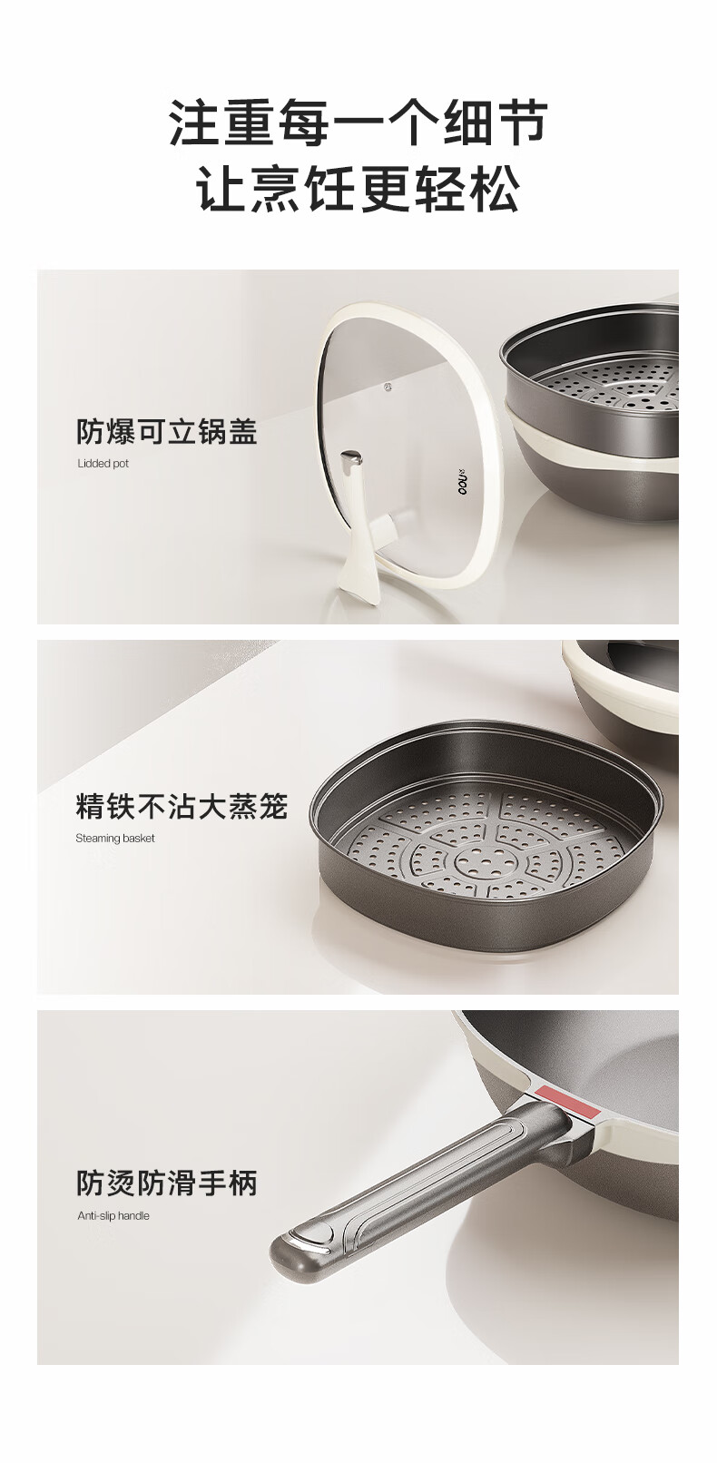 OOU炒锅蒸锅平底锅不粘锅家用炒菜易清洗燃气电磁炉通用钛轻锅 熊猫色|不沾钛轻锅 32cm
