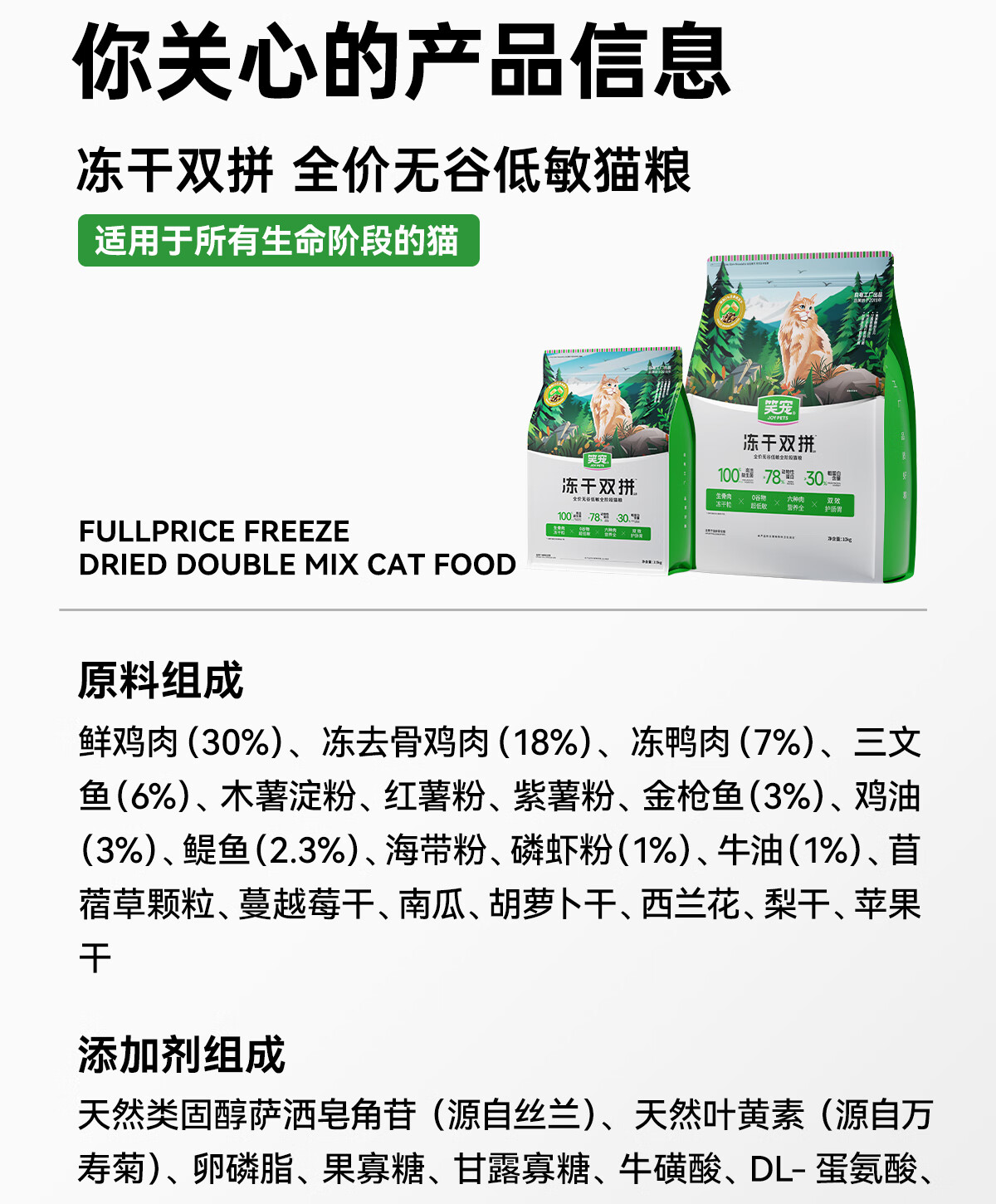 笑宠冻干双拼无谷低敏猫粮全价高蛋白鲜肉粮成猫幼猫专用10kg