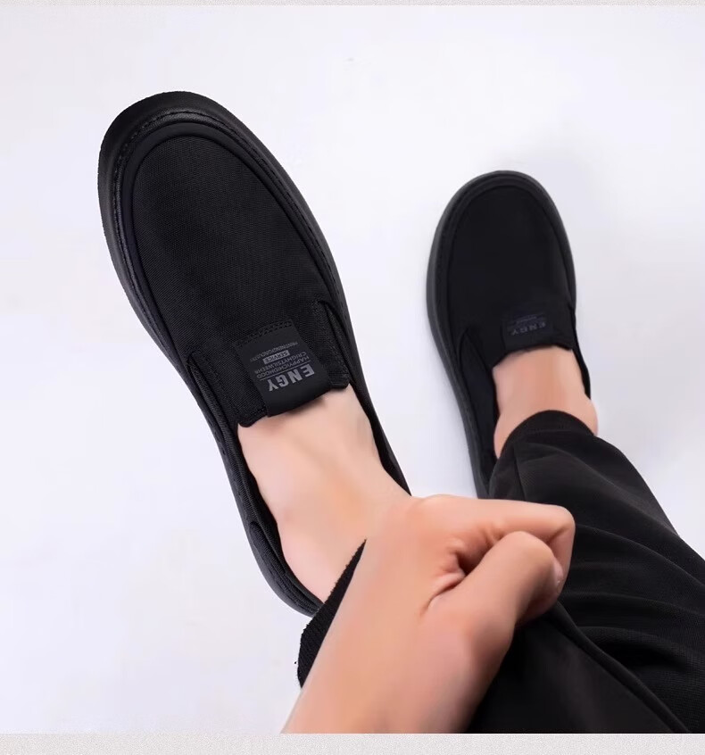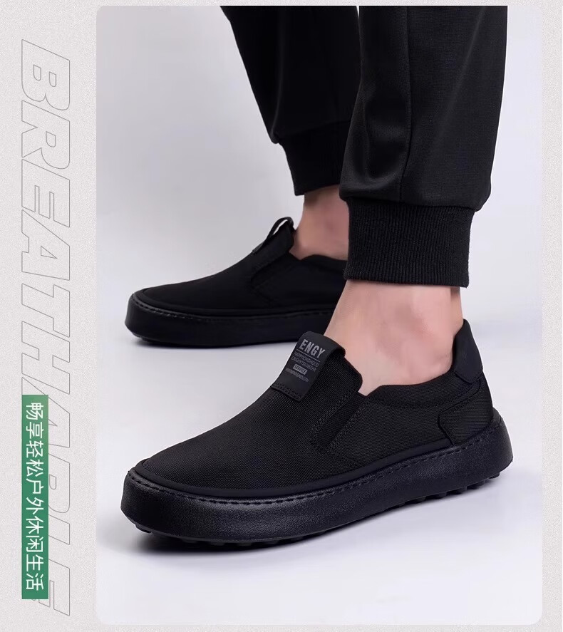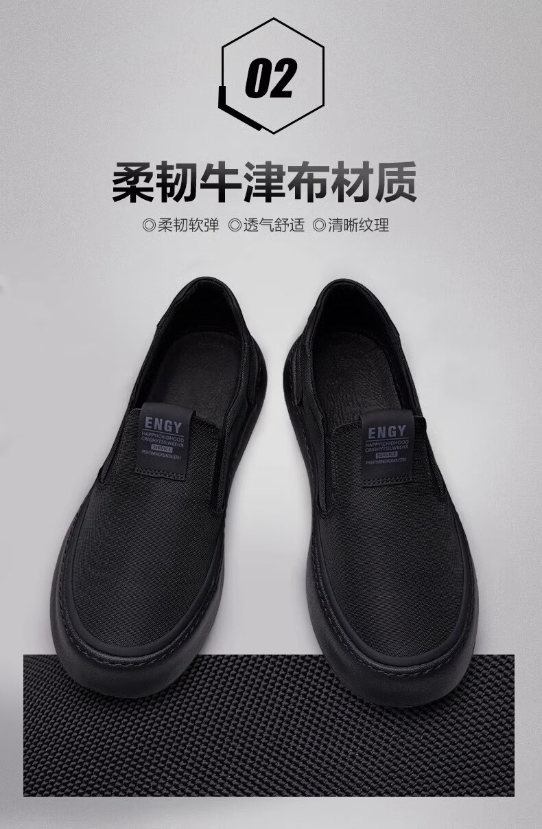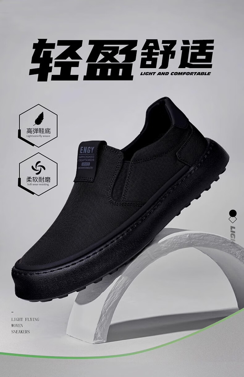 LZXB品牌断码清仓轻奢男鞋板鞋休闲帆布鞋潮鞋一脚蹬男士老北京布鞋男 黑色莱卡布面-【高端男鞋】 42