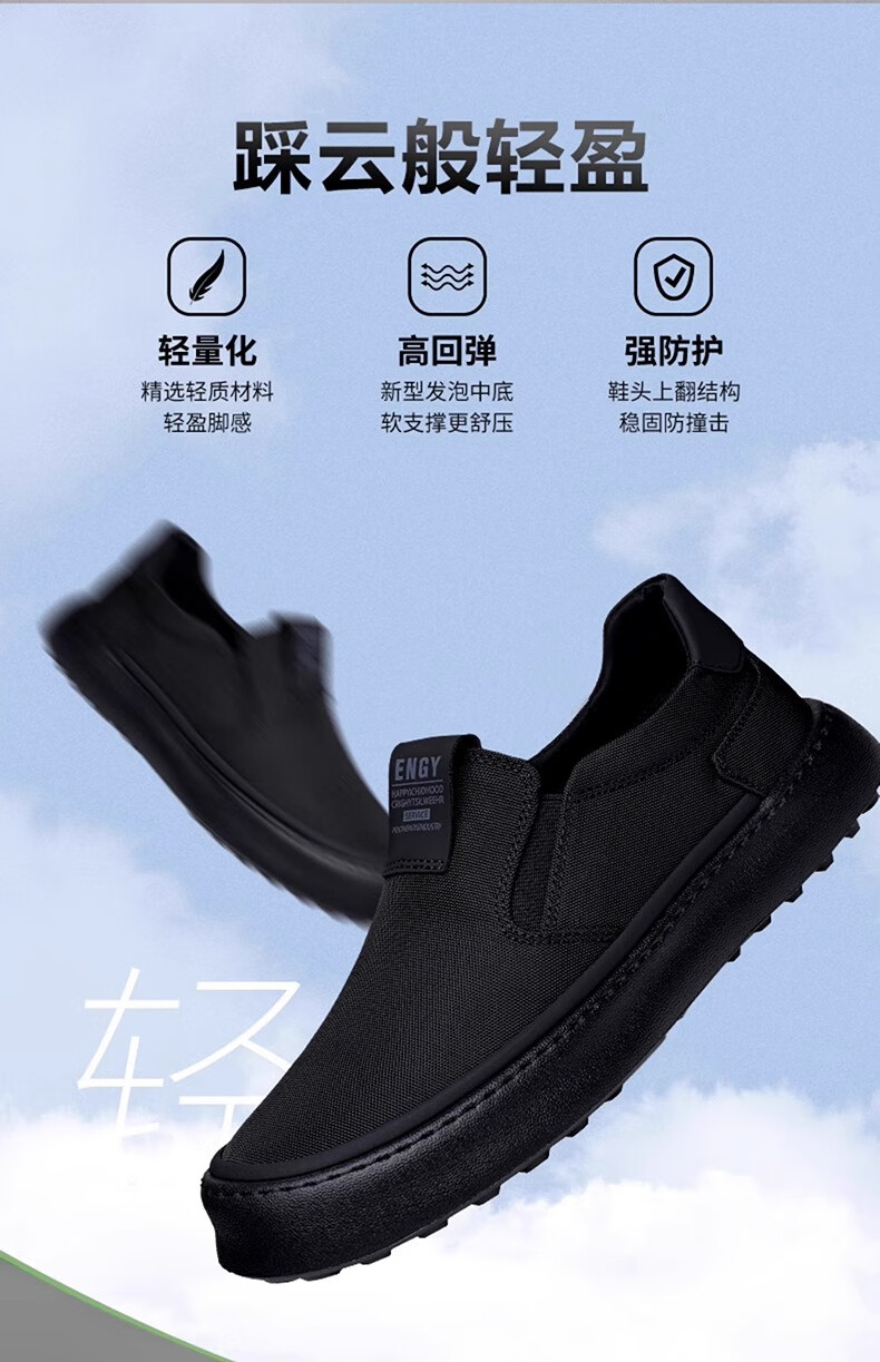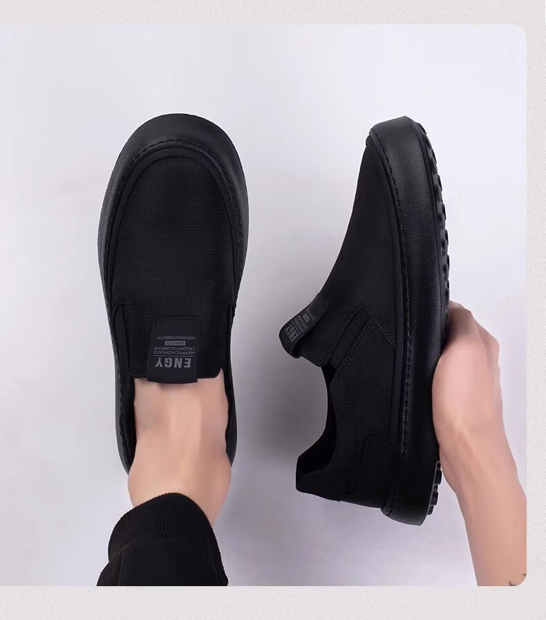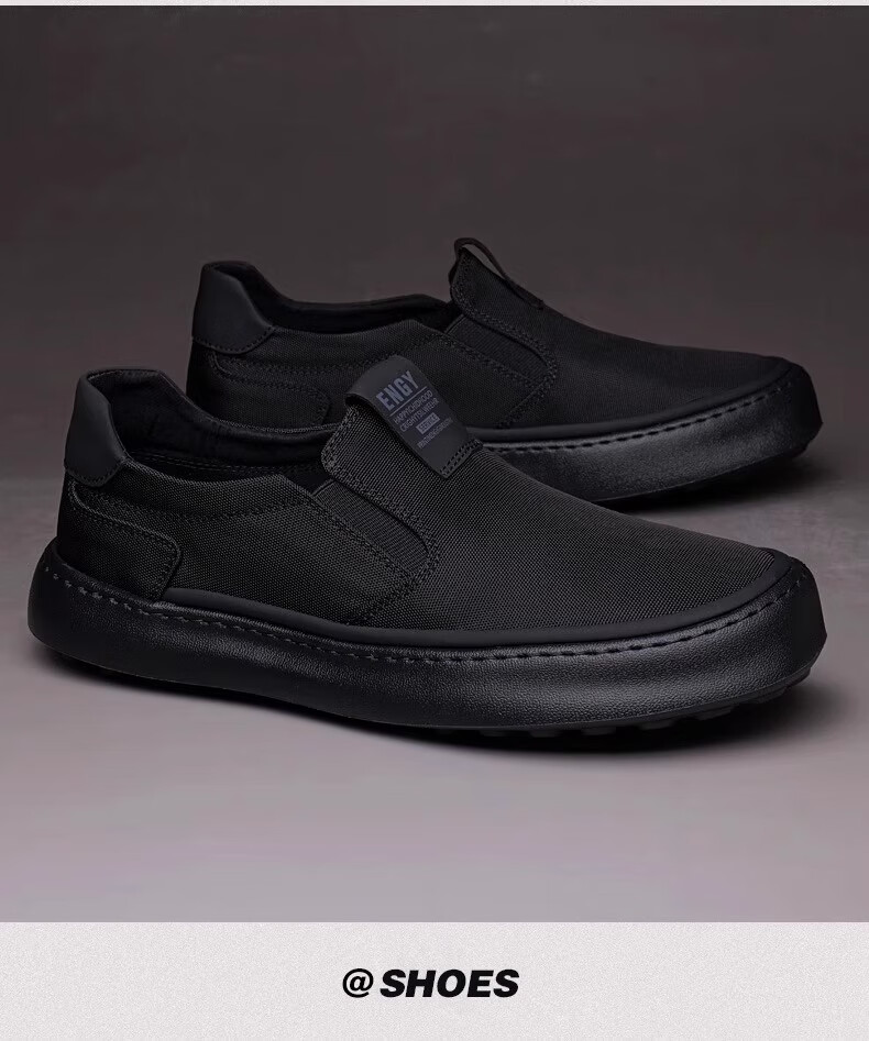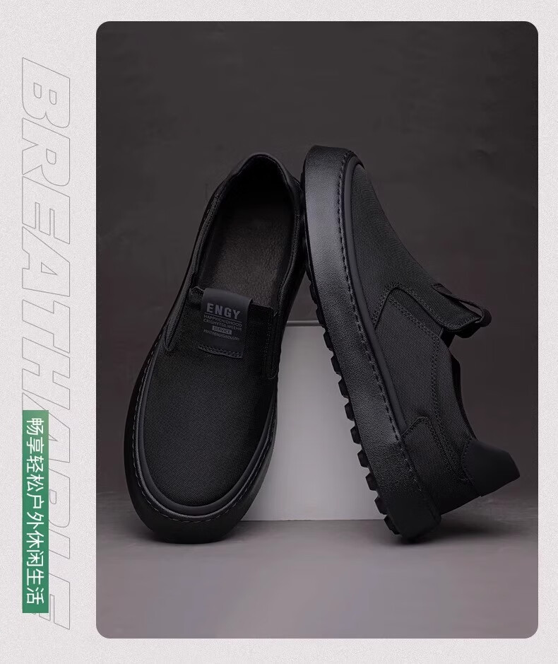 LZXB品牌断码清仓轻奢男鞋板鞋休闲帆布鞋潮鞋一脚蹬男士老北京布鞋男 黑色莱卡布面-【高端男鞋】 42
