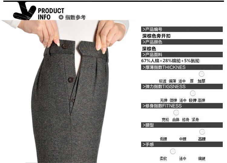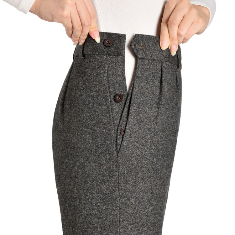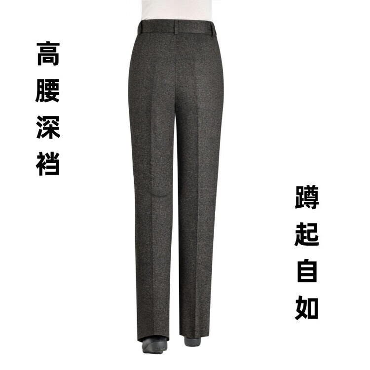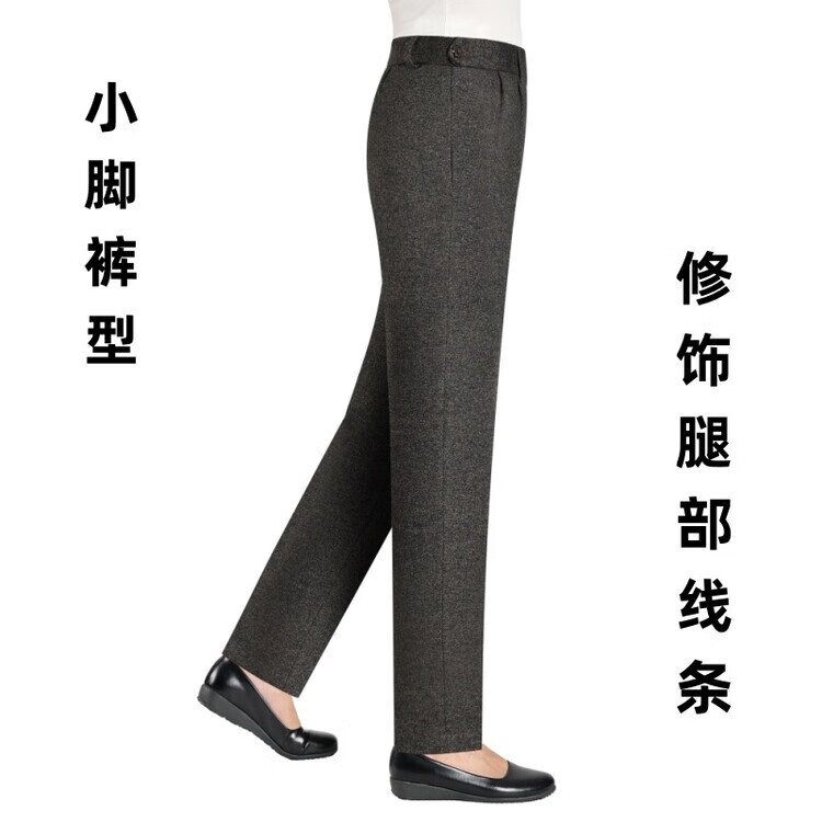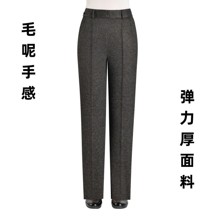 伊玟格格秋冬款旁开扣女裤弹力妈妈锥形裤高腰中年女西裤休闲百搭毛呢长裤 深棕色 旁开扣秋冬款 5XL 2尺9腰围 35码 160斤以下穿