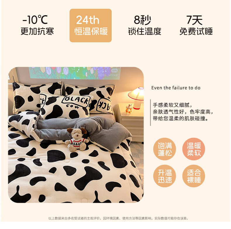 高睿冬季加绒加厚保暖被2025新款牛奶绒羊羔绒单人被子加厚棉被被芯 黑白奶牛【恒温+锁暖】 加厚冬被:150*200cm约5斤