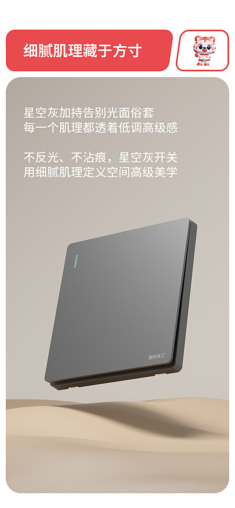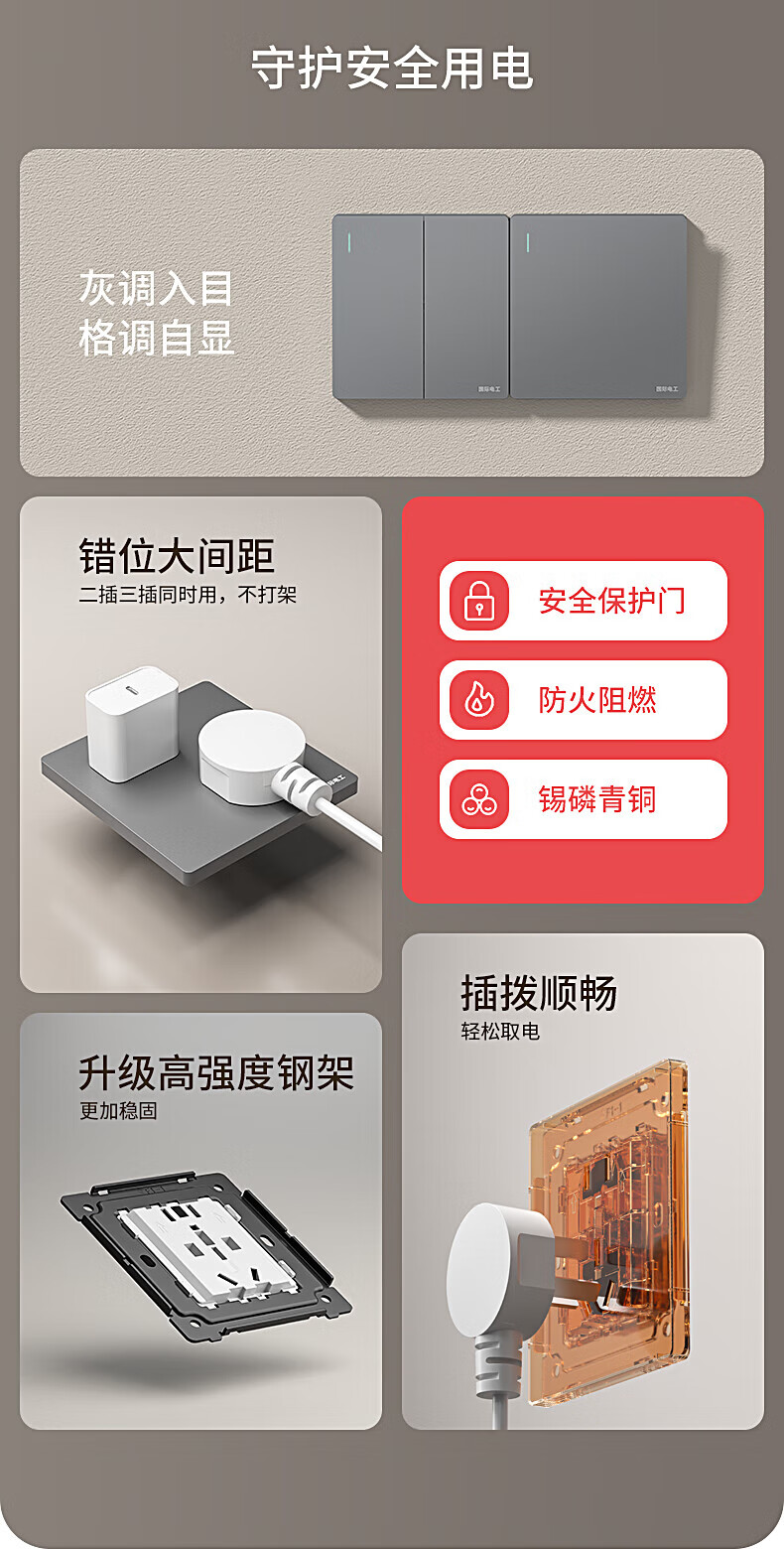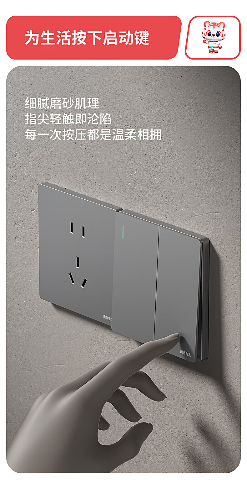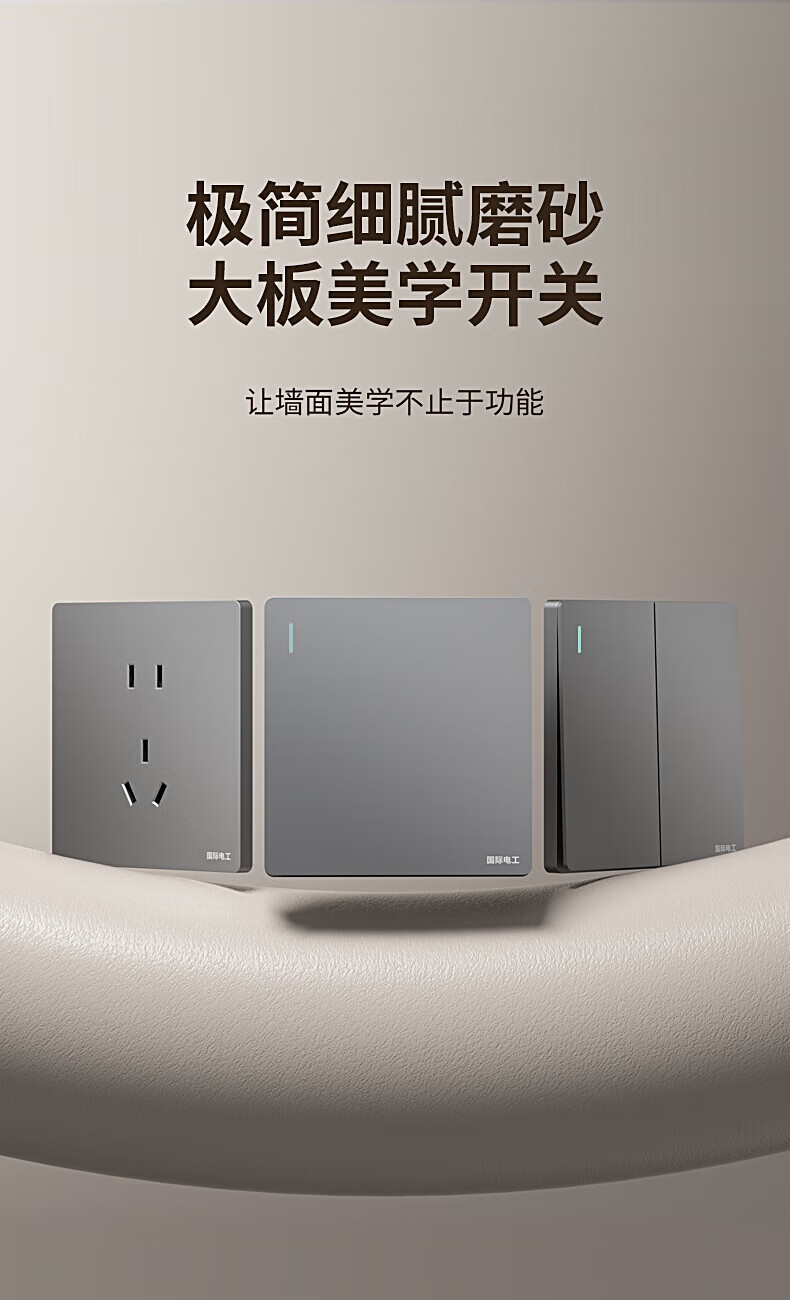国际电工(FDD)86型暗装开关插座全屋套装面板家用墙壁灰色一开五孔USB双控插座 五孔10只装(优先发货)