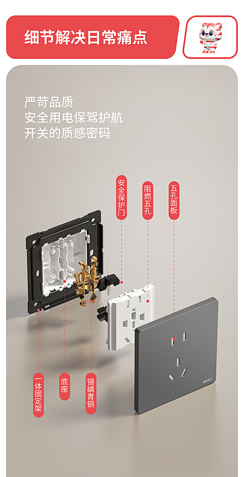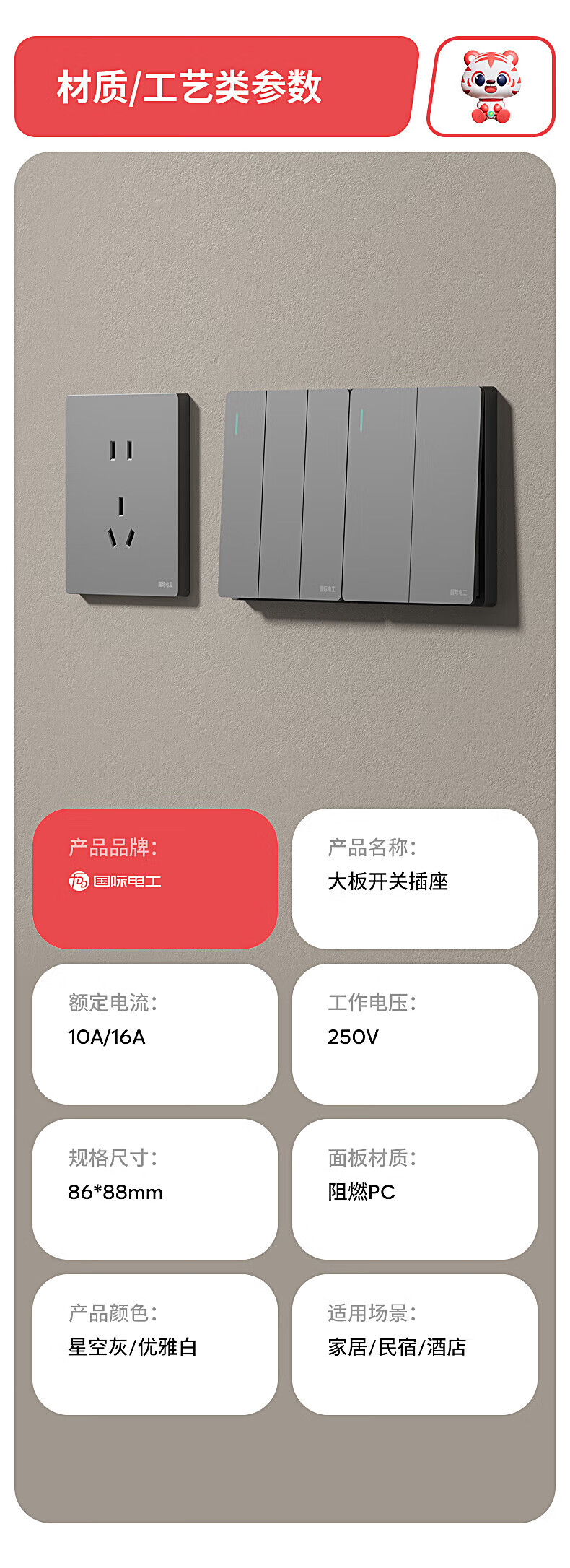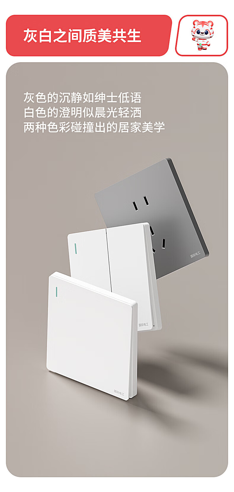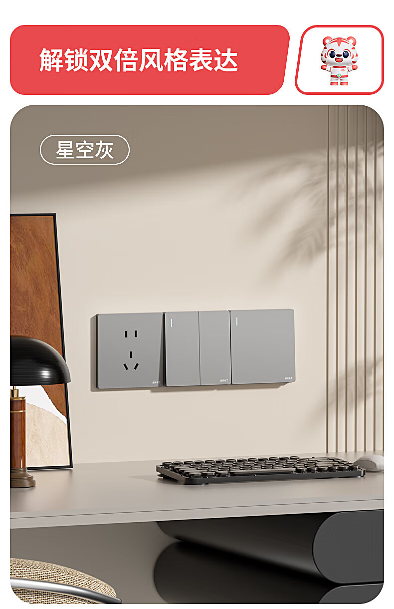 国际电工(FDD)86型暗装开关插座全屋套装面板家用墙壁灰色一开五孔USB双控插座 五孔10只装(优先发货)