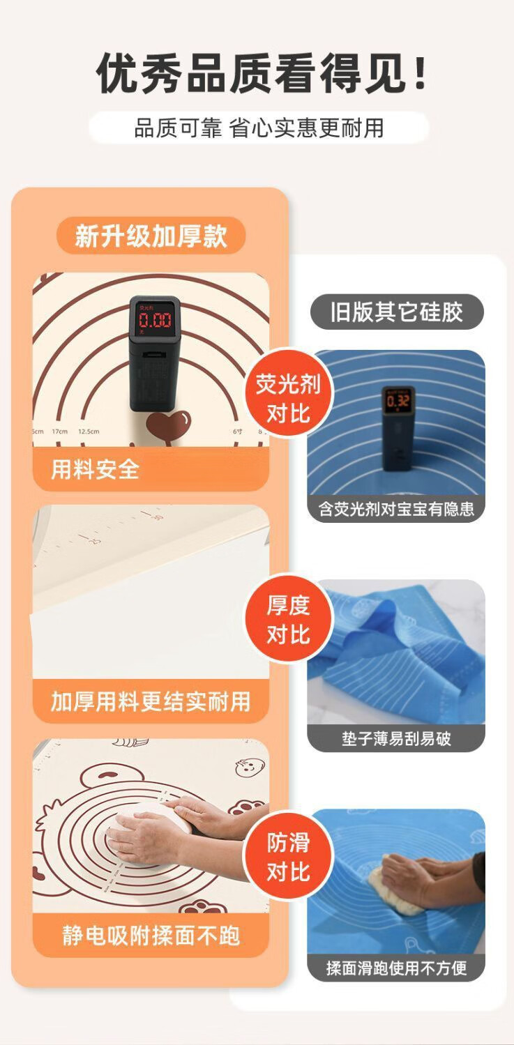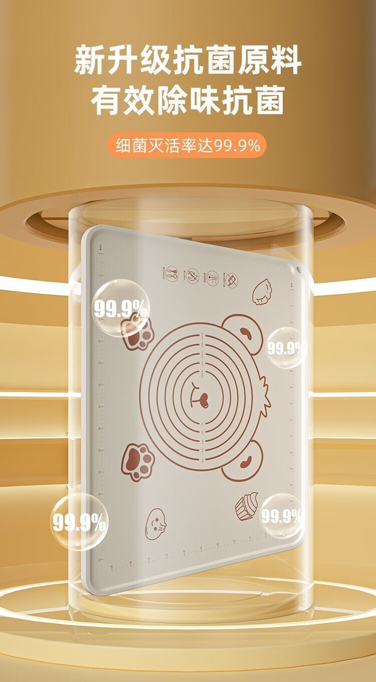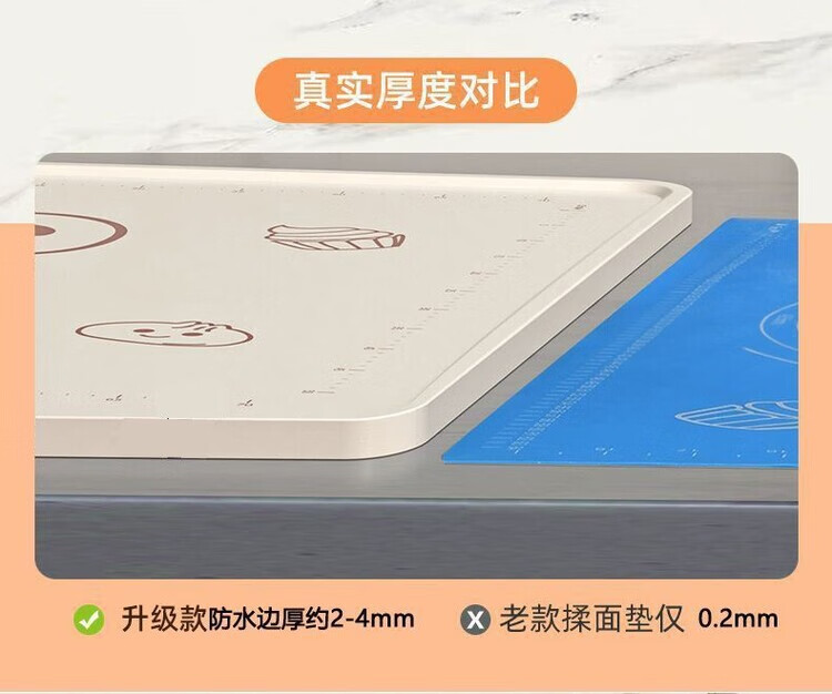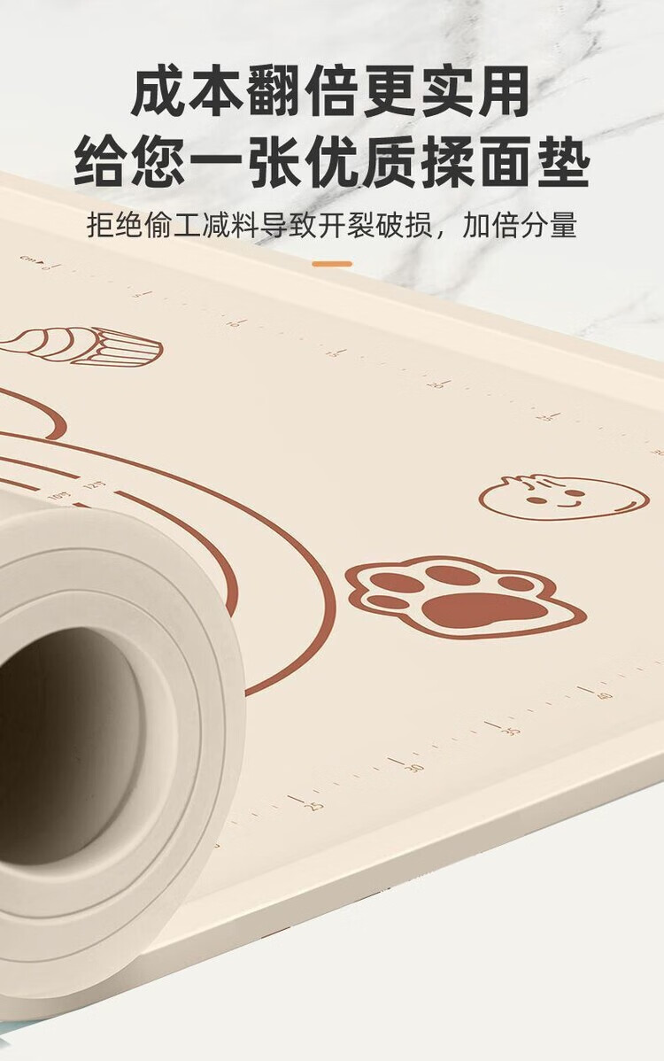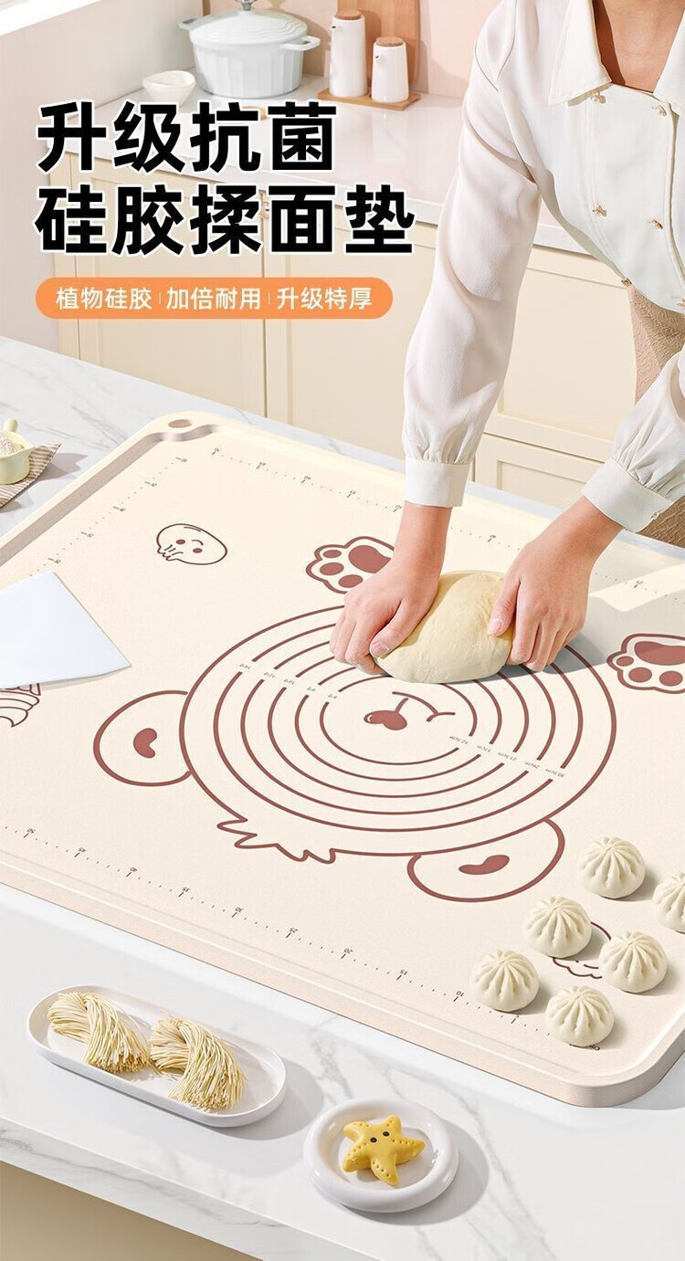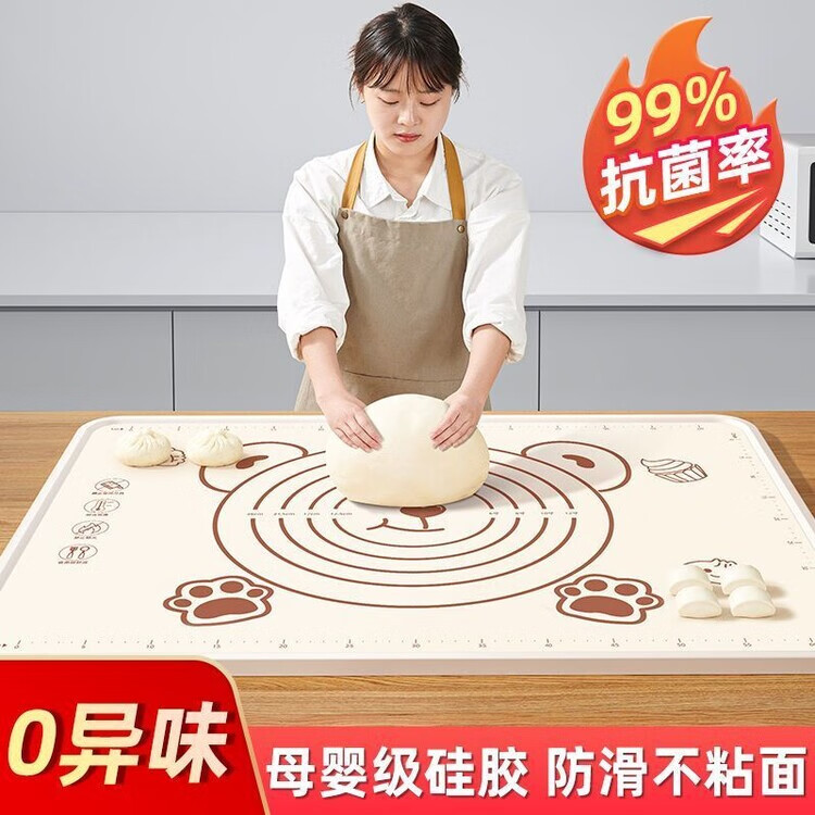 喆系食品级硅胶垫面板加厚揉面垫子大号和面垫案板抗菌防滑烘焙擀面垫 抗菌硅胶【特厚4mm】防滑不沾面 【60*40cm】配面刀+擀面杖+刷