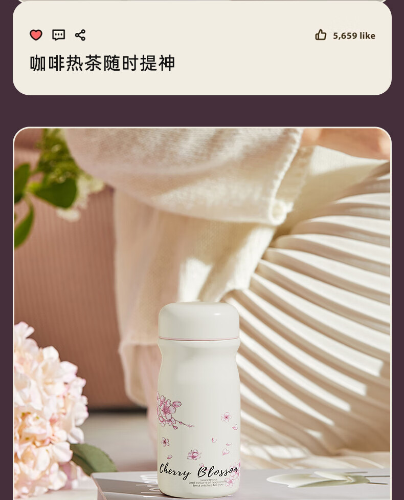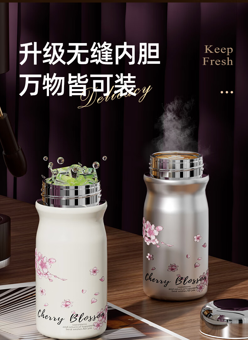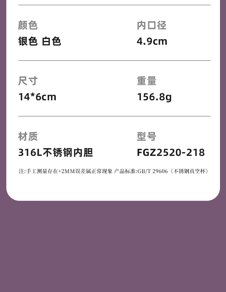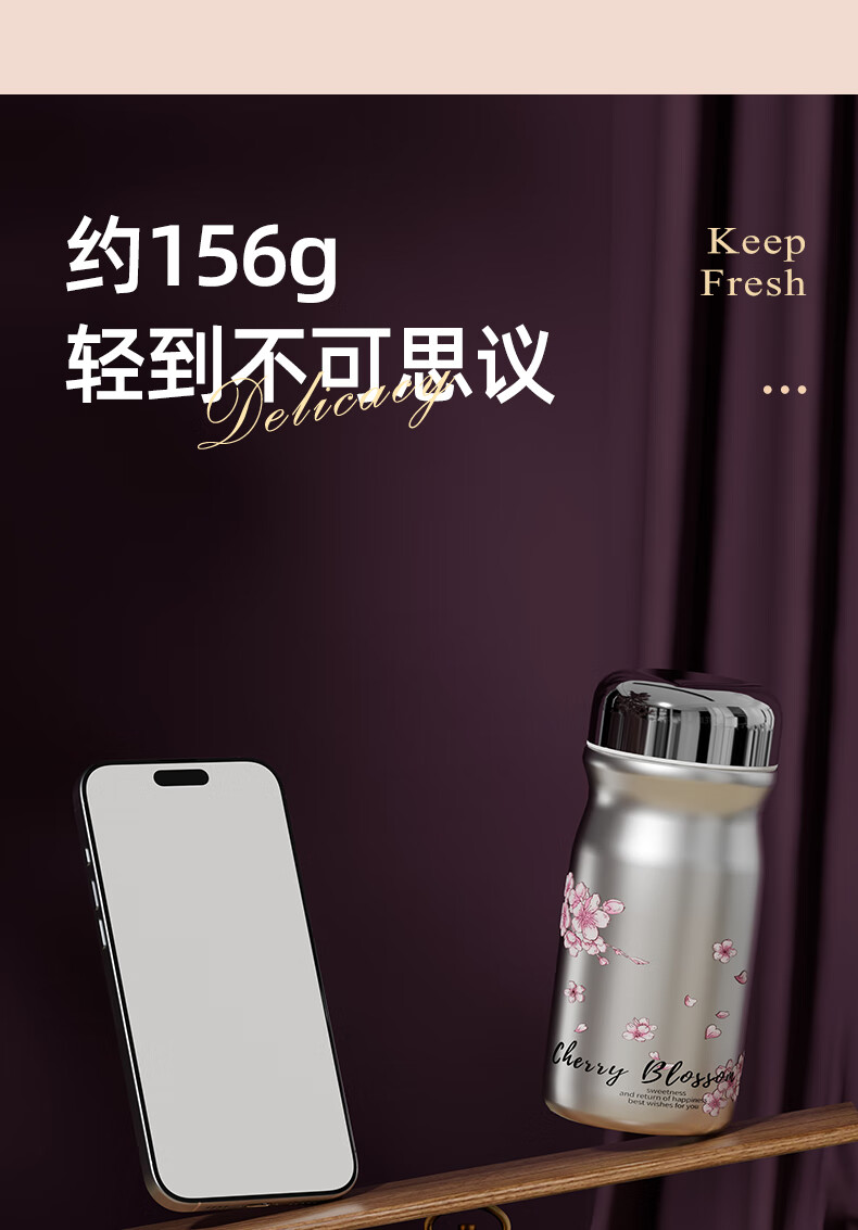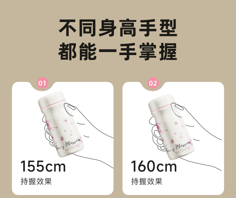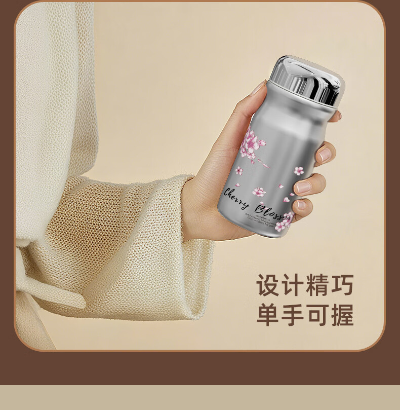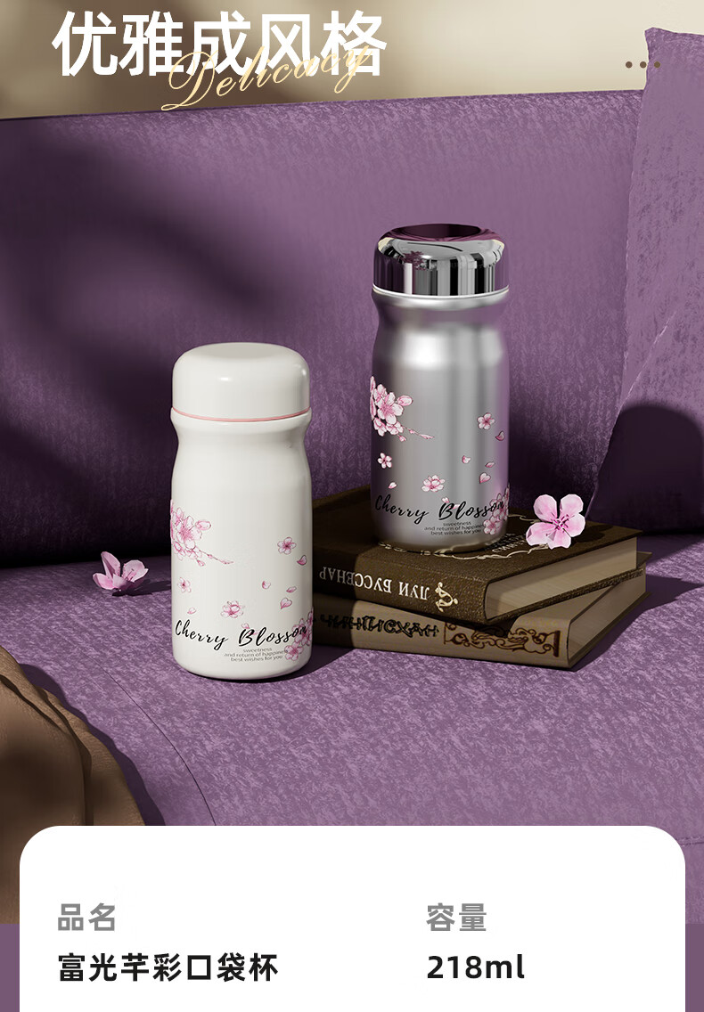 富光口袋杯保温杯女生高颜值水杯2025新款小巧便携不锈钢随行迷你杯子 218ml樱雪白 +316L无缝内胆