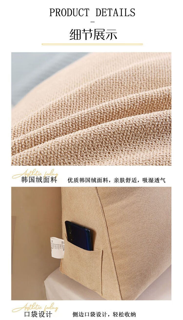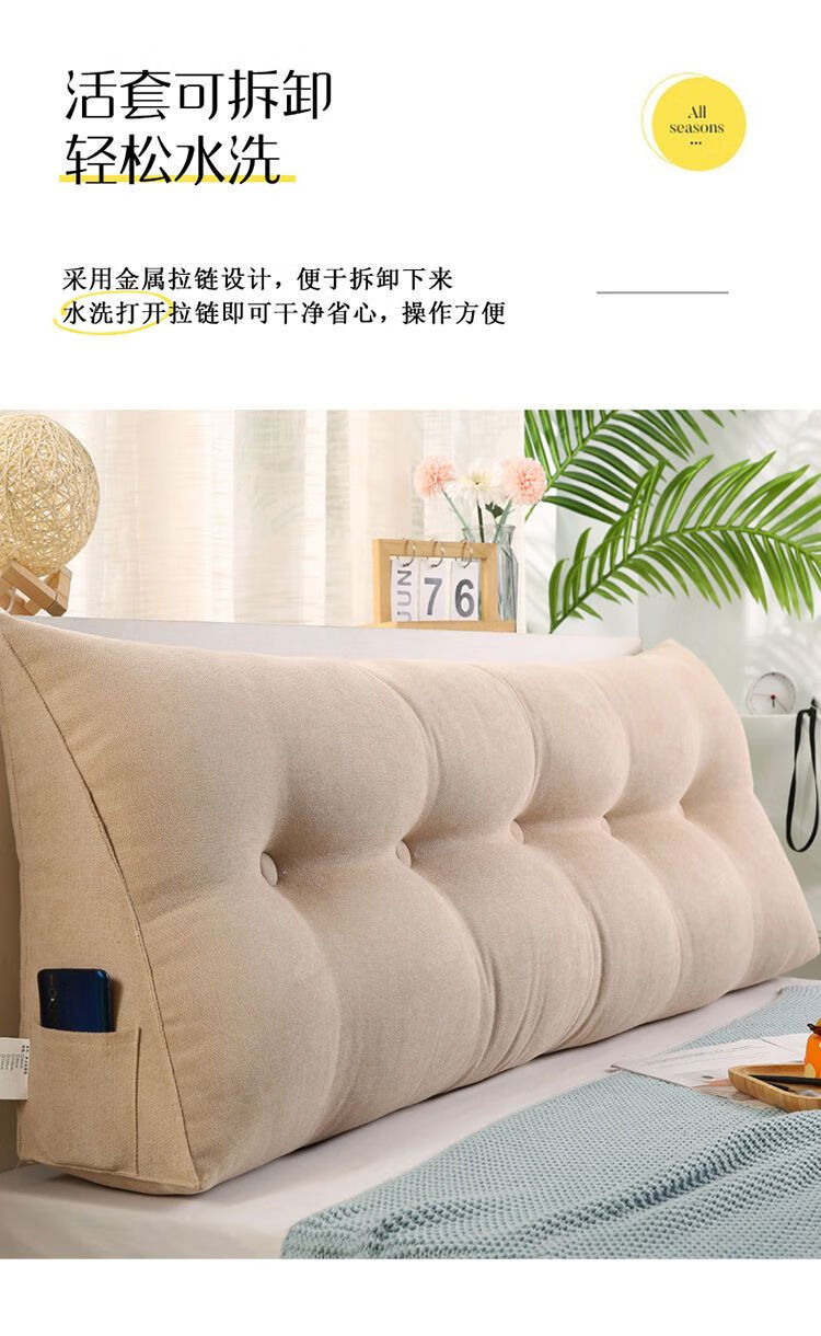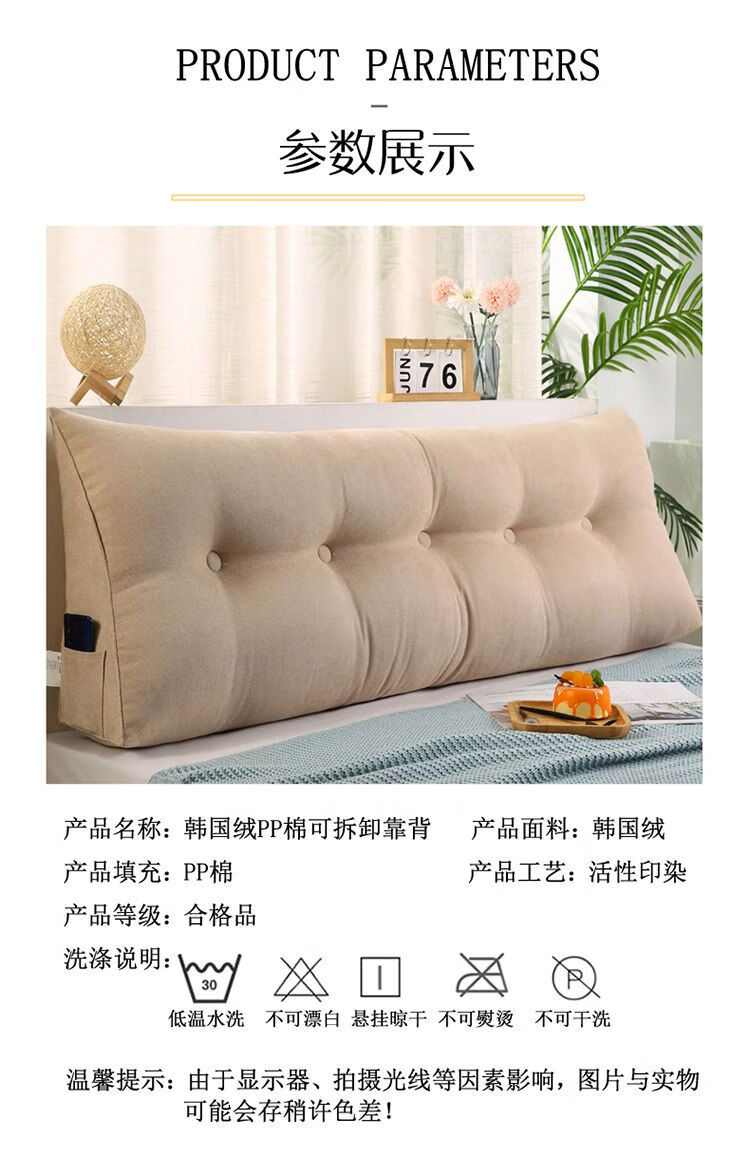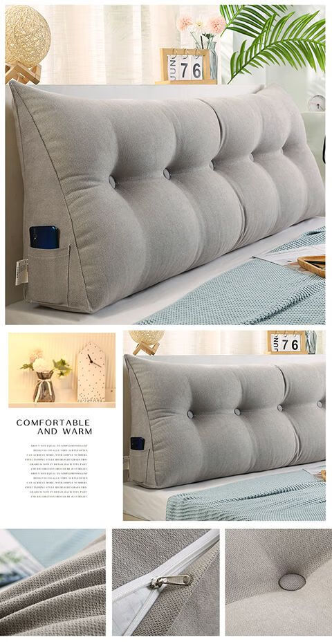 欣慕雅床头靠垫榻榻米靠背床头板软包靠背垫三角护腰靠枕可拆洗床上抱枕 银石灰-韩国绒(套加芯可拆洗) 长150厚20高50cm适合1米5床