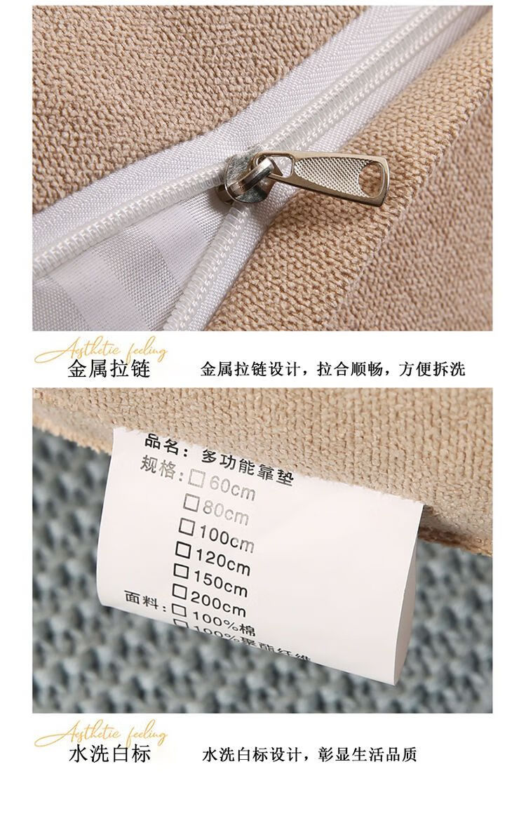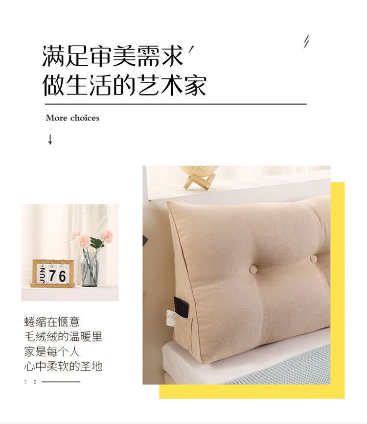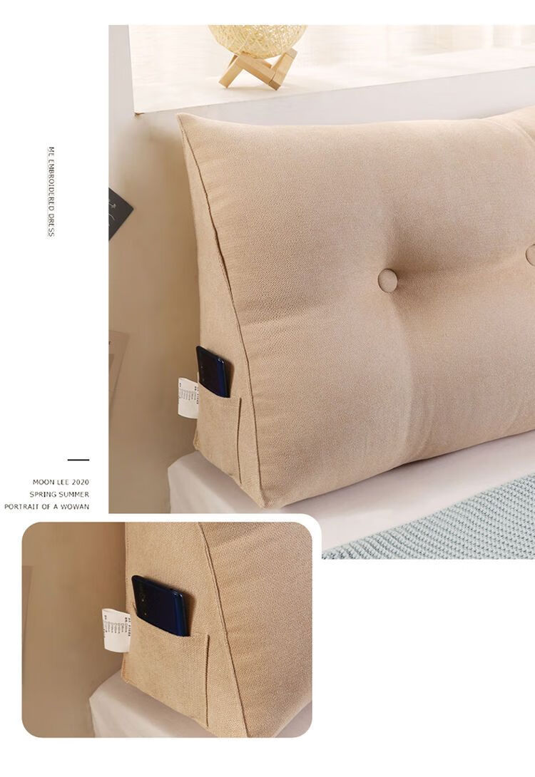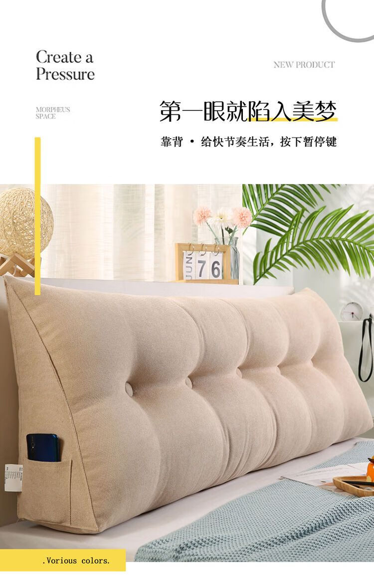 欣慕雅床头靠垫榻榻米靠背床头板软包靠背垫三角护腰靠枕可拆洗床上抱枕 银石灰-韩国绒(套加芯可拆洗) 长150厚20高50cm适合1米5床