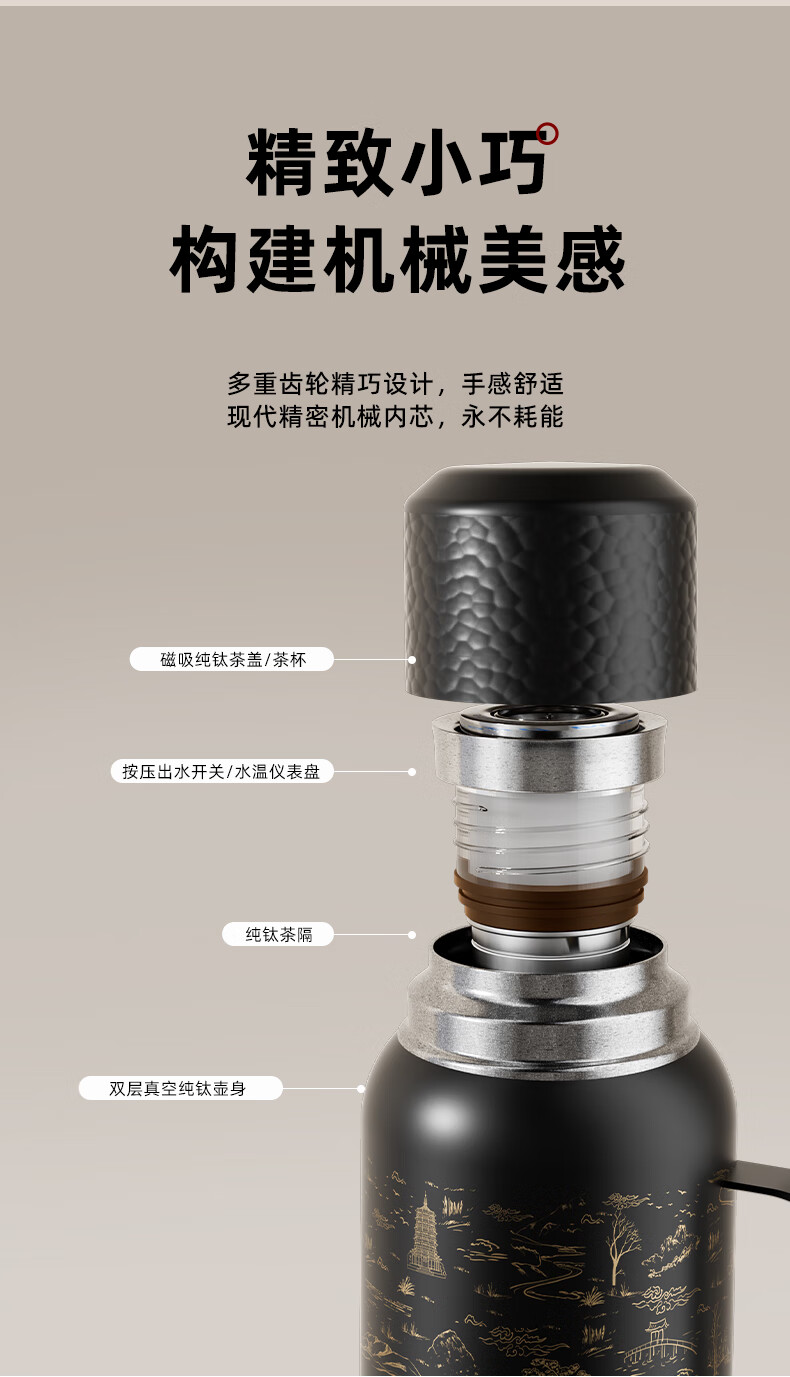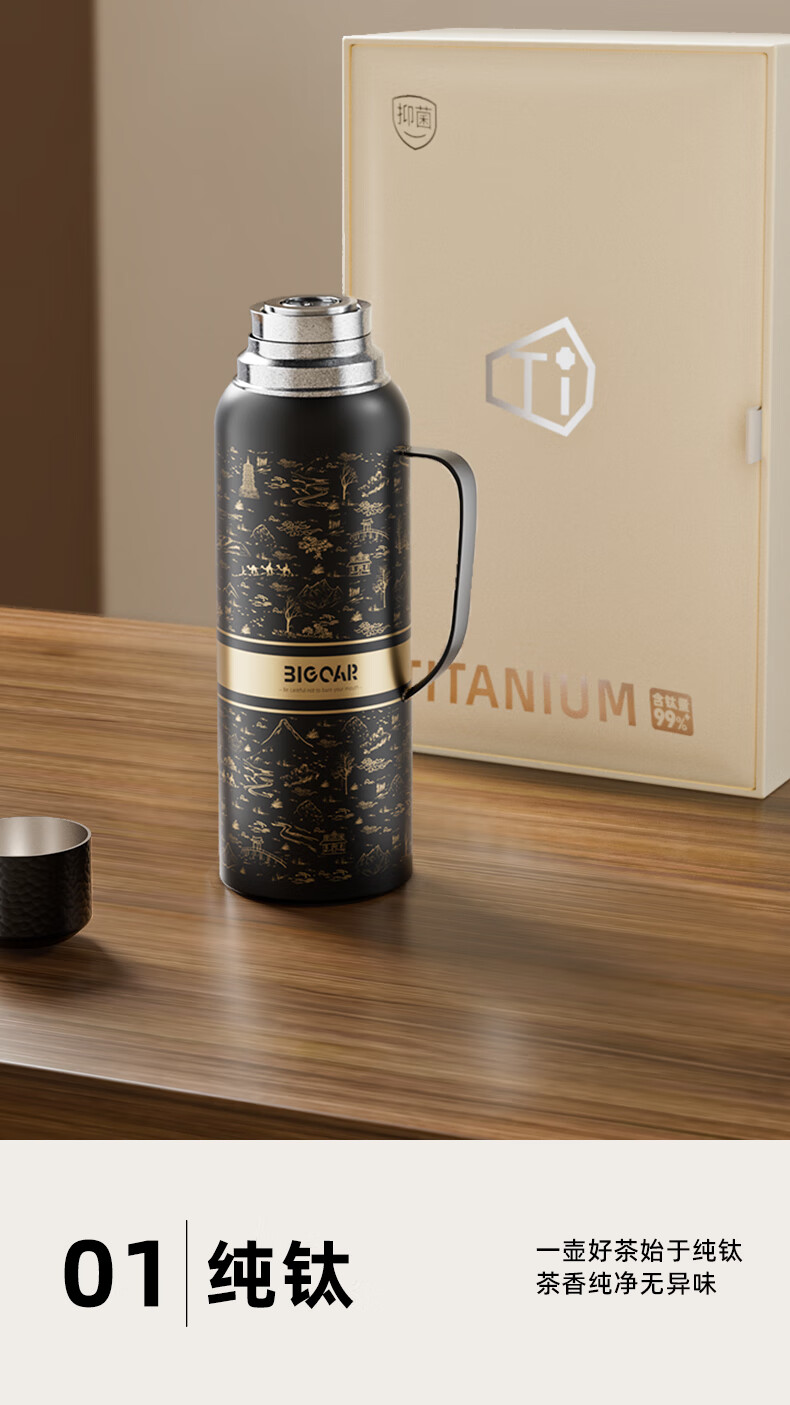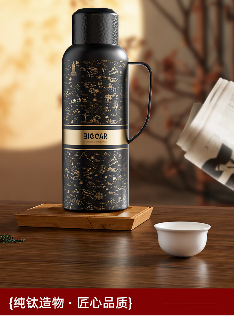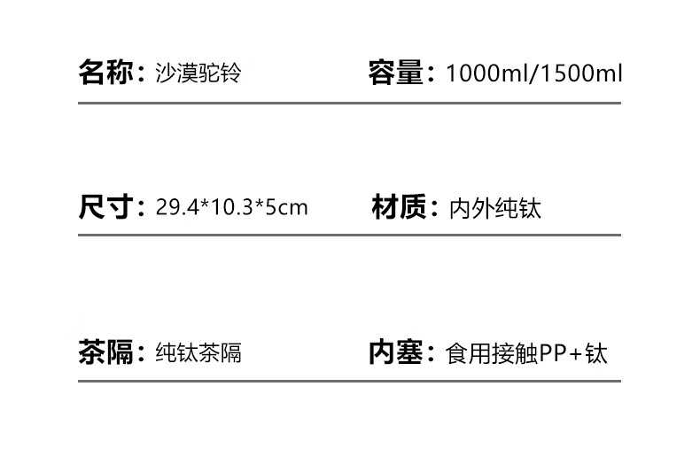 大卡内外纯钛大容量保温壶茶水分离户外闷茶传家壶男女实用生日礼物 沙漠骆驼1500ml【内外纯钛+磁吸杯盖】