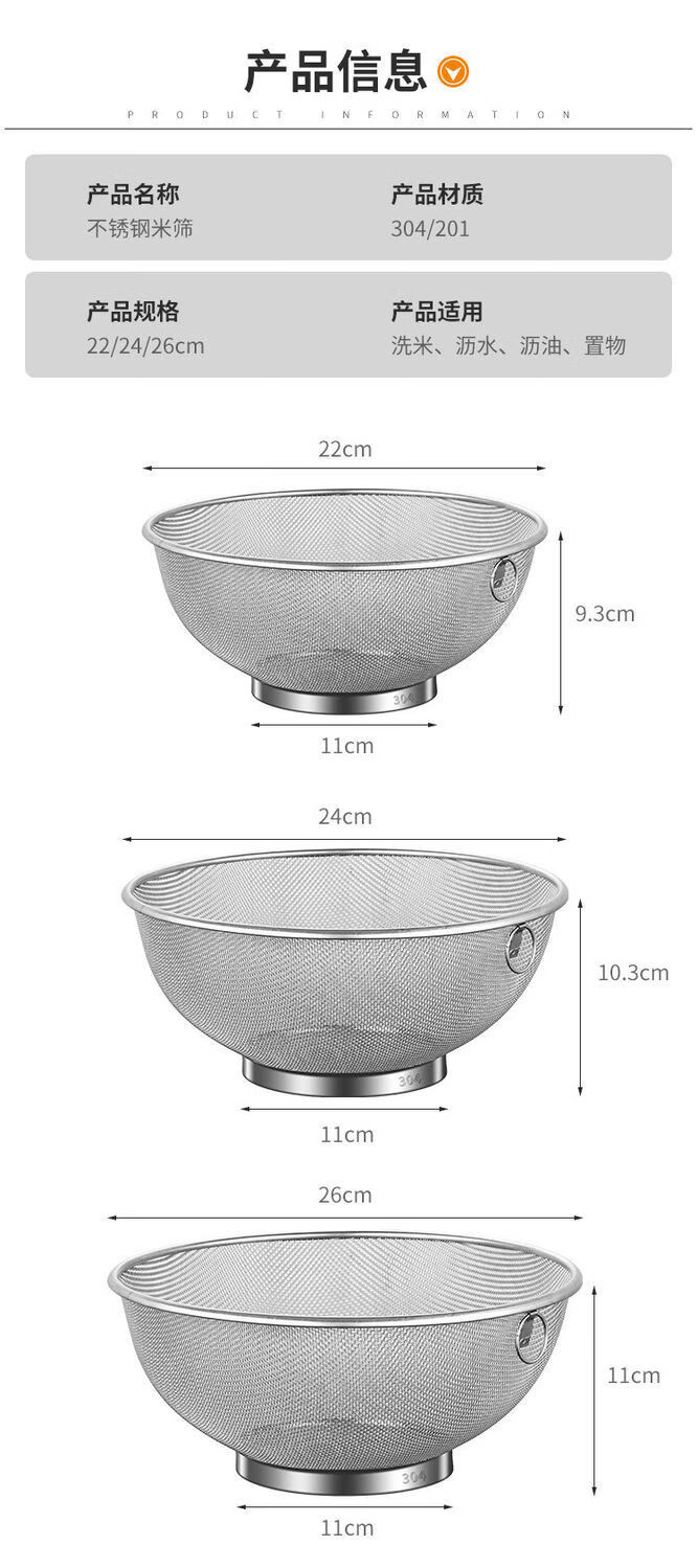 GIOIO不锈钢沥水盆食品级新款过滤网家用厨房沥水篮洗菜滤菜篮子 201不锈钢食品级 6.9cm(单个无送)