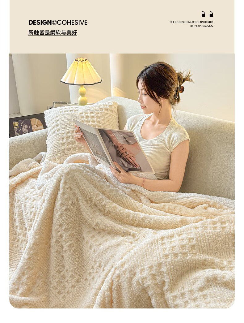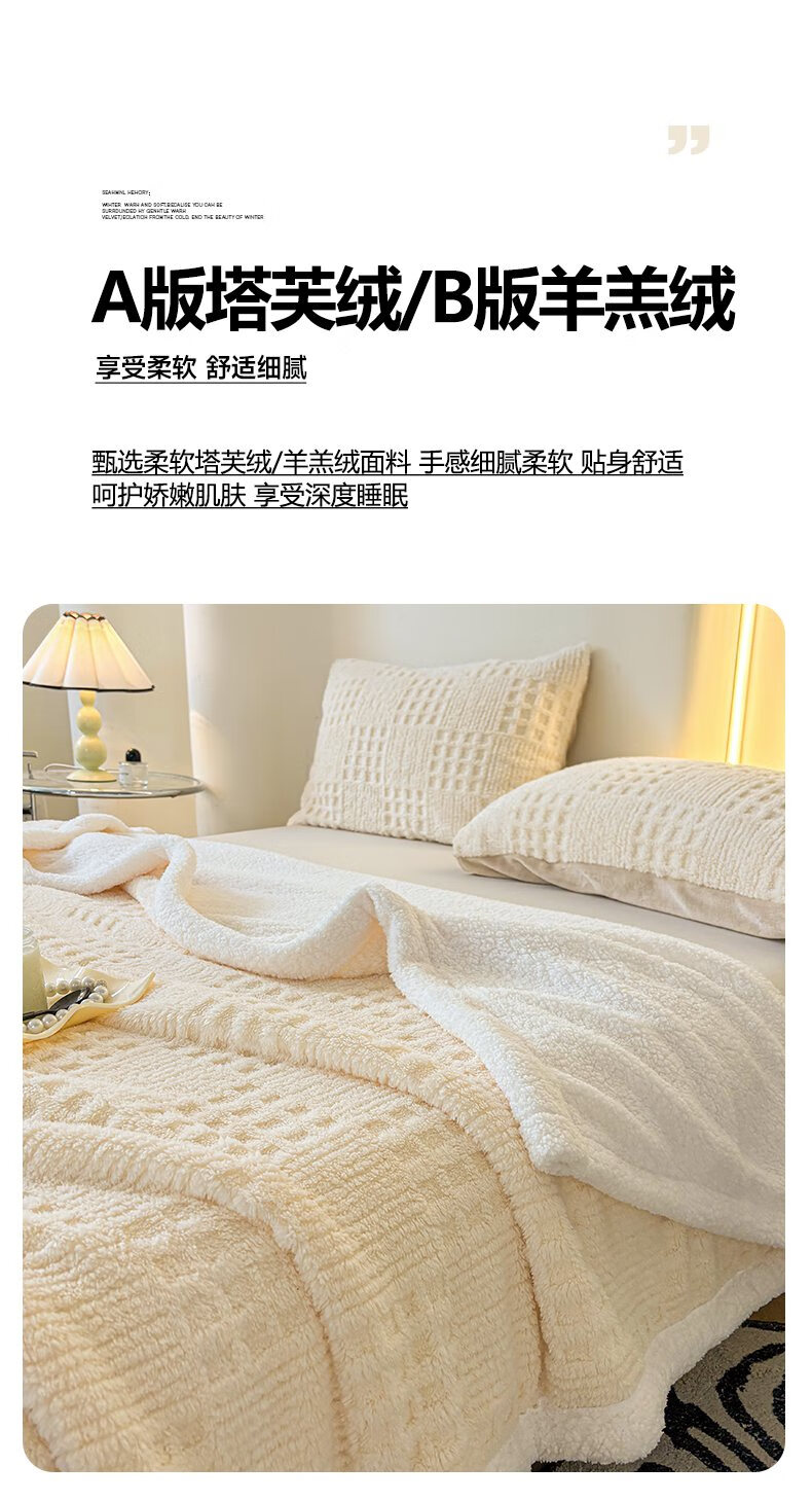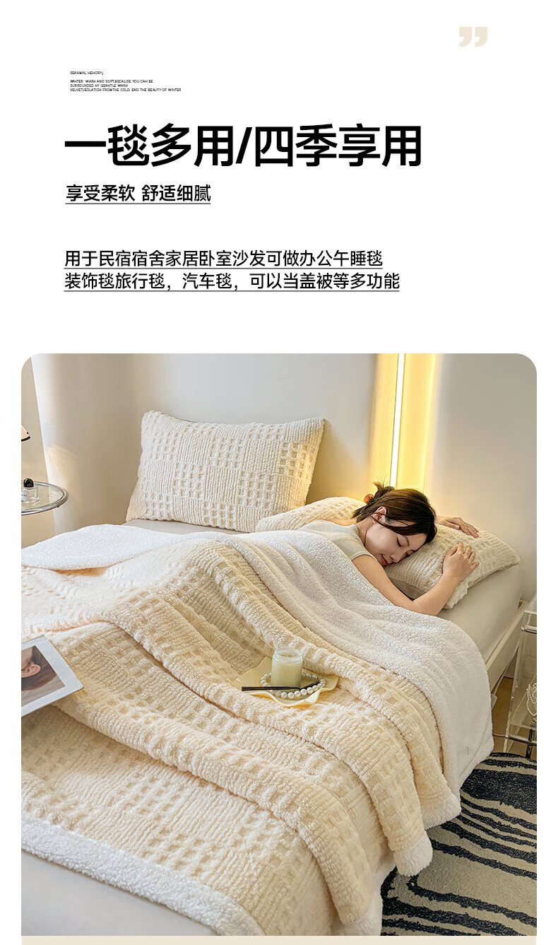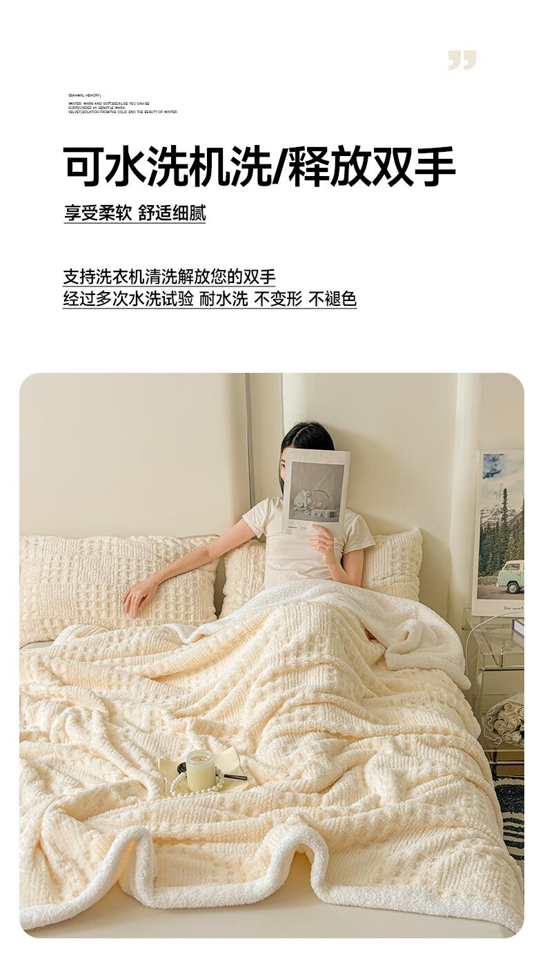 猫人(MiiOW)冬季加厚羊羔绒毛毯2025新款沙发盖毯办公室午睡披肩珊瑚绒小毯子 奶霜格【羊羔绒+塔芙绒 蓄热保暖不易掉毛】 200×230cm【双人毯】