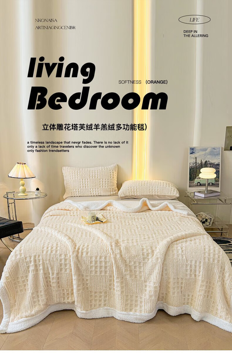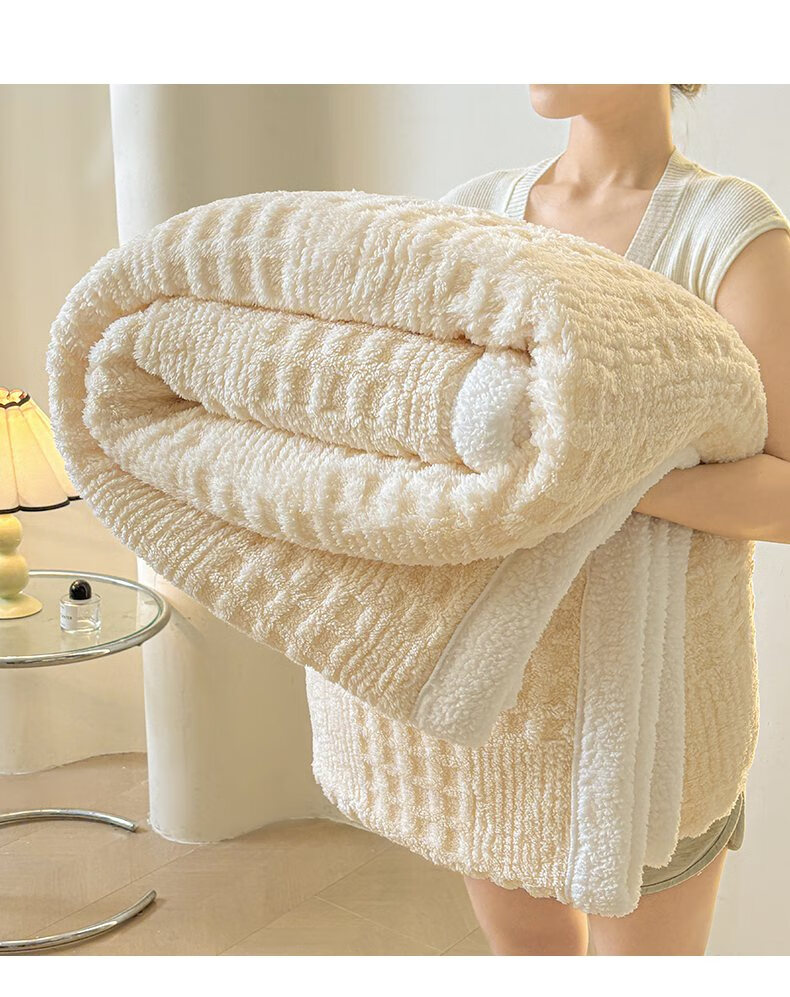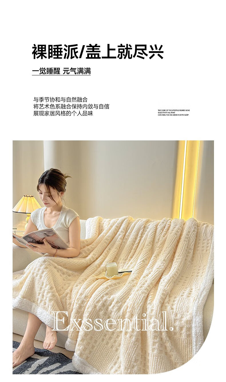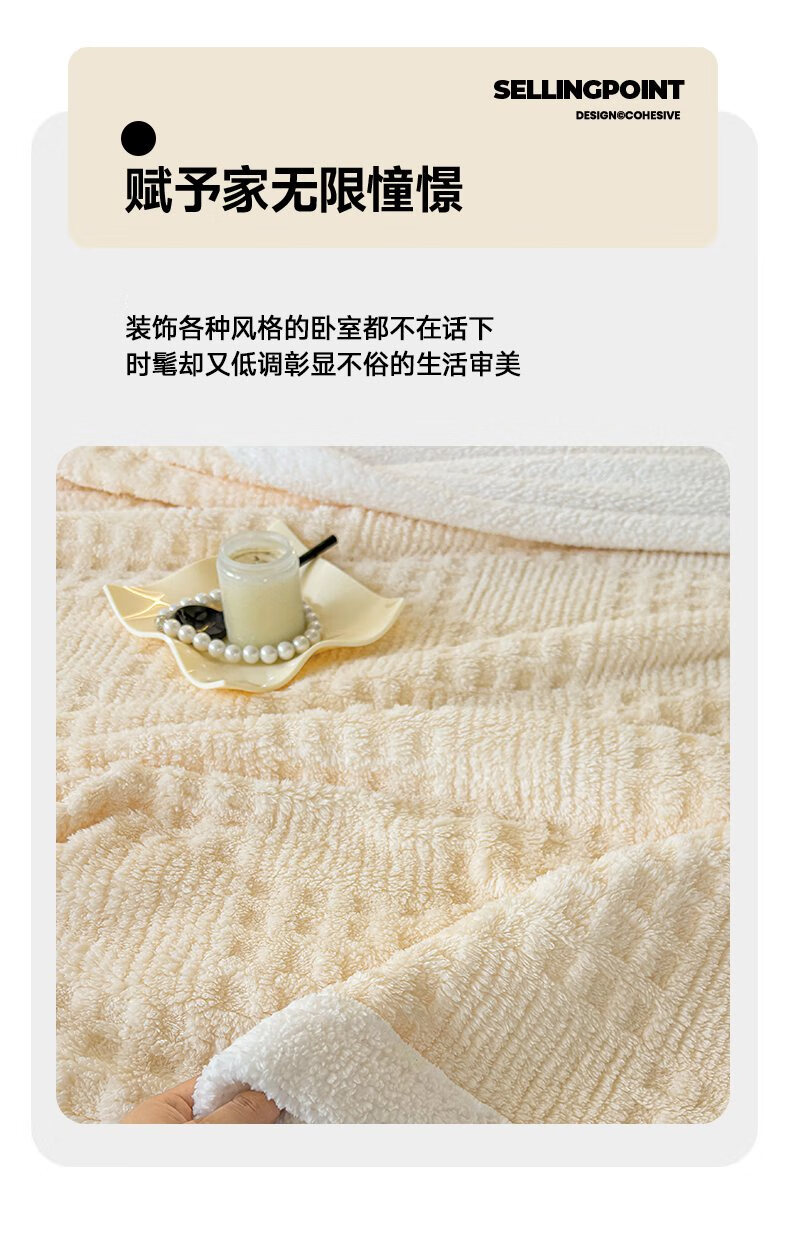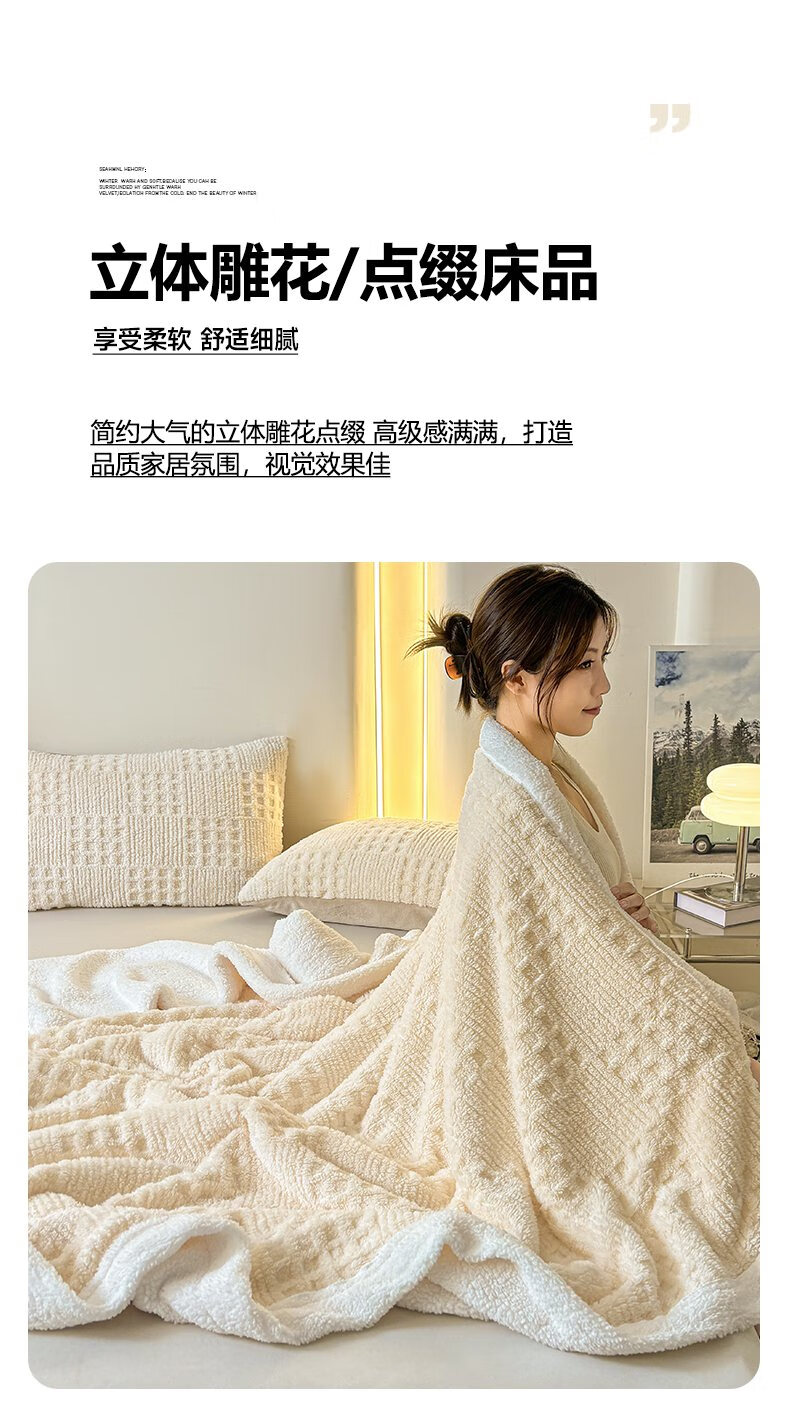 猫人(MiiOW)冬季加厚羊羔绒毛毯2025新款沙发盖毯办公室午睡披肩珊瑚绒小毯子 奶霜格【羊羔绒+塔芙绒 蓄热保暖不易掉毛】 200×230cm【双人毯】