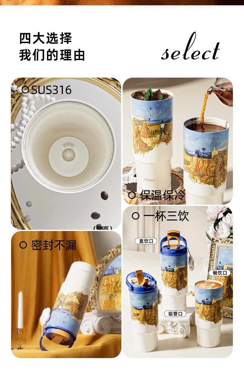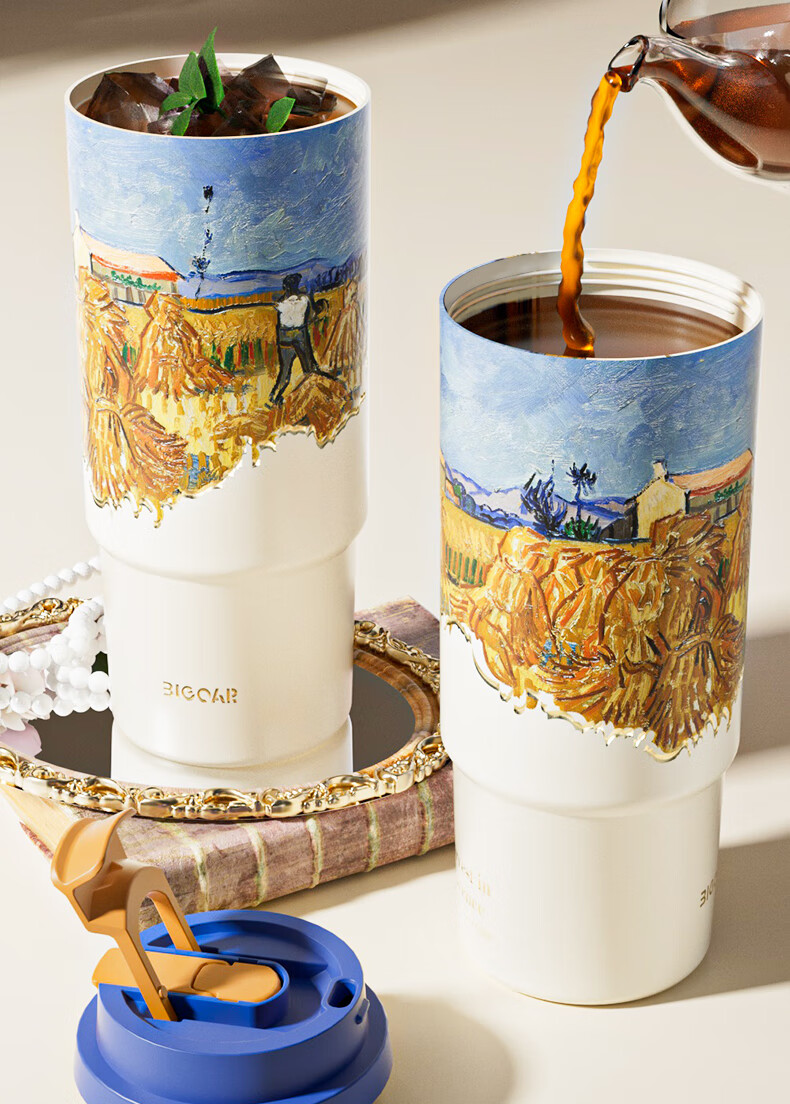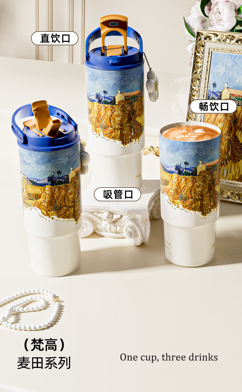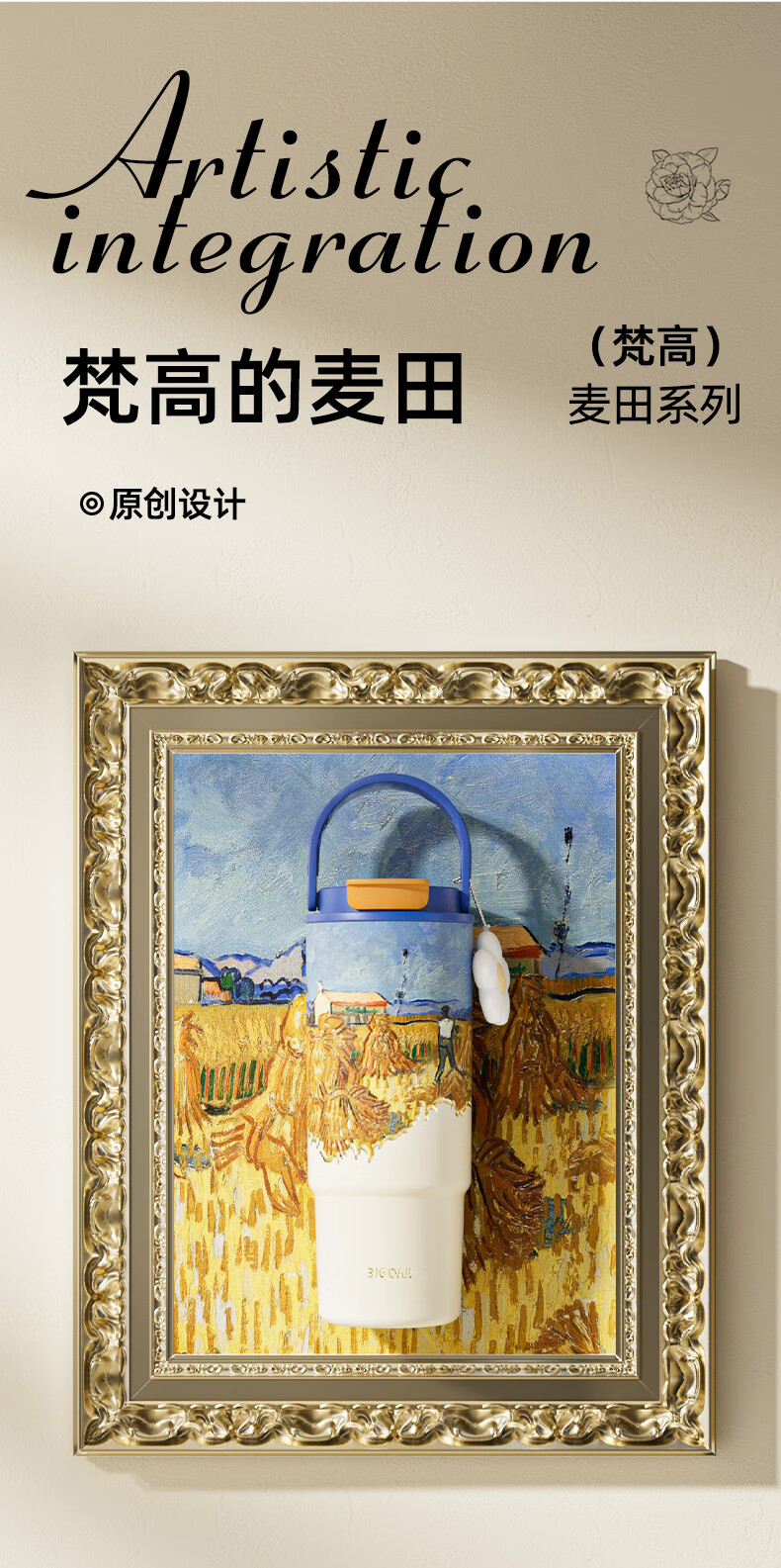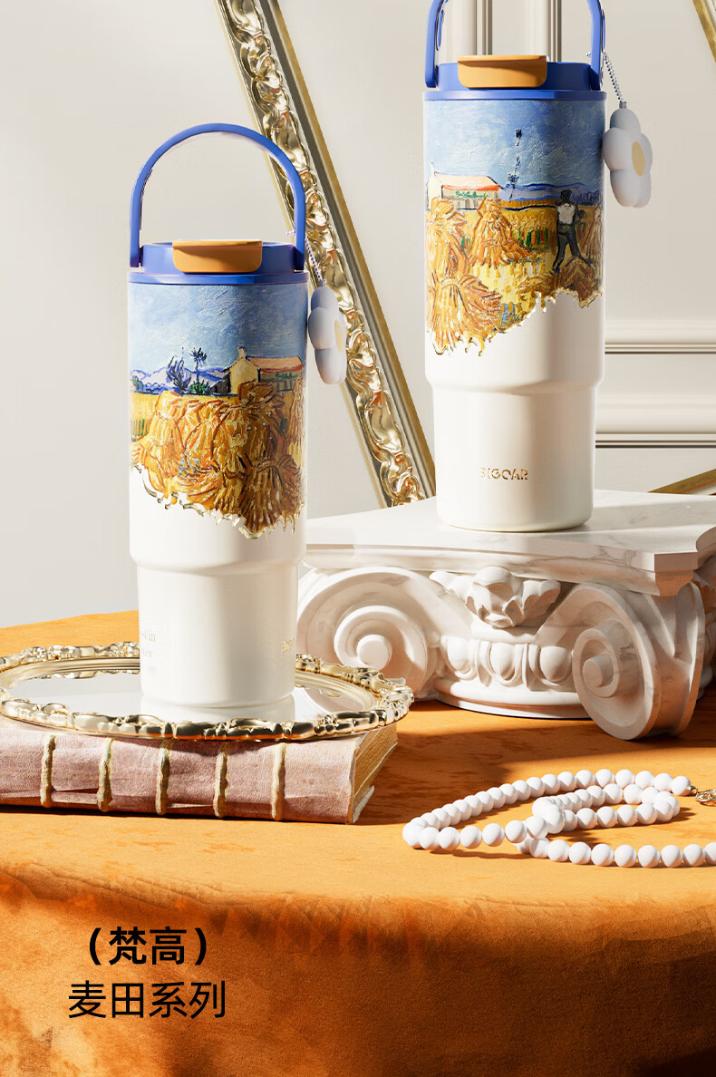 大卡梵高316不锈钢咖啡杯保温杯2025新款男生女生高颜值水杯生日礼物 奥威尔景观【陶瓷覆层+茶仓】880ml
