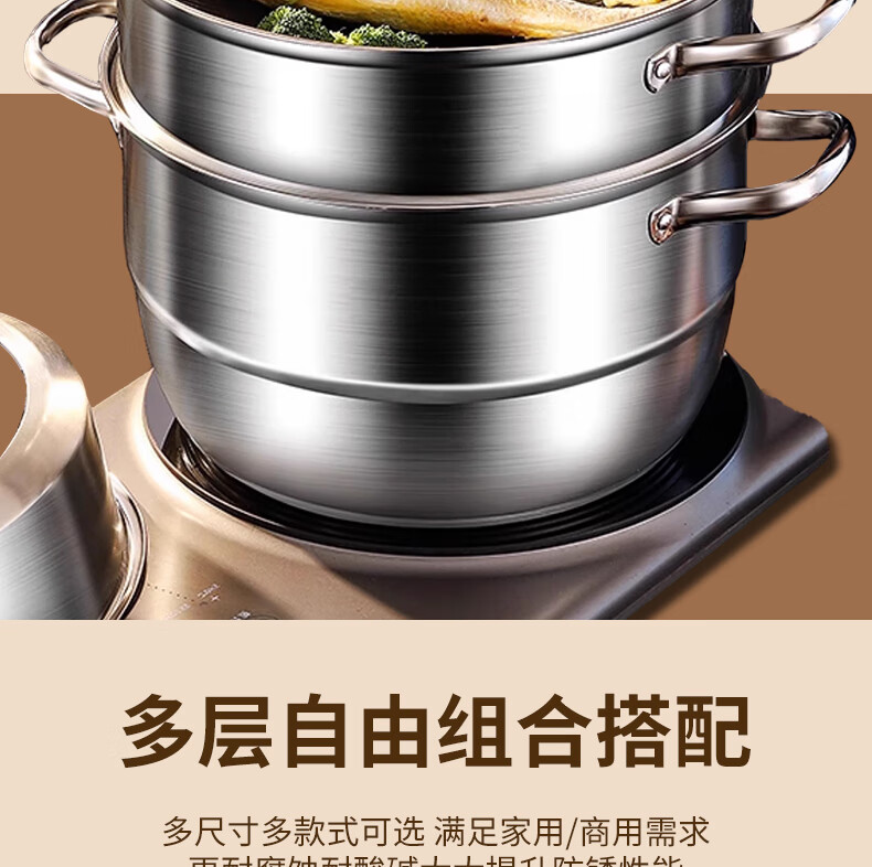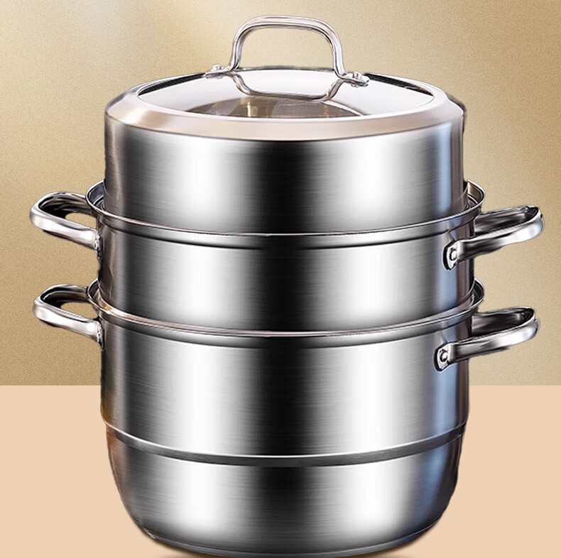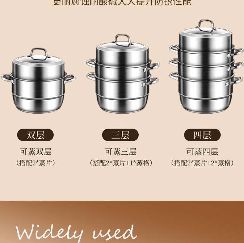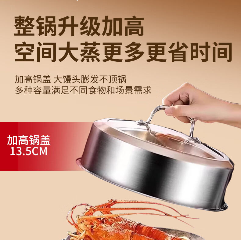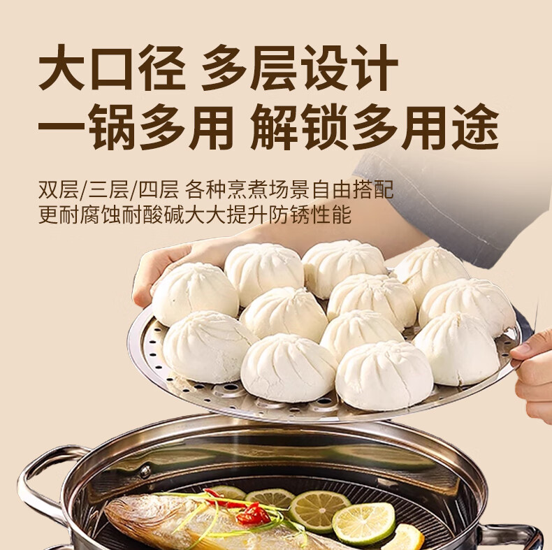 JXIEUM316L不锈钢食品级蒸锅蒸笼家用大容量三四层蒸煮焖燃气电磁炉 【316钢 加高加厚】 4层 32cm