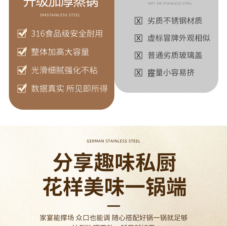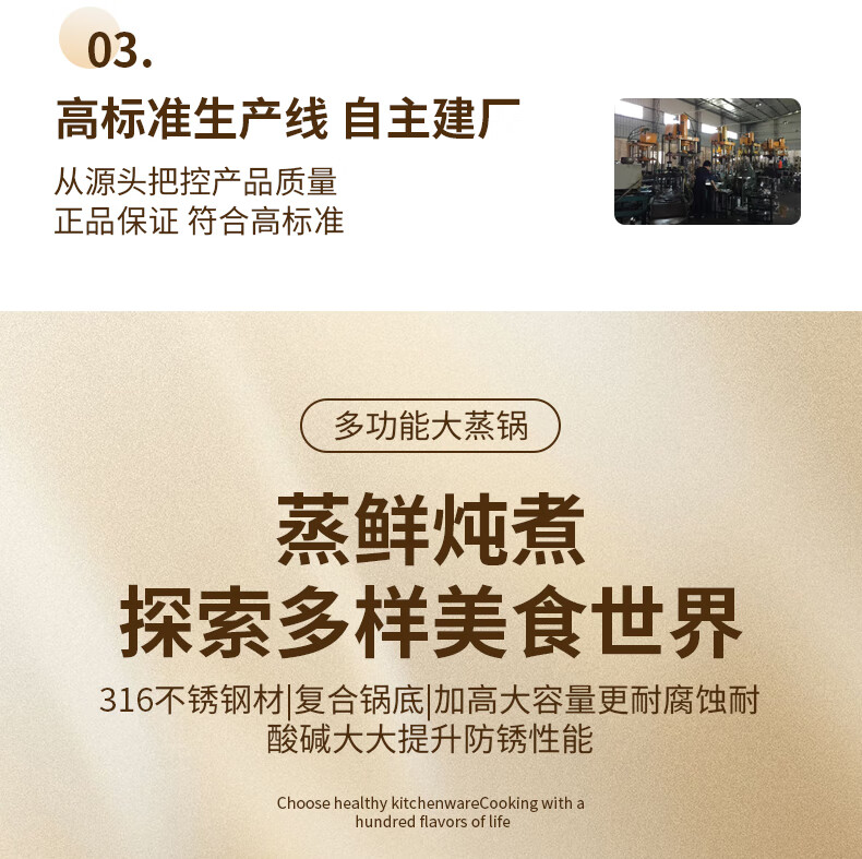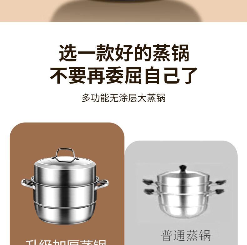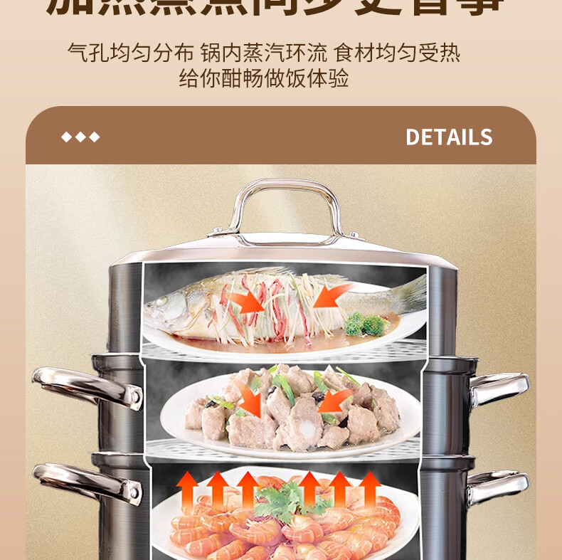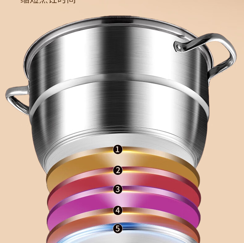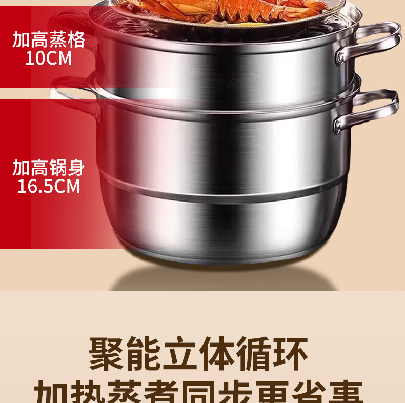 JXIEUM316L不锈钢食品级蒸锅蒸笼家用大容量三四层蒸煮焖燃气电磁炉 【316钢 加高加厚】 4层 32cm