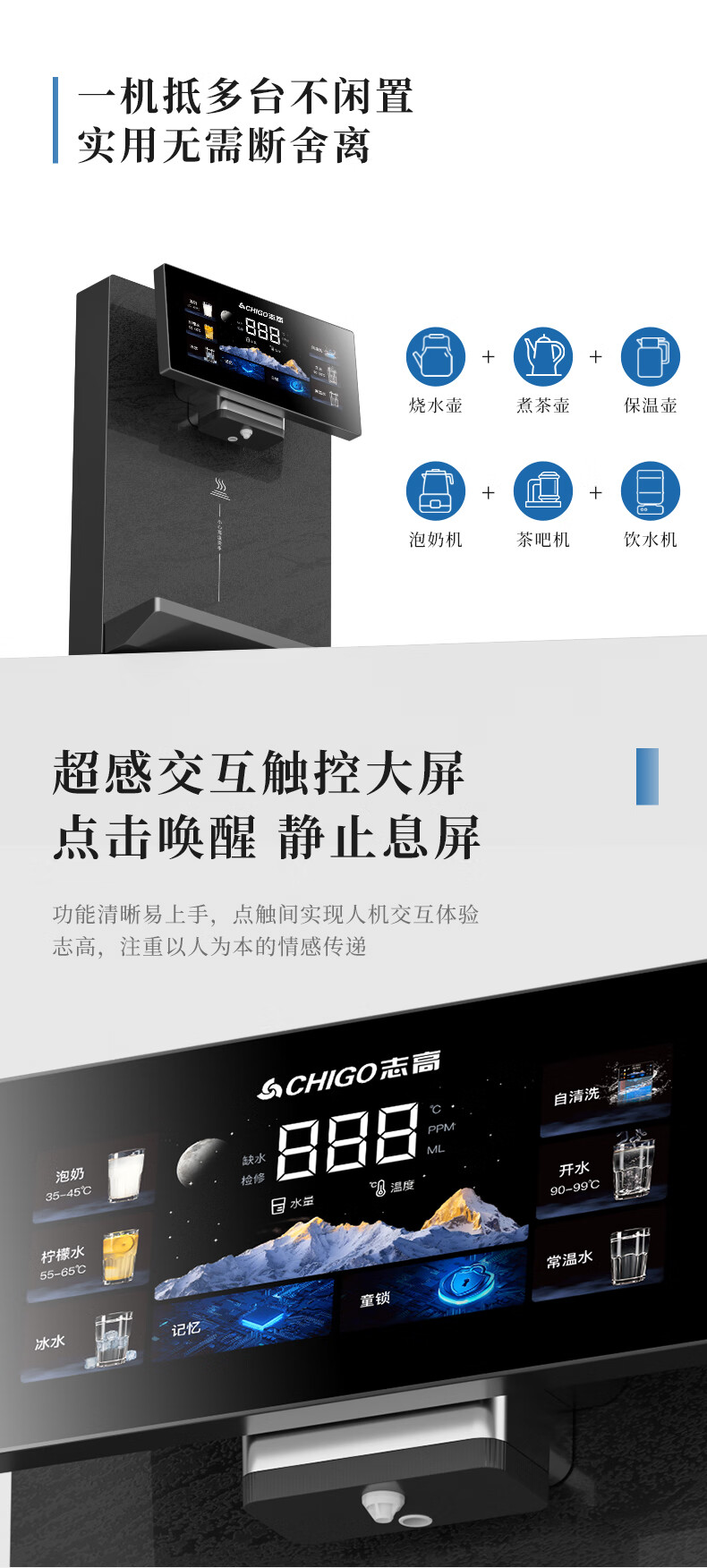志高(CHIGO)【官方直营】壁挂管线机制冷制热一体直饮机可接桶装水带自吸餐边柜饮水机 AC29即热自吸款接桶装水/净水器(视频安装)