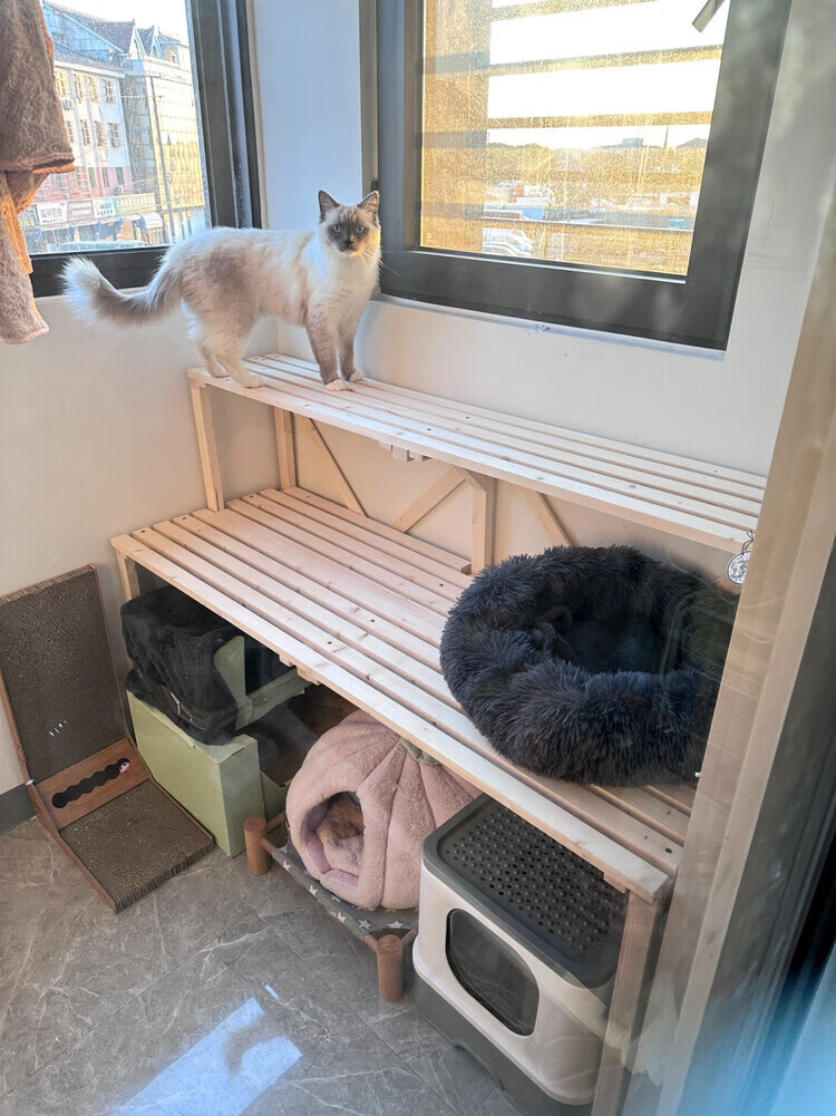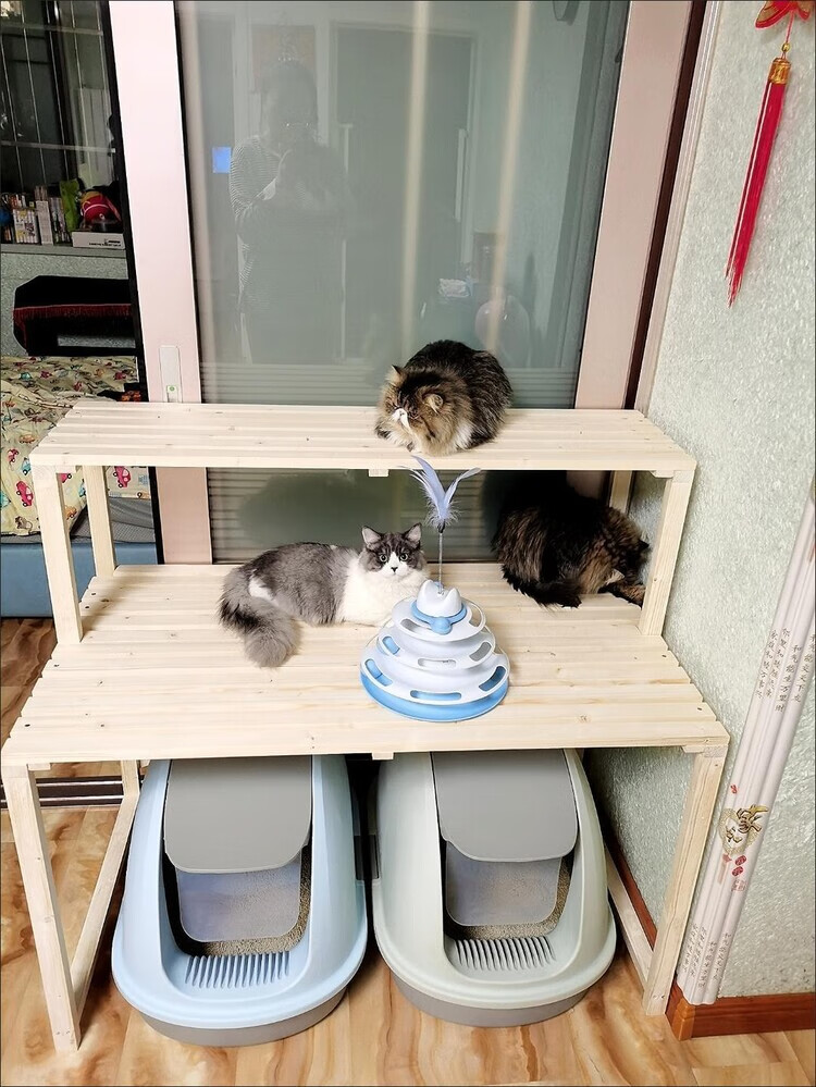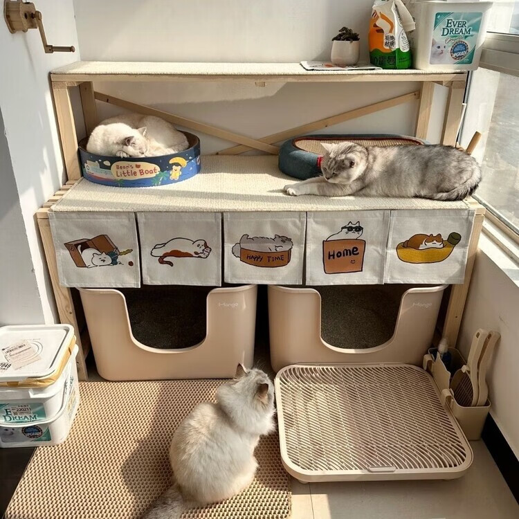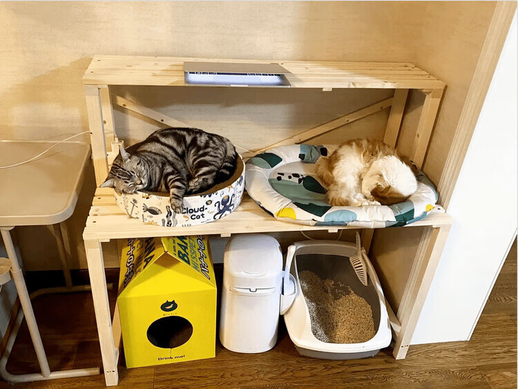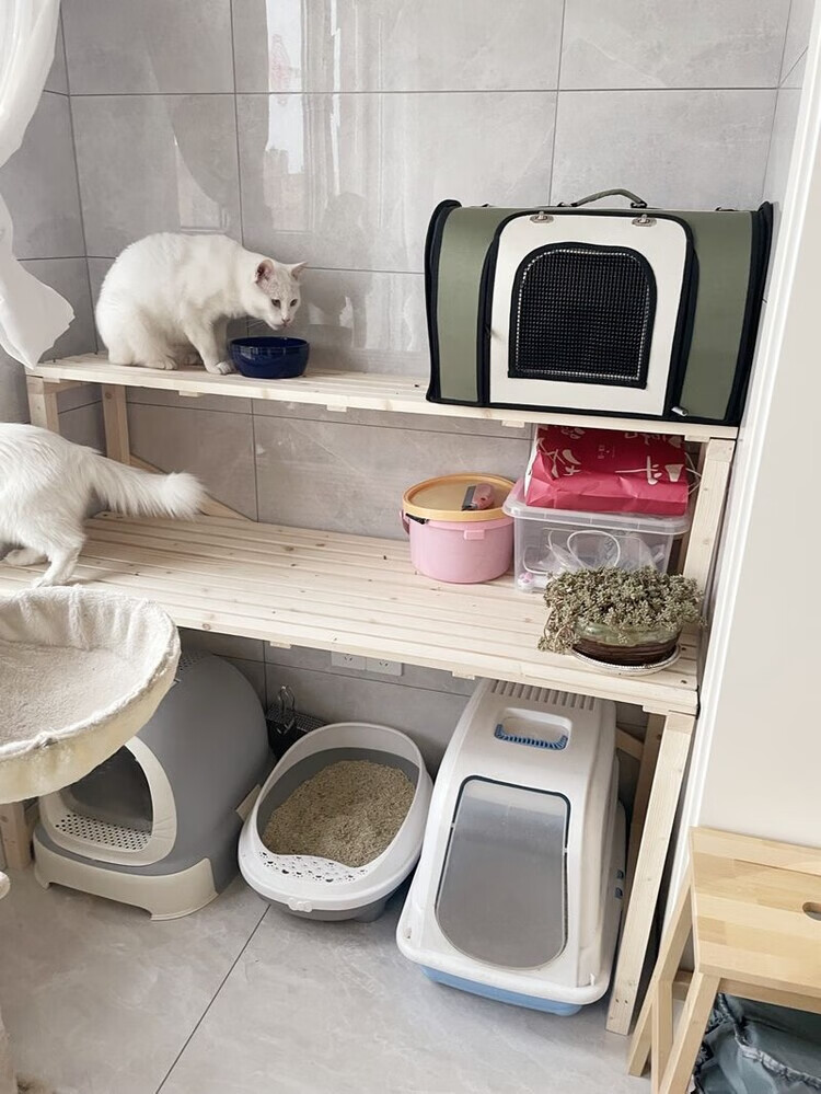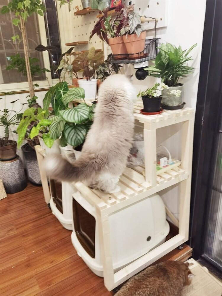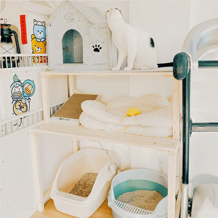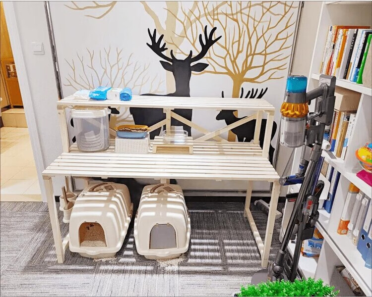 海诗圣堡实木花架猫砂盆置物架多层猫爬架宠物用品收纳阳台阶梯猫窝架猫咪 长40宽40高30单层(偏小)