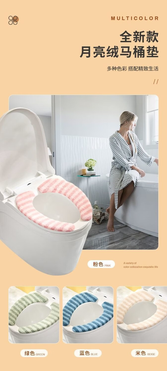 半岛良品马桶坐垫粘贴式冬季加厚家用坐便器垫子针织可水洗新款马桶坐垫 彩虹条纹【针织透气不闷/抗菌隔污】