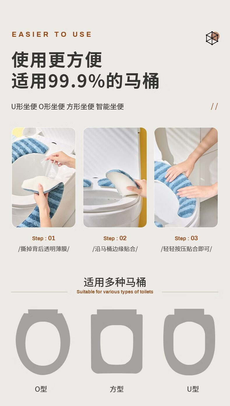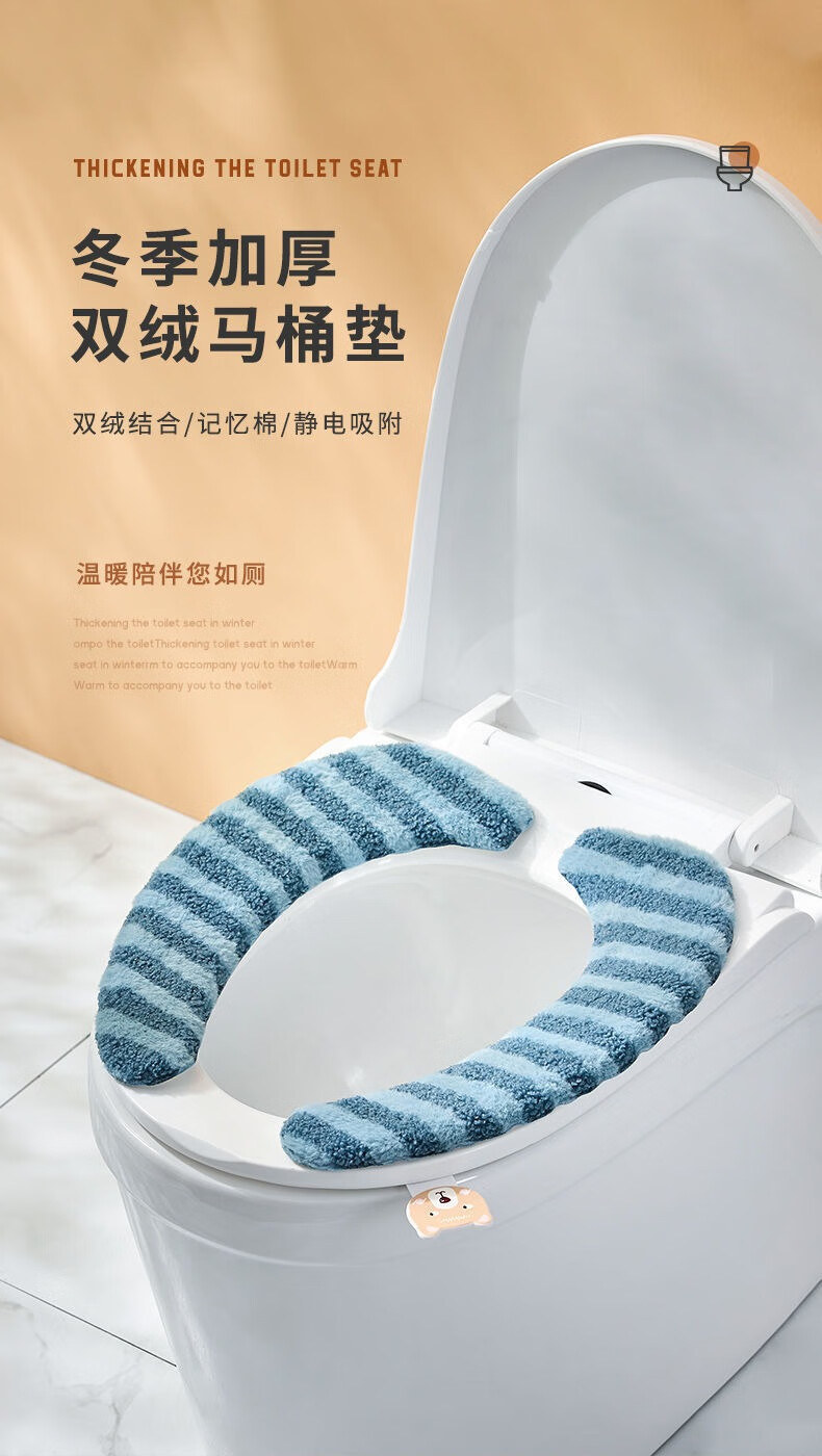 OTHER/其他马桶垫粘贴式家用秋冬季马桶坐垫贴轻奢洗款加厚条纹坐便垫子批发 蓝色