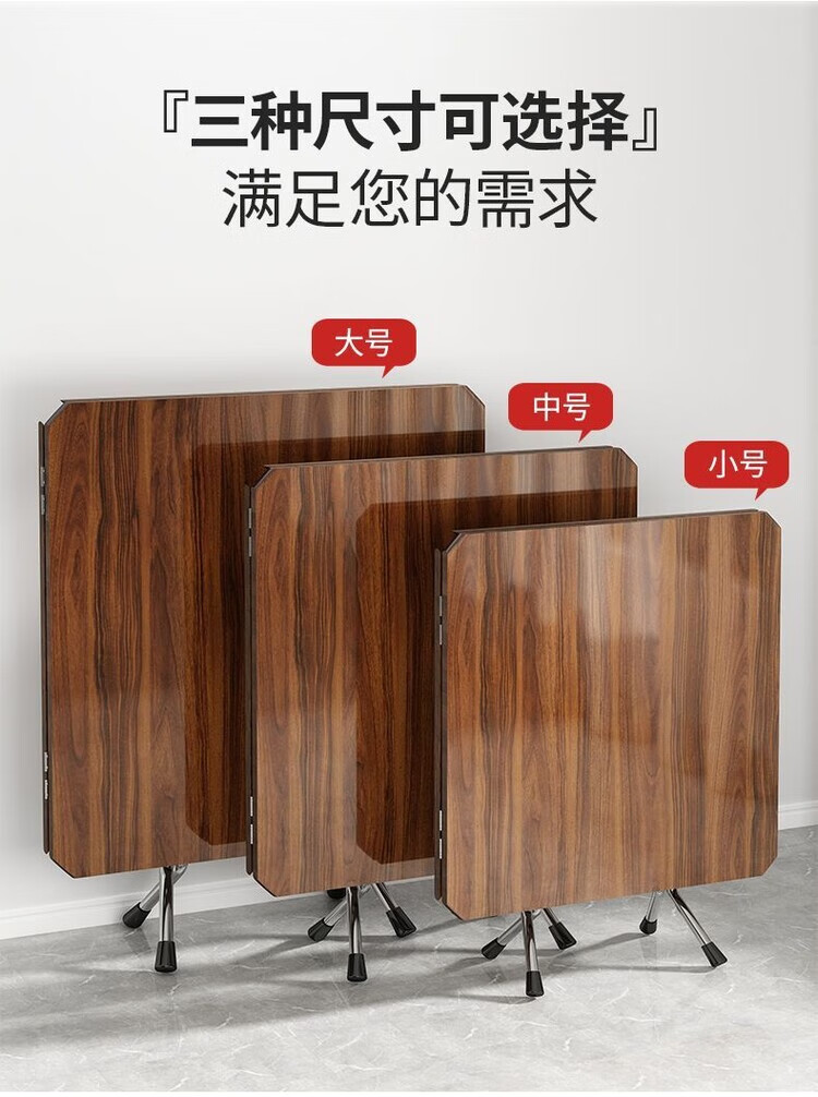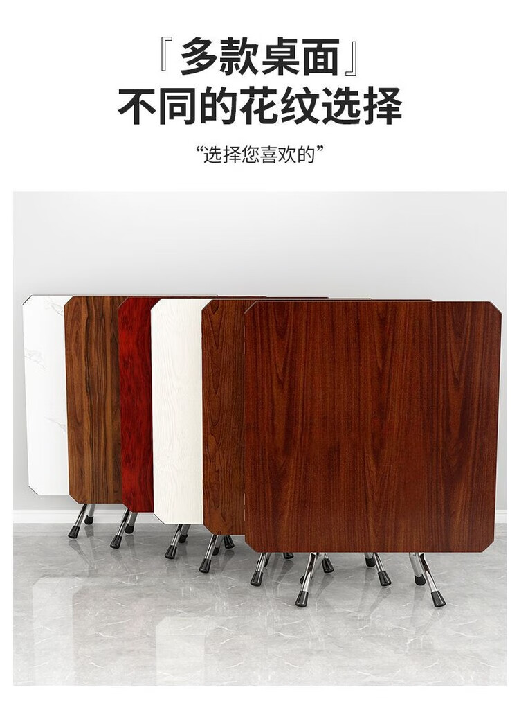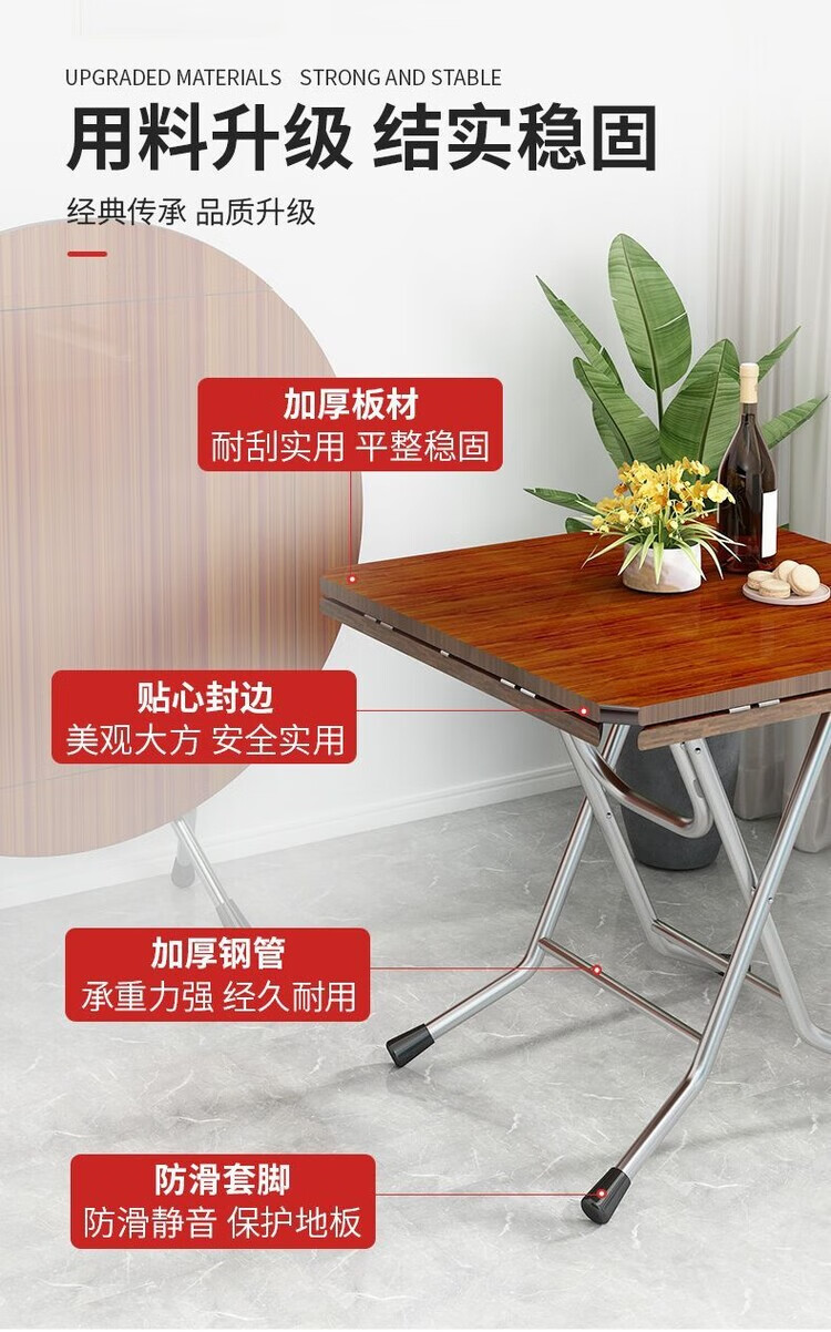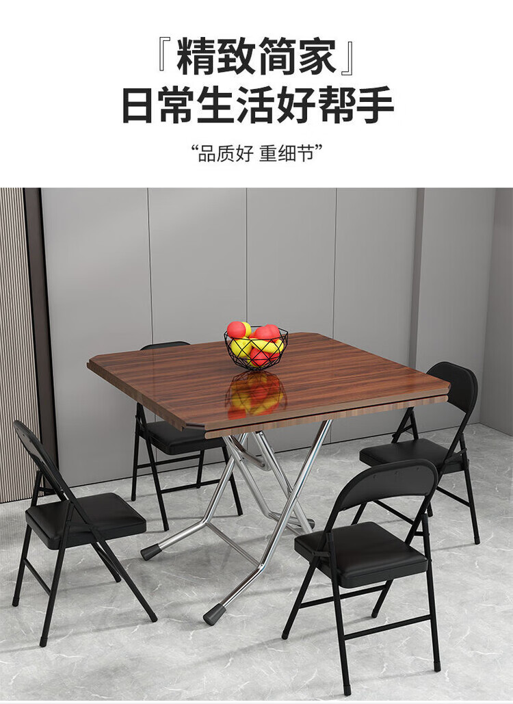 素树家居折叠桌餐桌家用可折叠简易圆桌子4人8小户型可折叠正方形吃饭桌子 棕色(方形81公分圆形108公分) 单桌 加固烤漆桌架