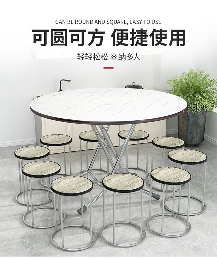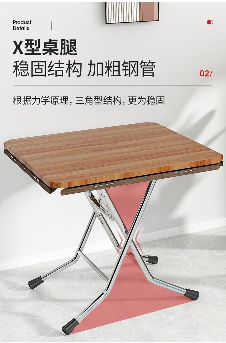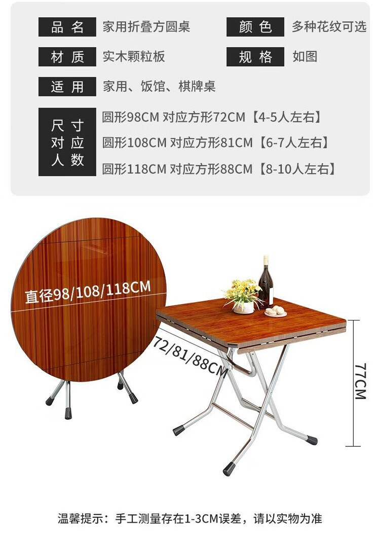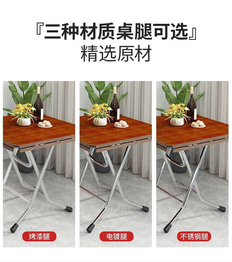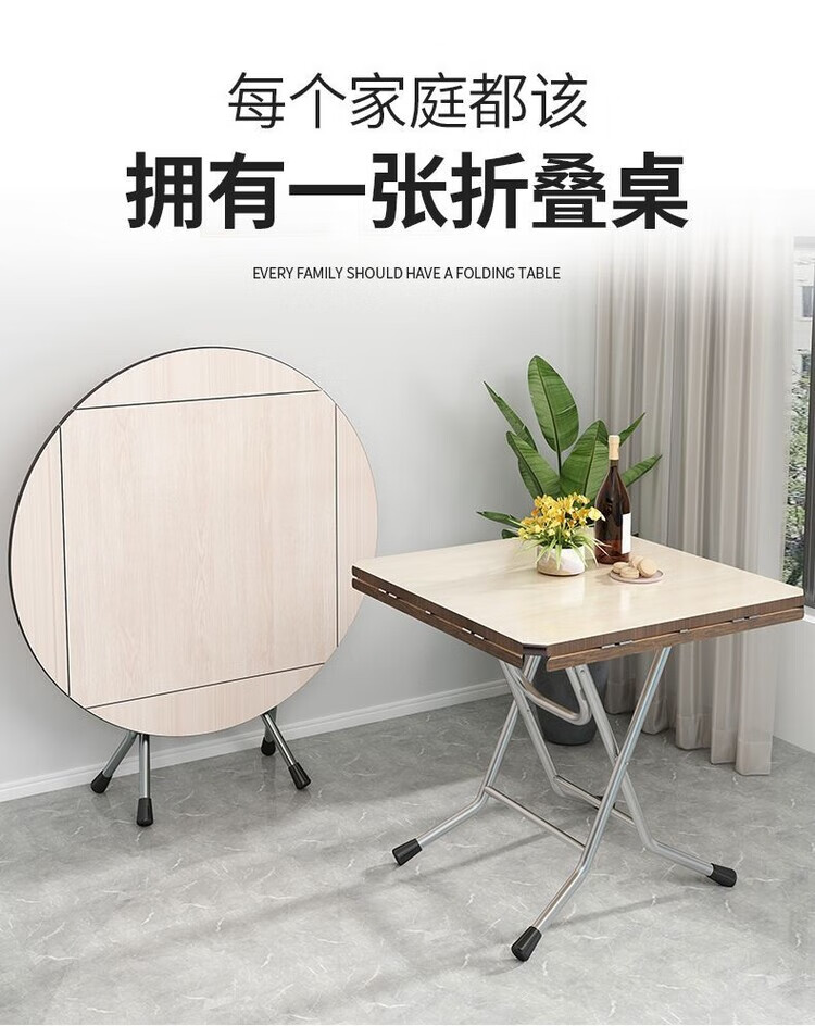 素树家居折叠桌餐桌家用可折叠简易圆桌子4人8小户型可折叠正方形吃饭桌子 棕色(方形81公分圆形108公分) 单桌 加固烤漆桌架