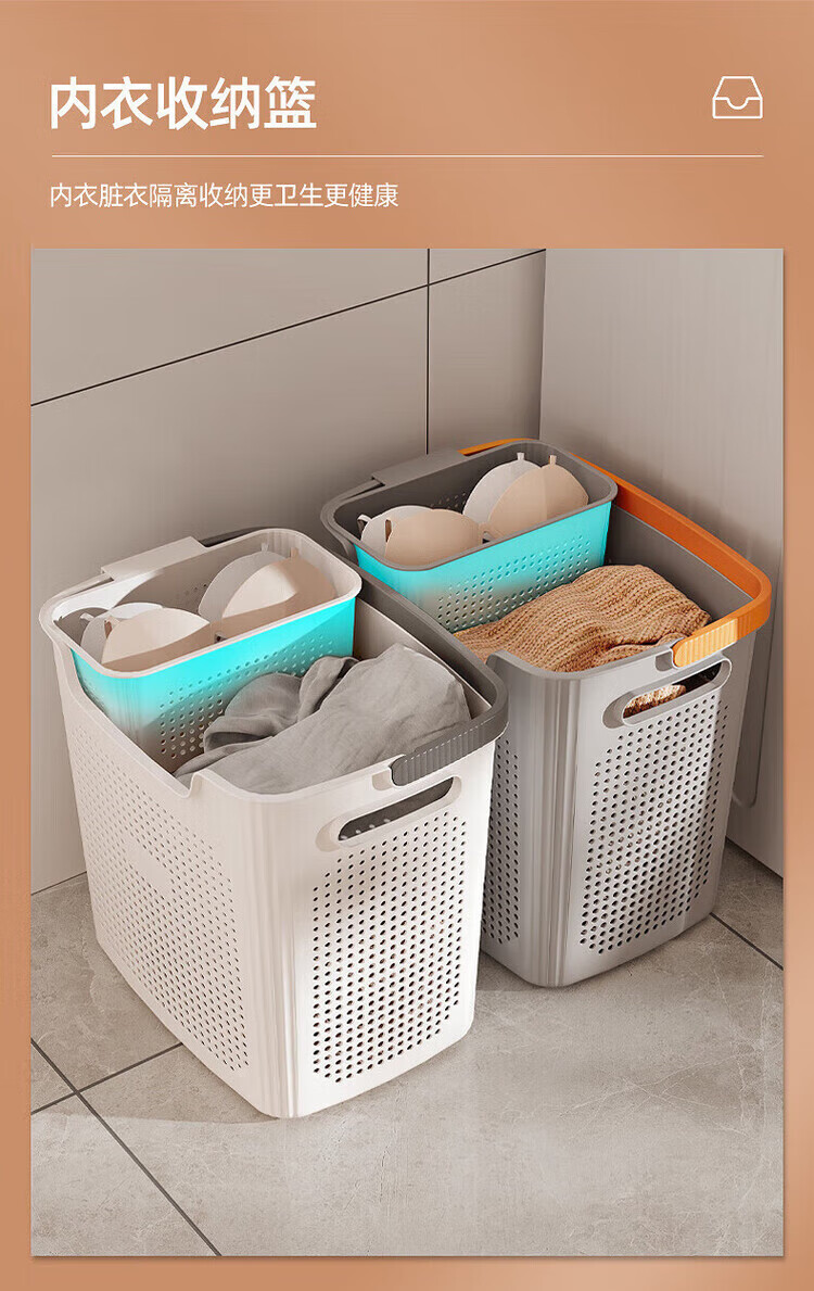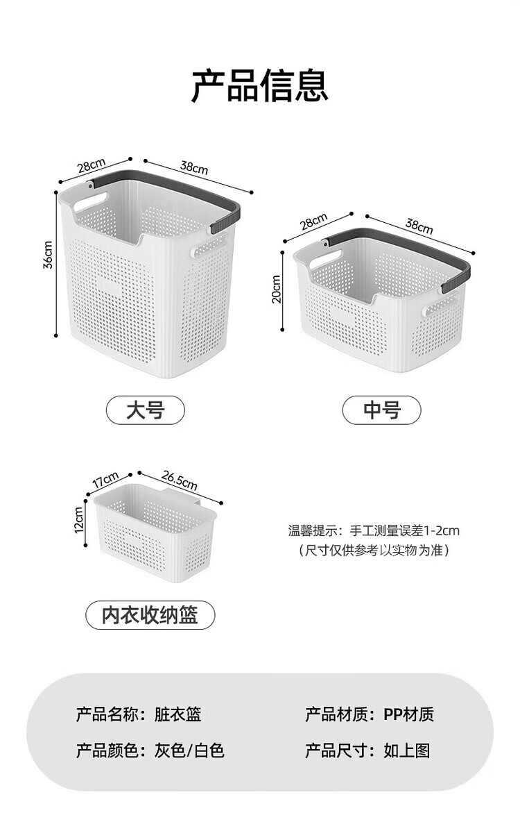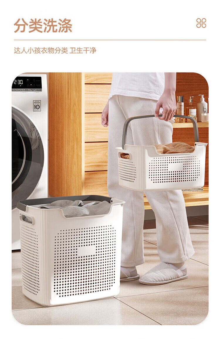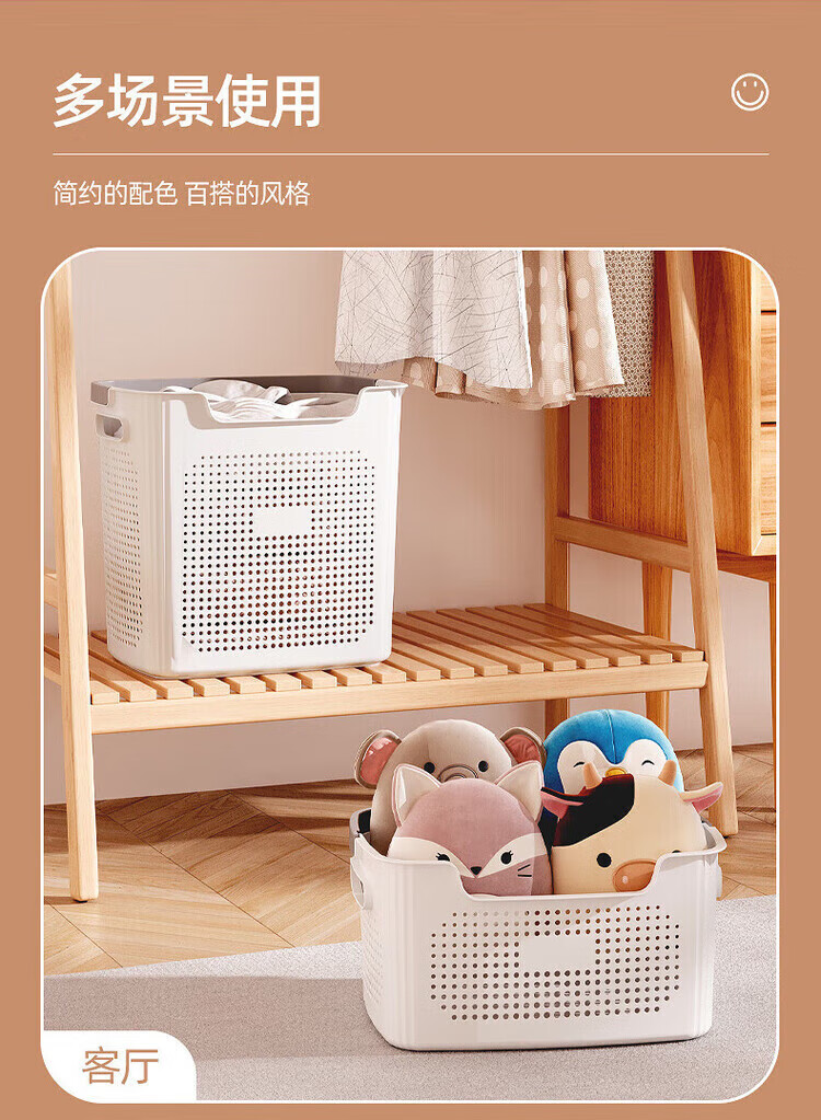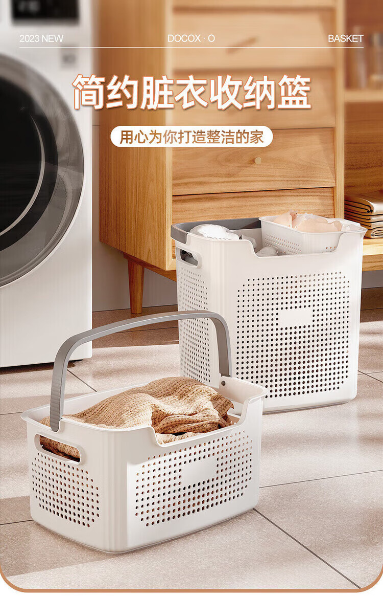 稻草熊(DOCOXO)脏衣篮收纳神器收纳筐衣服提篮置物筐家用好物脏衣筐浴室洗澡篮 奶油白小号+大号