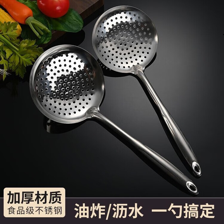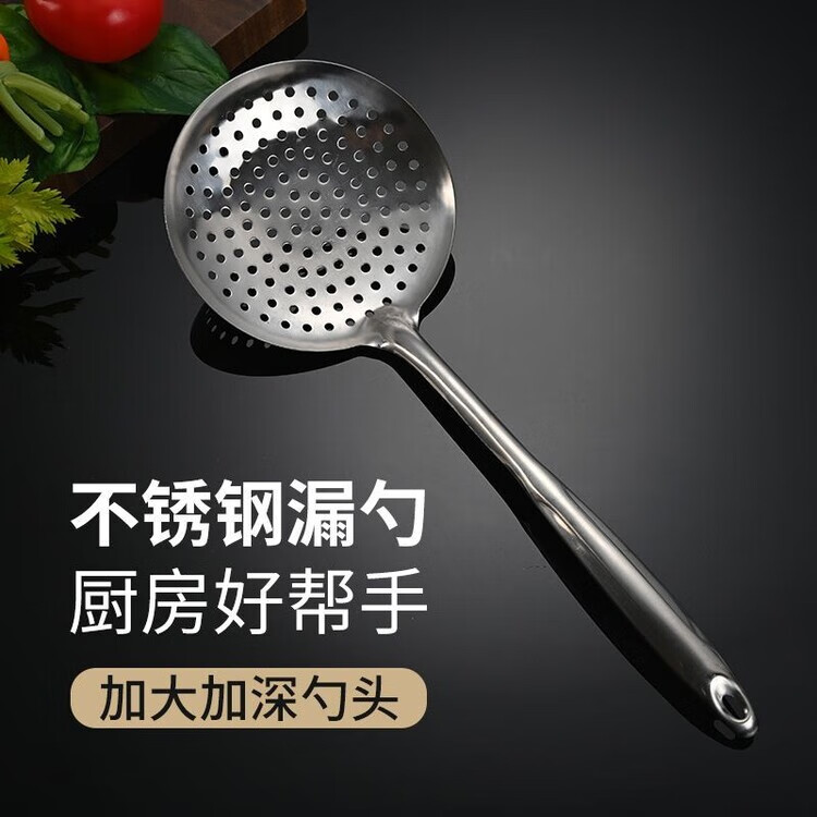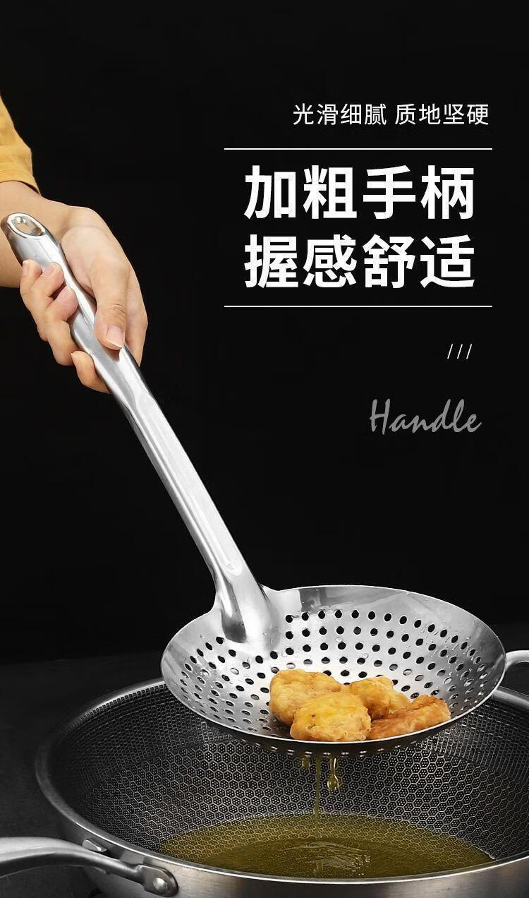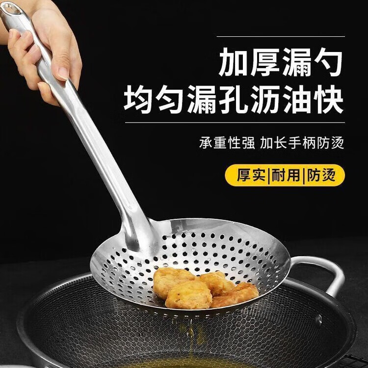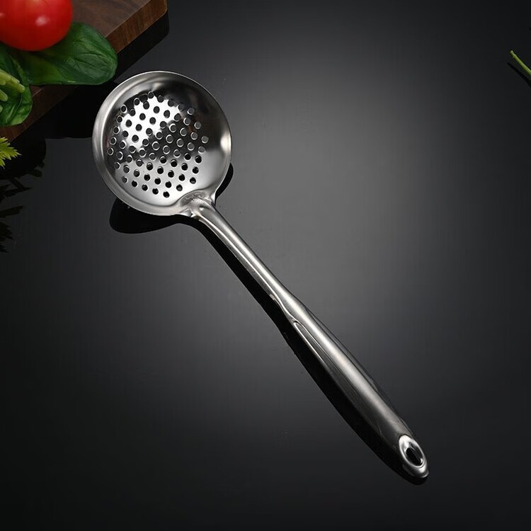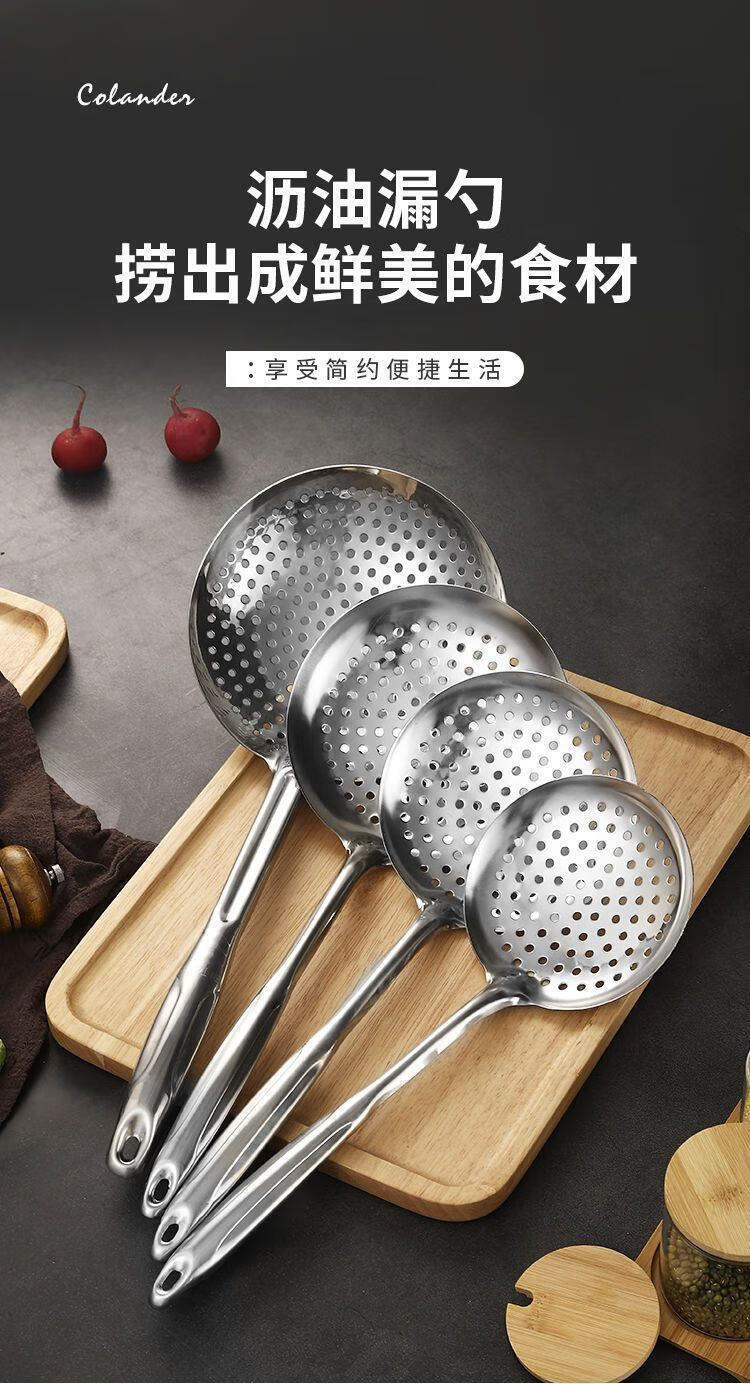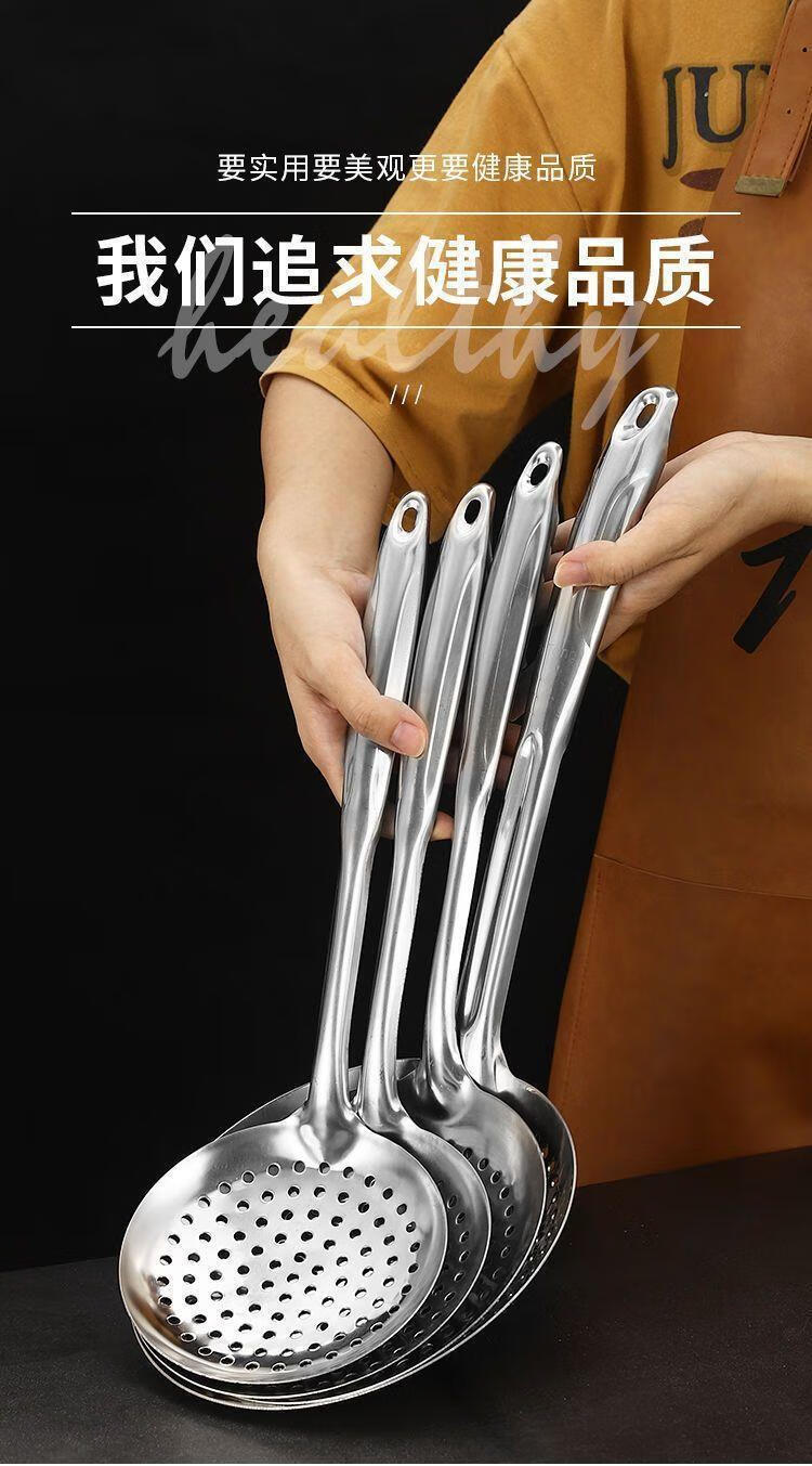 简漾加厚漏勺家用漏勺不锈钢食品级商用水饺一体成型不锈钢油炸 漏勺 圆柄 14 厘米