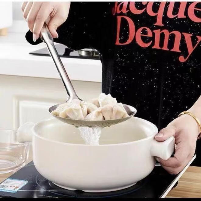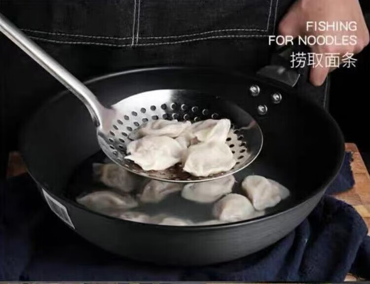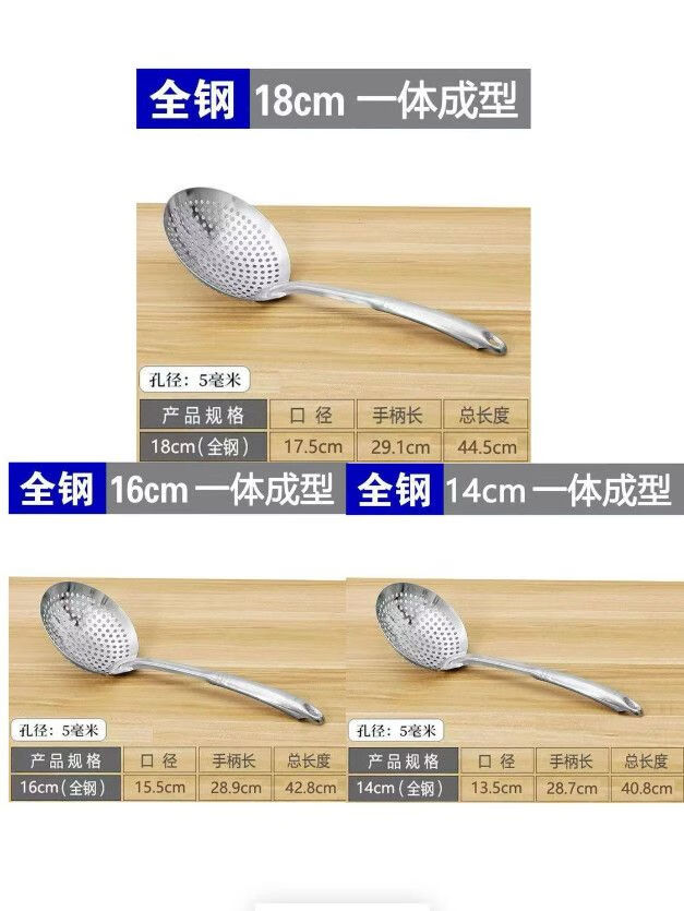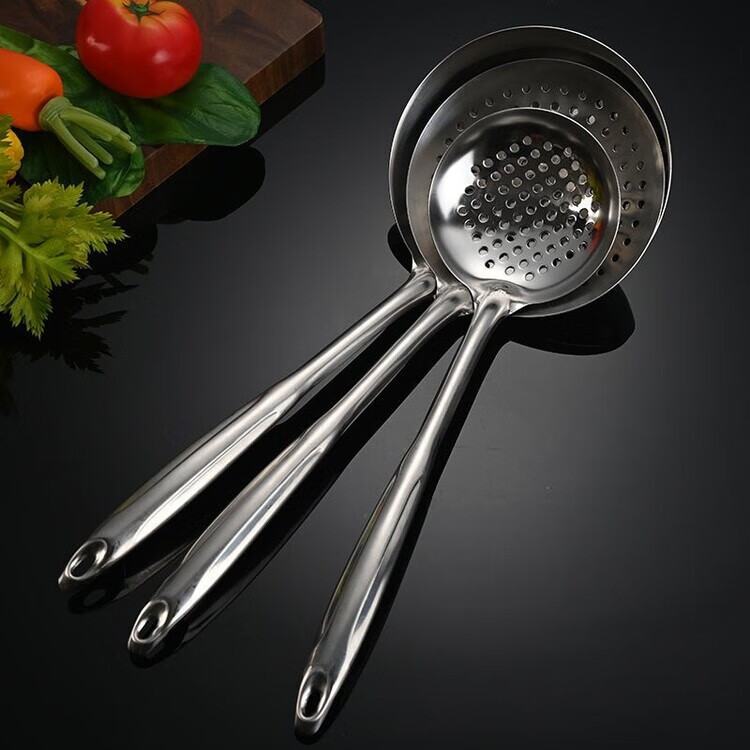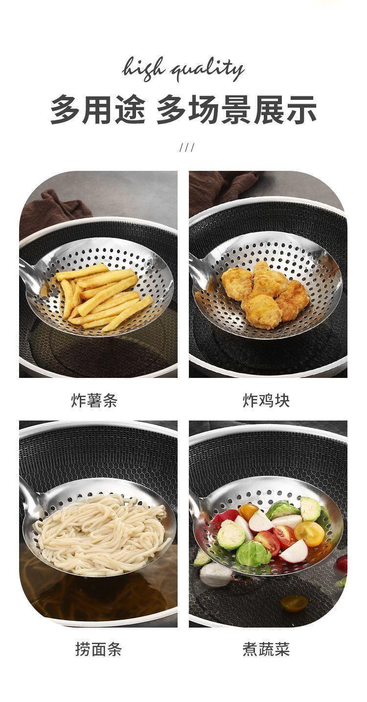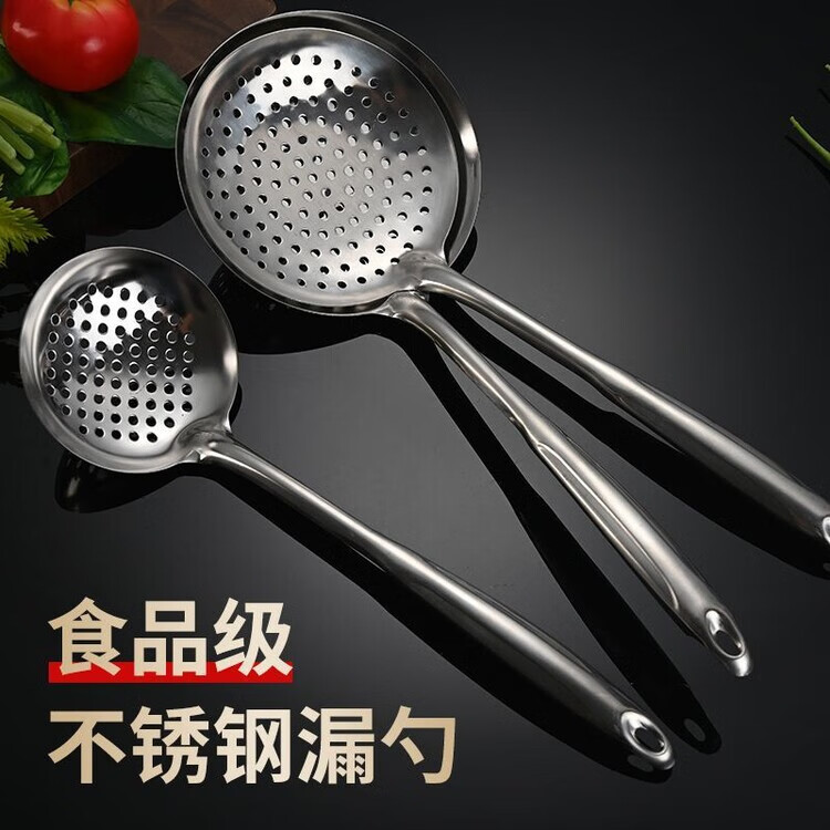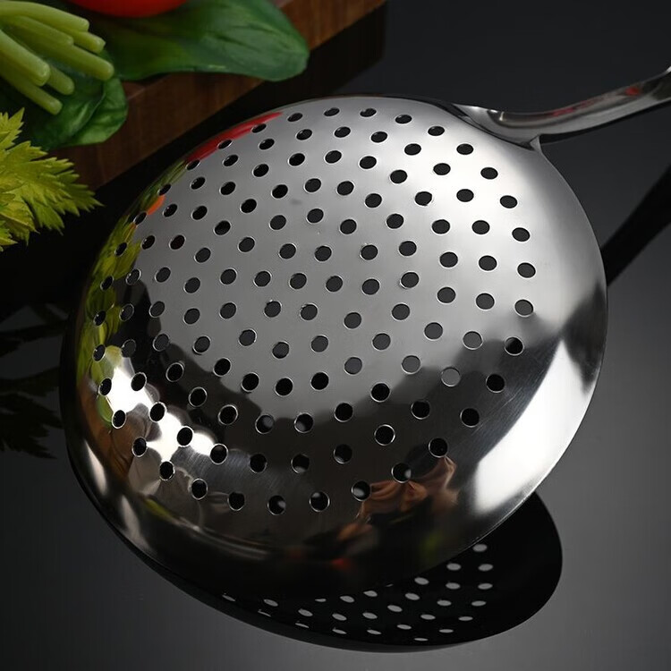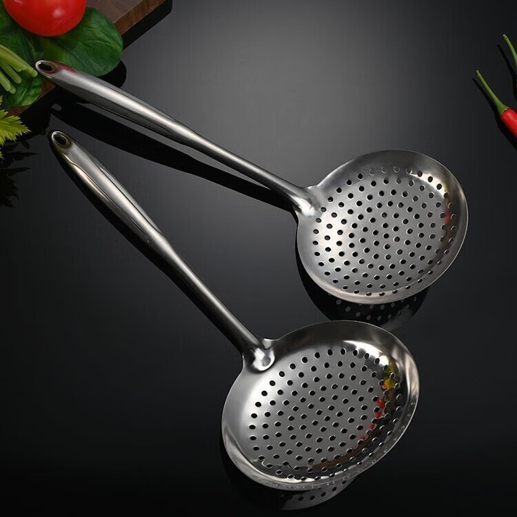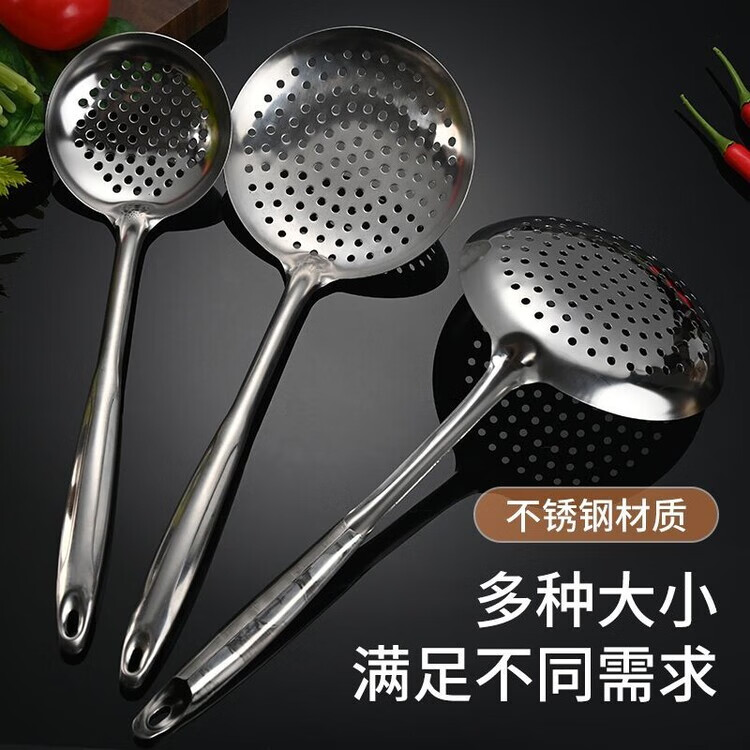 简漾加厚漏勺家用漏勺不锈钢食品级商用水饺一体成型不锈钢油炸 漏勺 圆柄 14 厘米