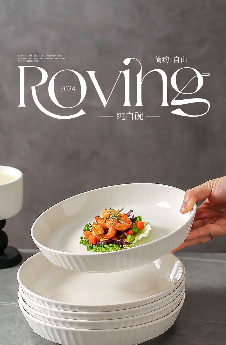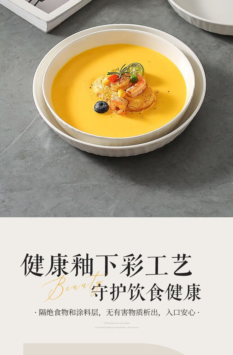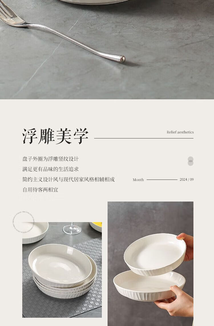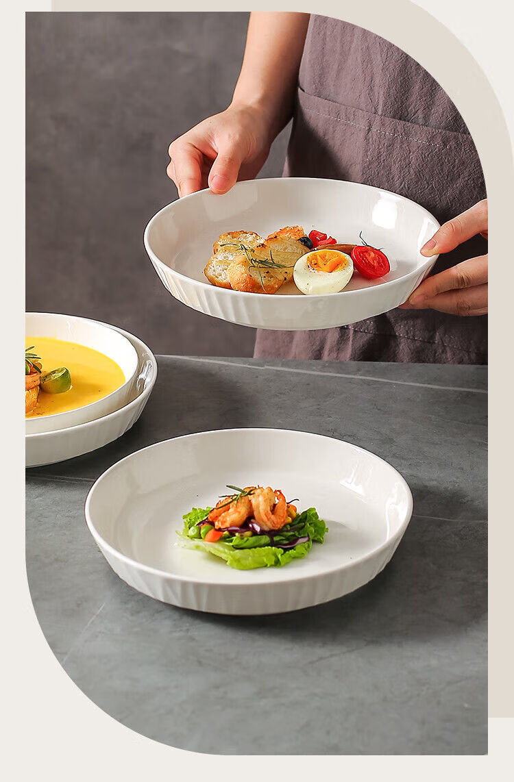 咏夏盘子菜盘家用2025新款陶瓷圆形深盘碟子餐盘简约轻奢7英寸8英寸盘 深盘【2只装】 7英寸